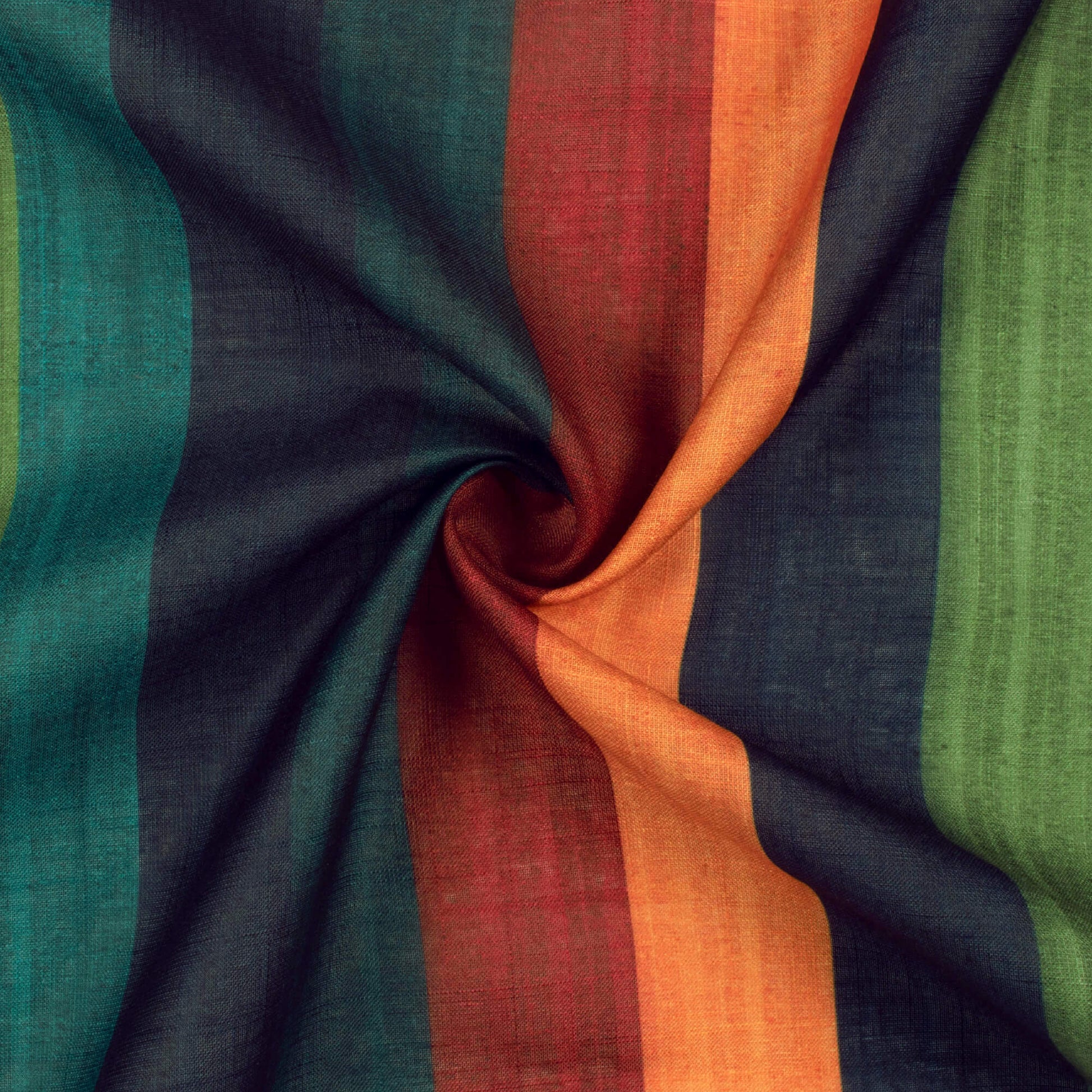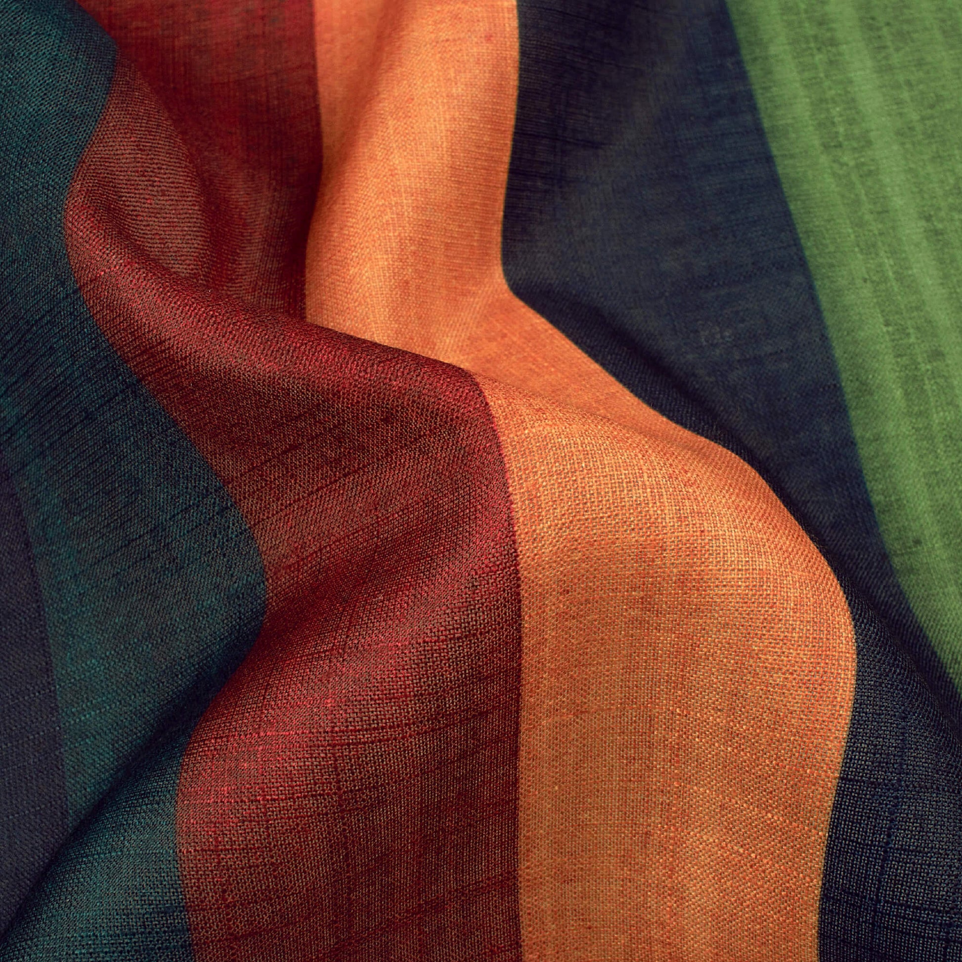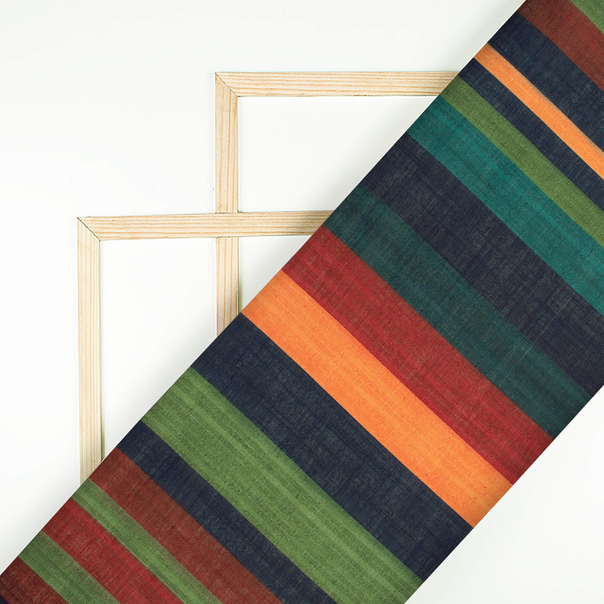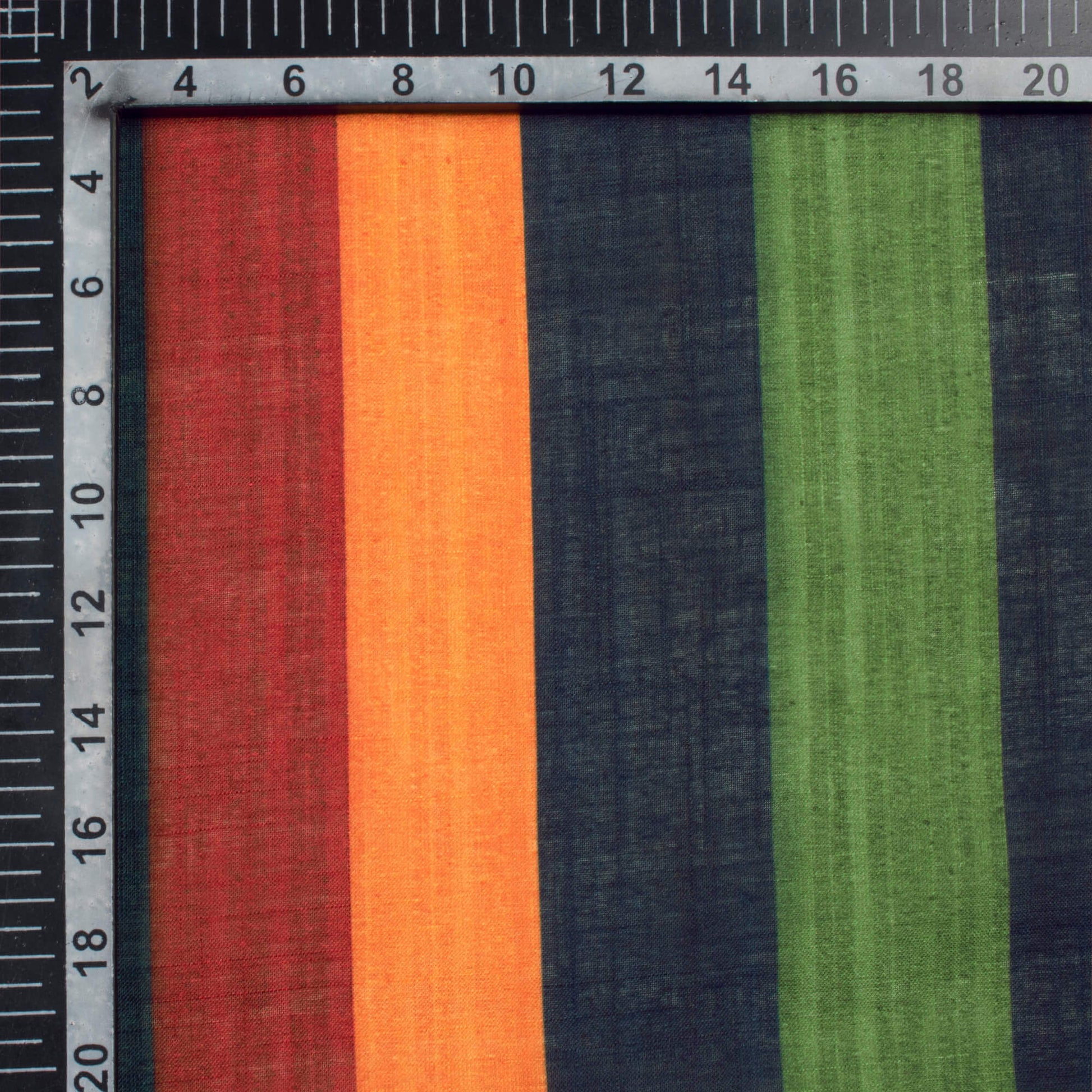 Barn Red And Fern Green Stripes Pattern Digital Print Poly Linen Fabric