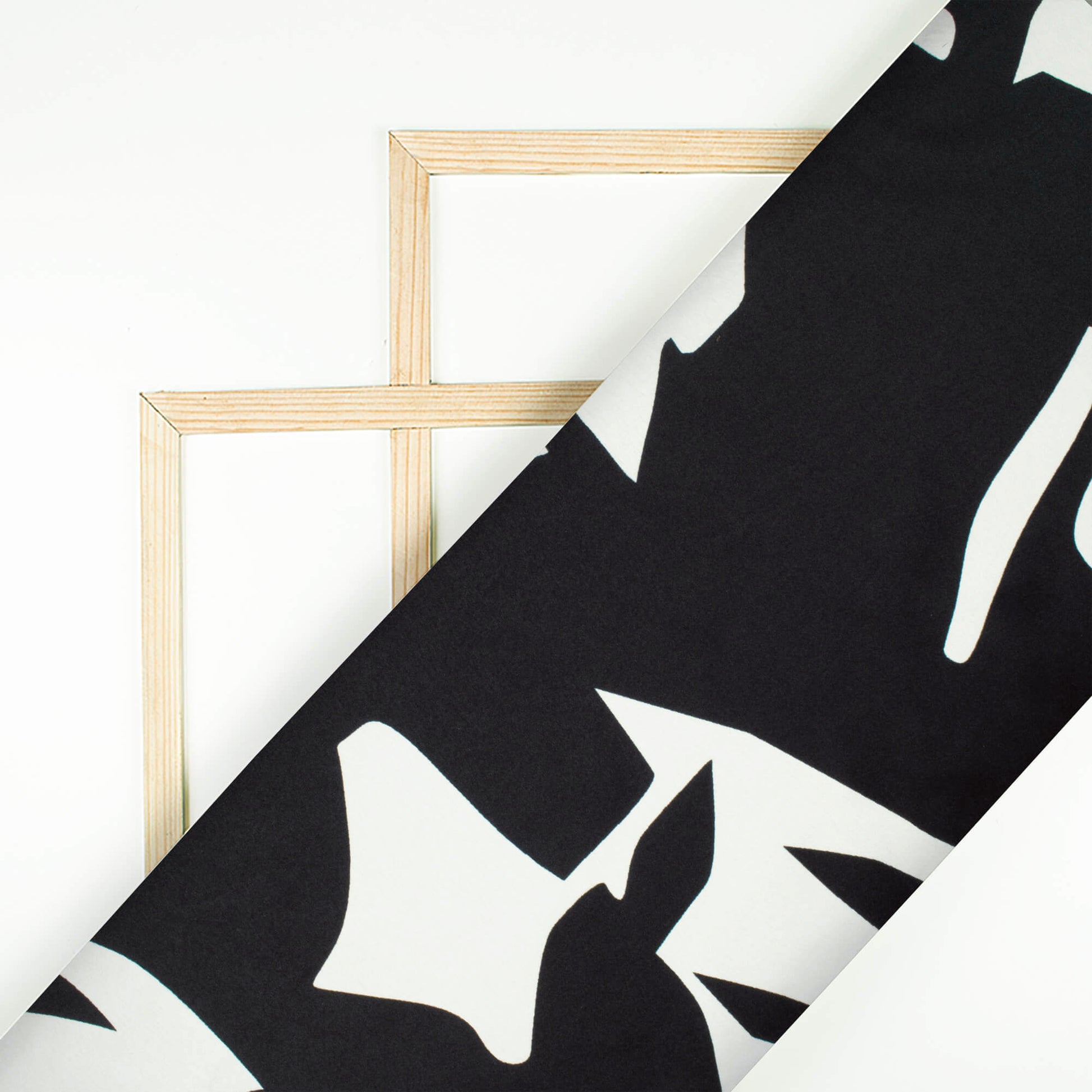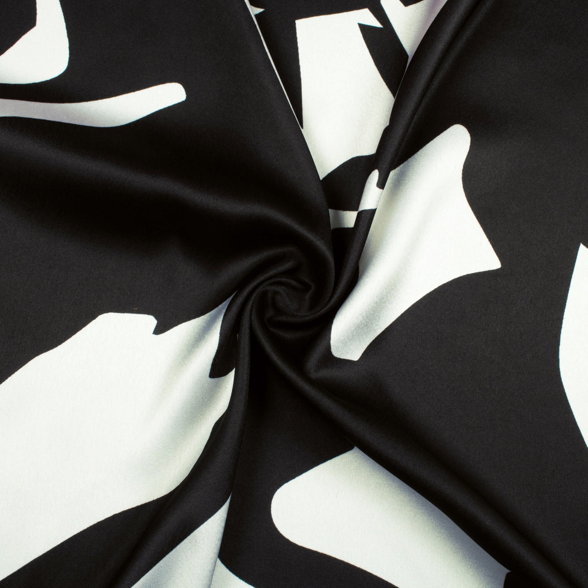 Black And White Abstract Pattern Digital Print Japan Satin Fabric