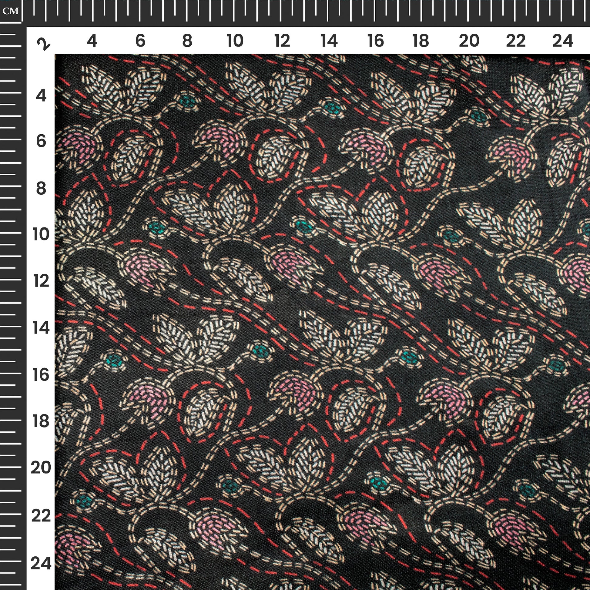 Black Floral Digital Print Viscose Gaji Silk Fabric