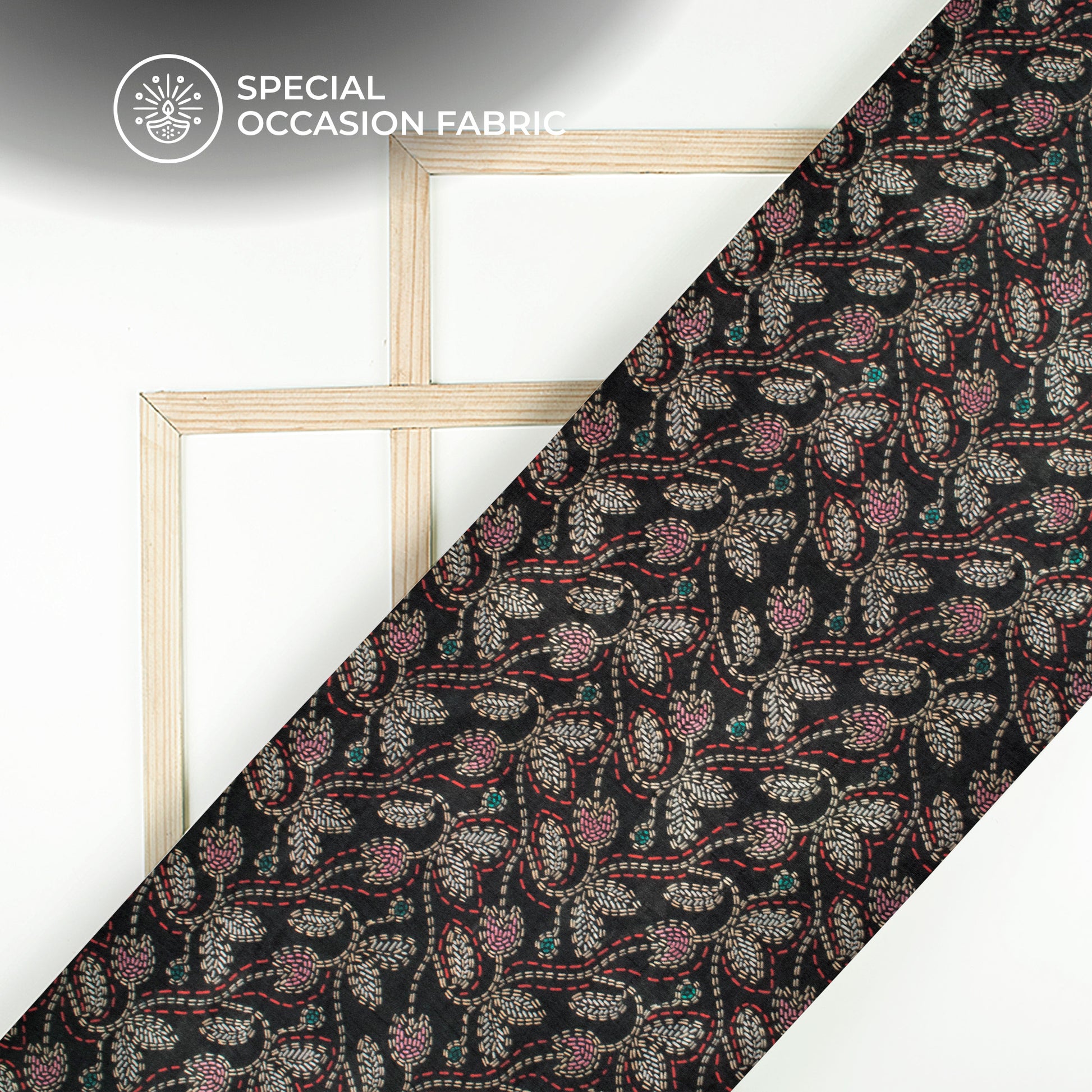Fabcurate's Gaji Silk, crafted from vegetable-based viscose with a satin weave, is a lightweight fabric prized for its rich texture, glossy finish, and luxurious feel. Ideal for elegant drapes including Sarees, Gowns, Suits, Lehengas, Skirts, and Blazers. It showcases beautiful designs tailored for a luxurious appearance.