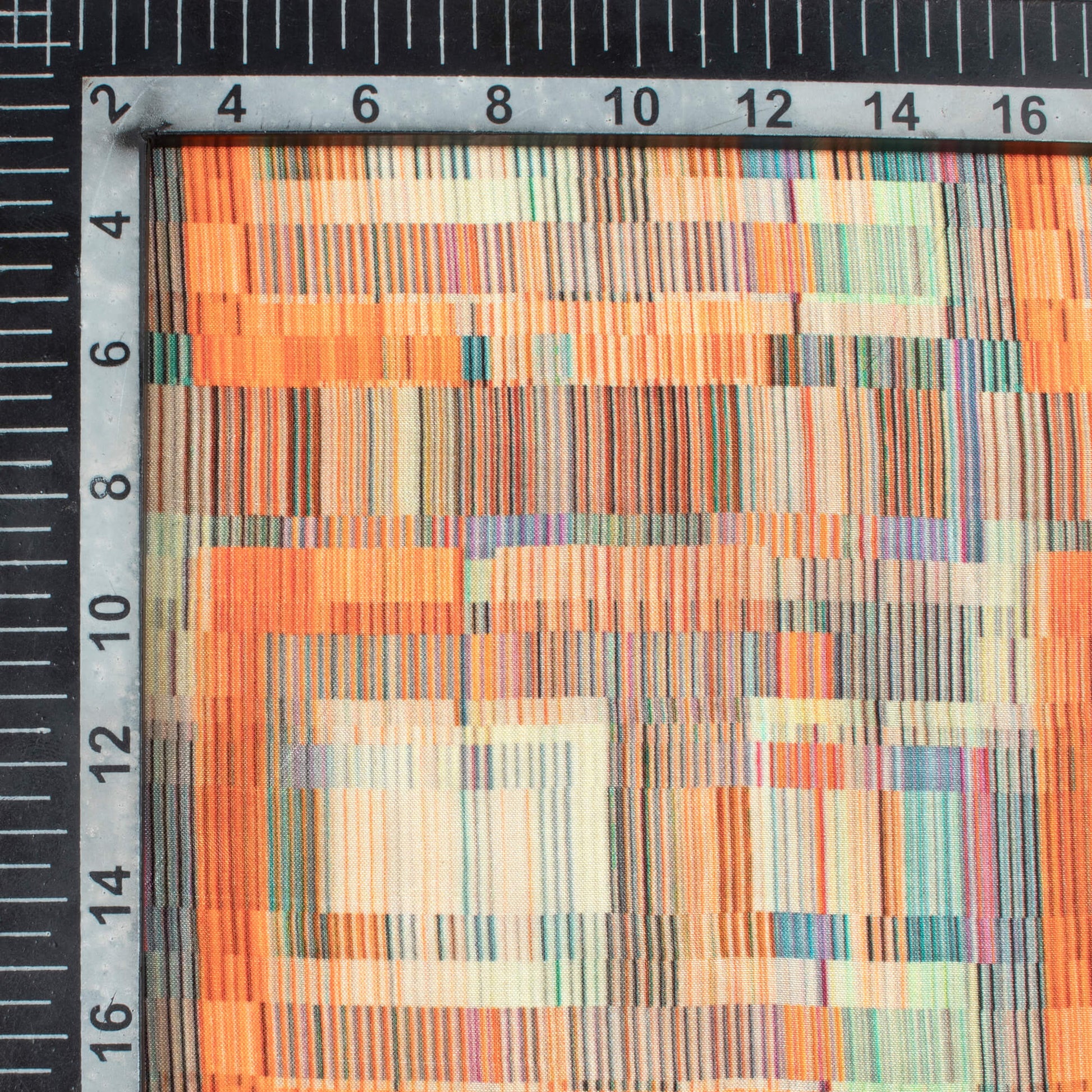 Blaze Orange And Tea Green Geometric Pattern Digital Print Viscose Uppada Silk Fabric