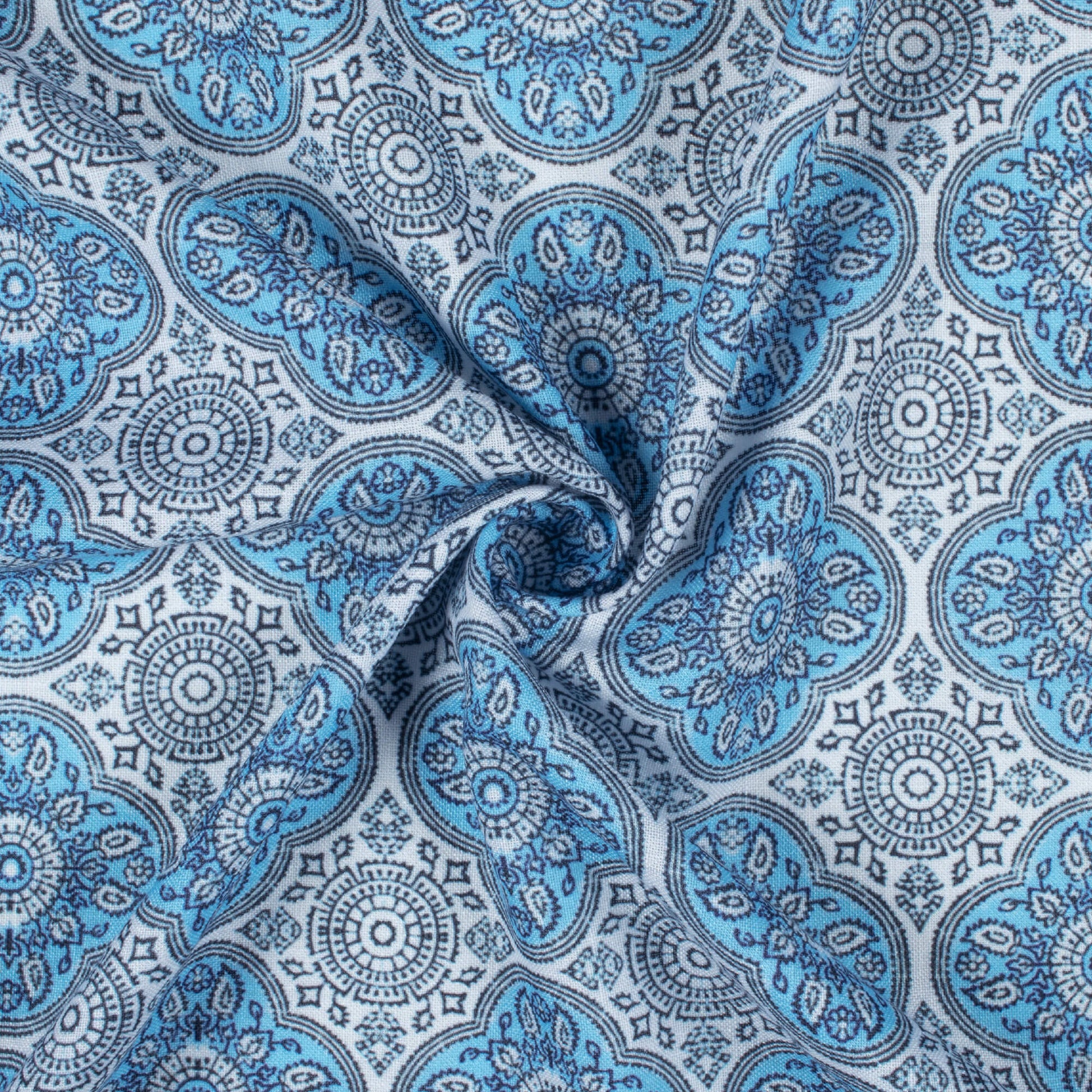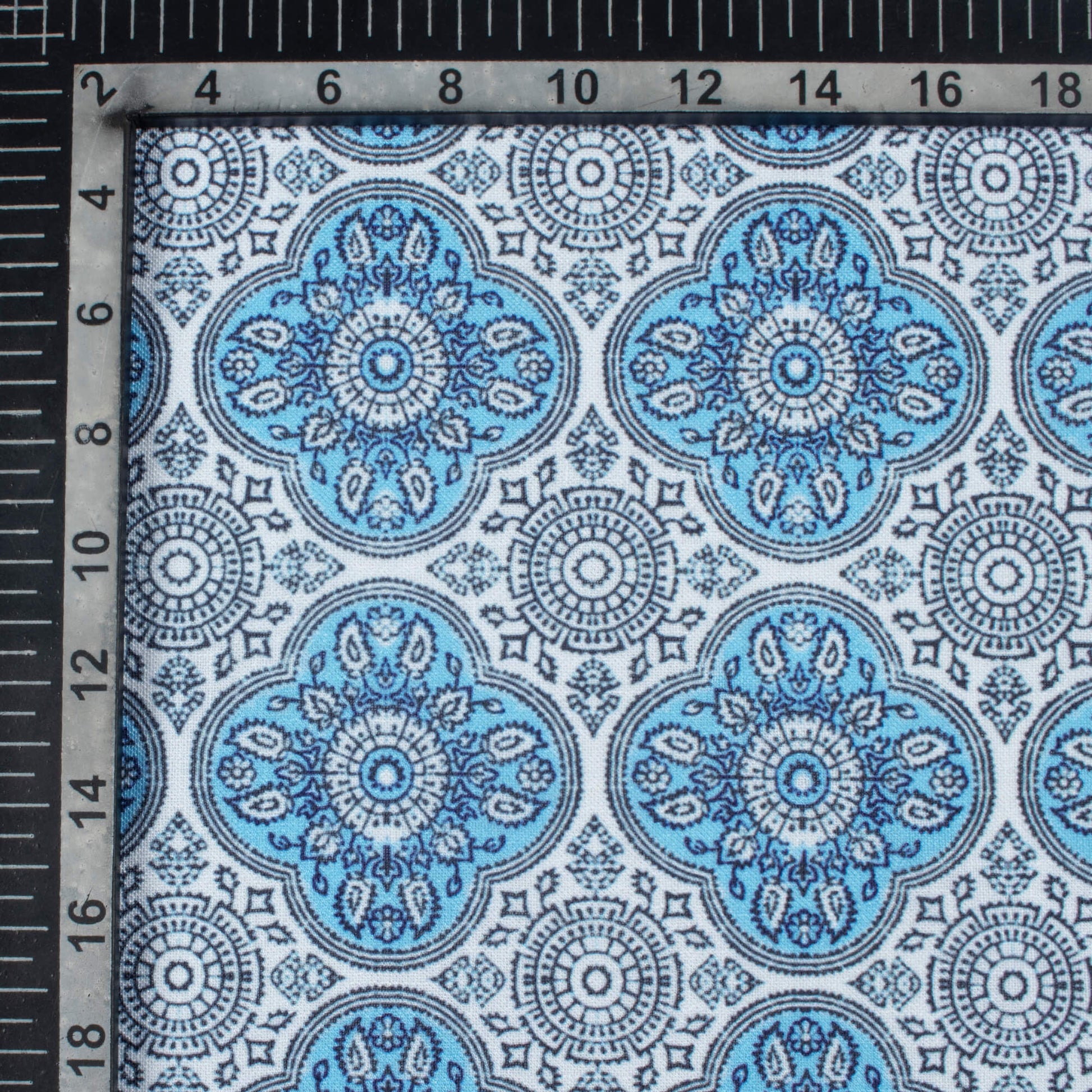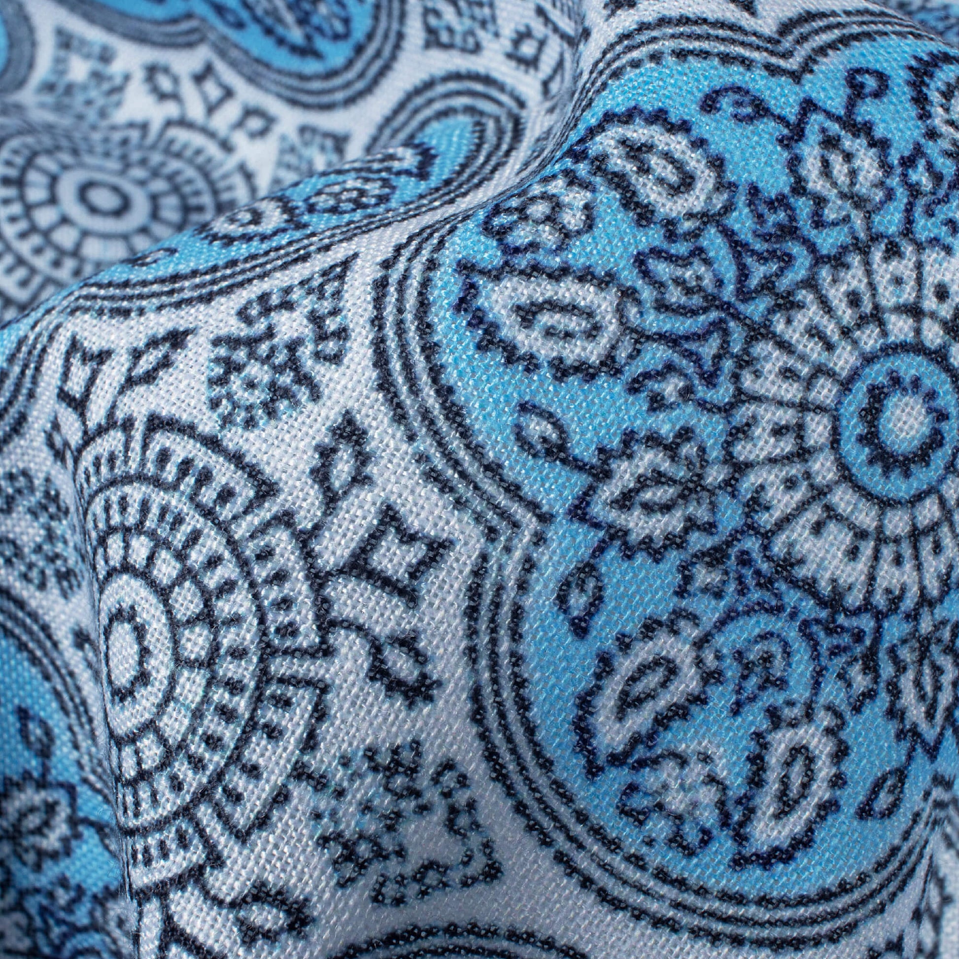 Carolina Blue Traditional Pattern Digital Print Linen Textured Fabric (Width 56 Inches)
