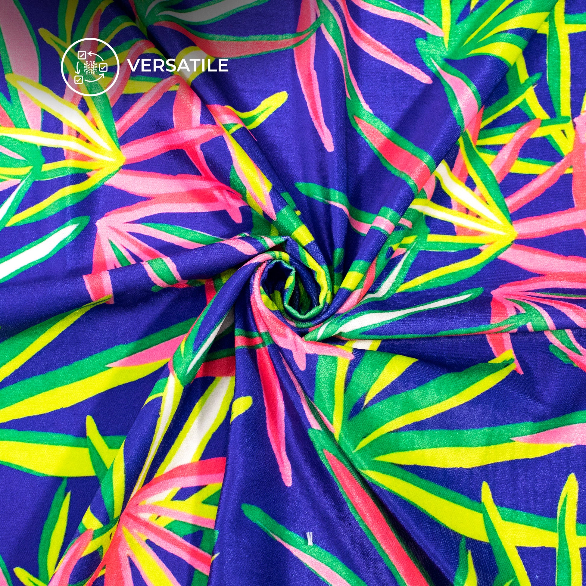 Colorful Tropical Leaves Digital Print Premium Velvet Fabric