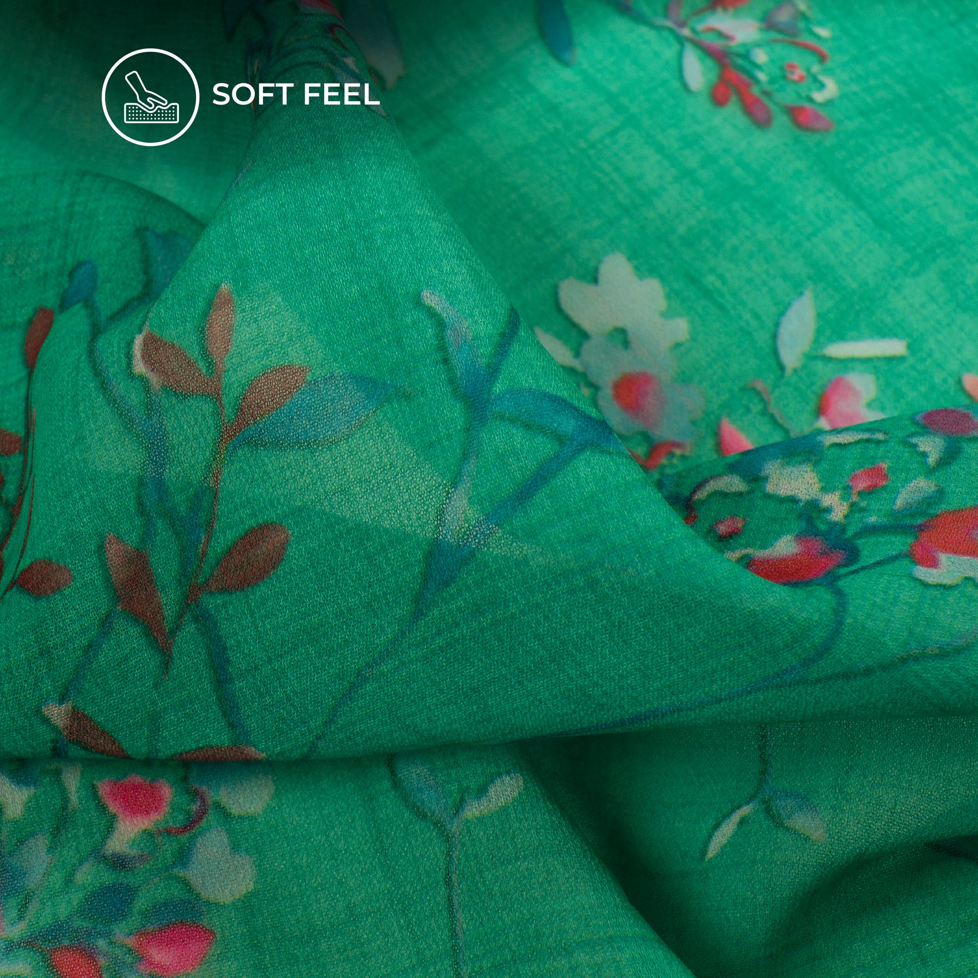 Cool Green Floral Digital Print Georgette Fabric