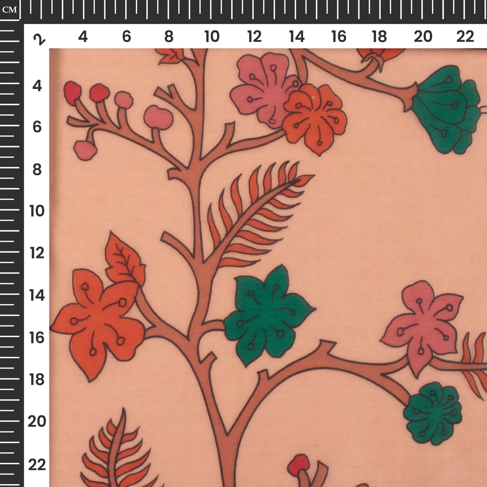 Coral Peach And Dark Orange Floral Printed Organza Satin Fabric