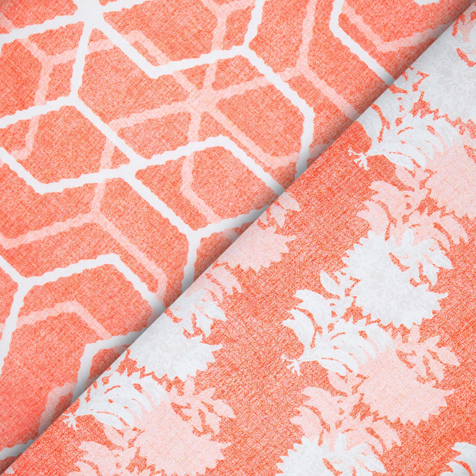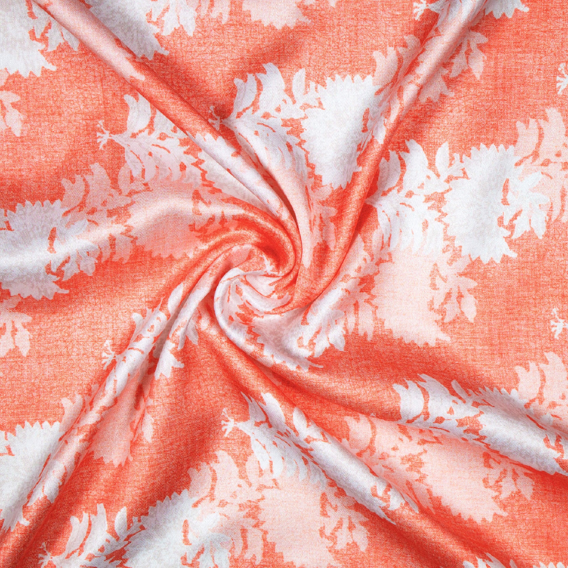 Coral Peach And White Floral Pattern Digital Print Japan Satin Fabric