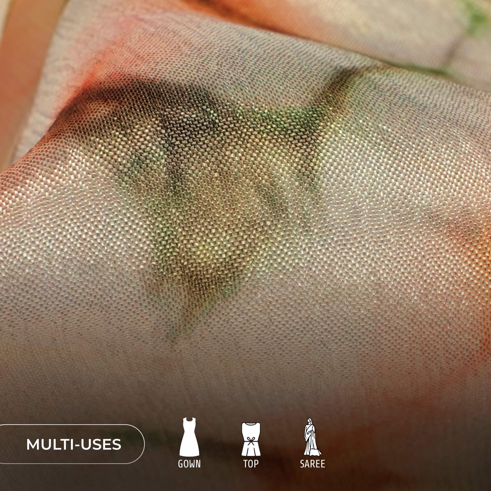 Crayola Peach Shiiborii Digital Print Poly Chinnon Chiffon Fabric