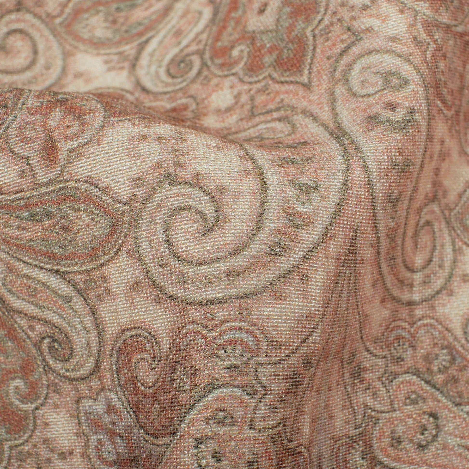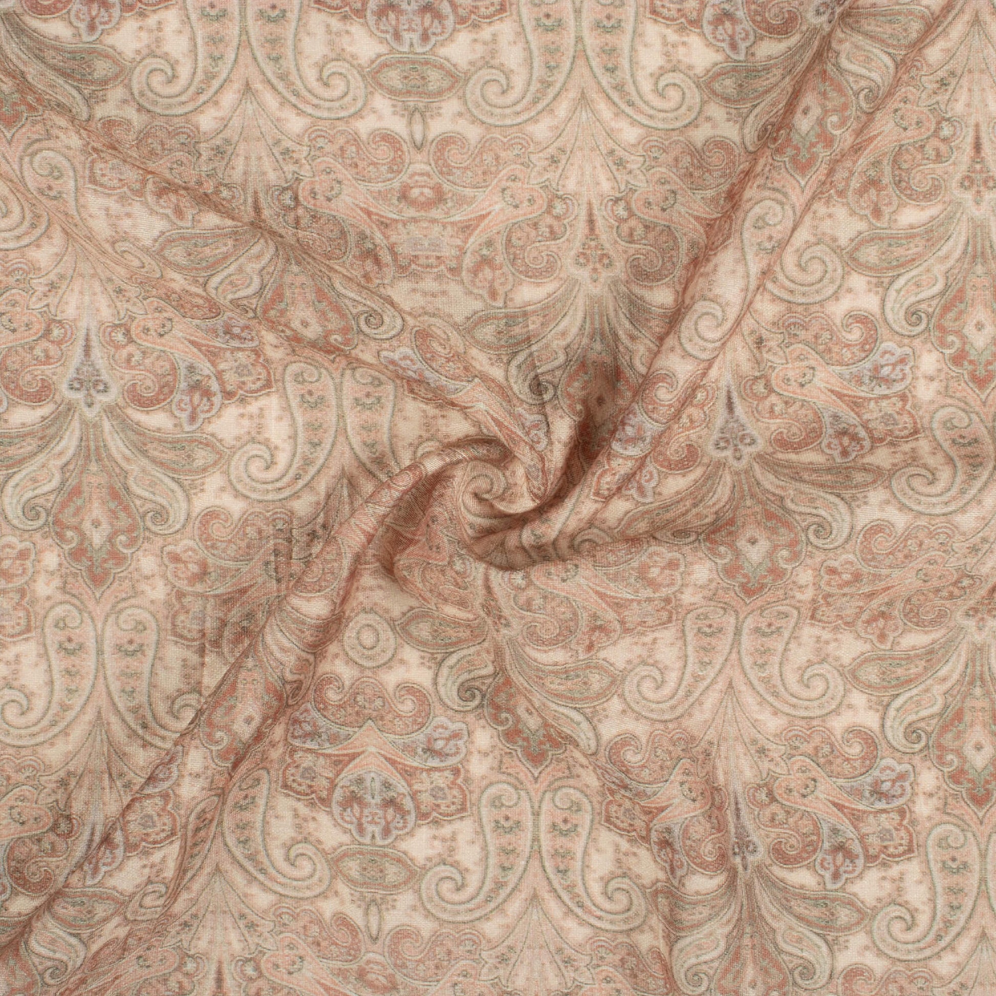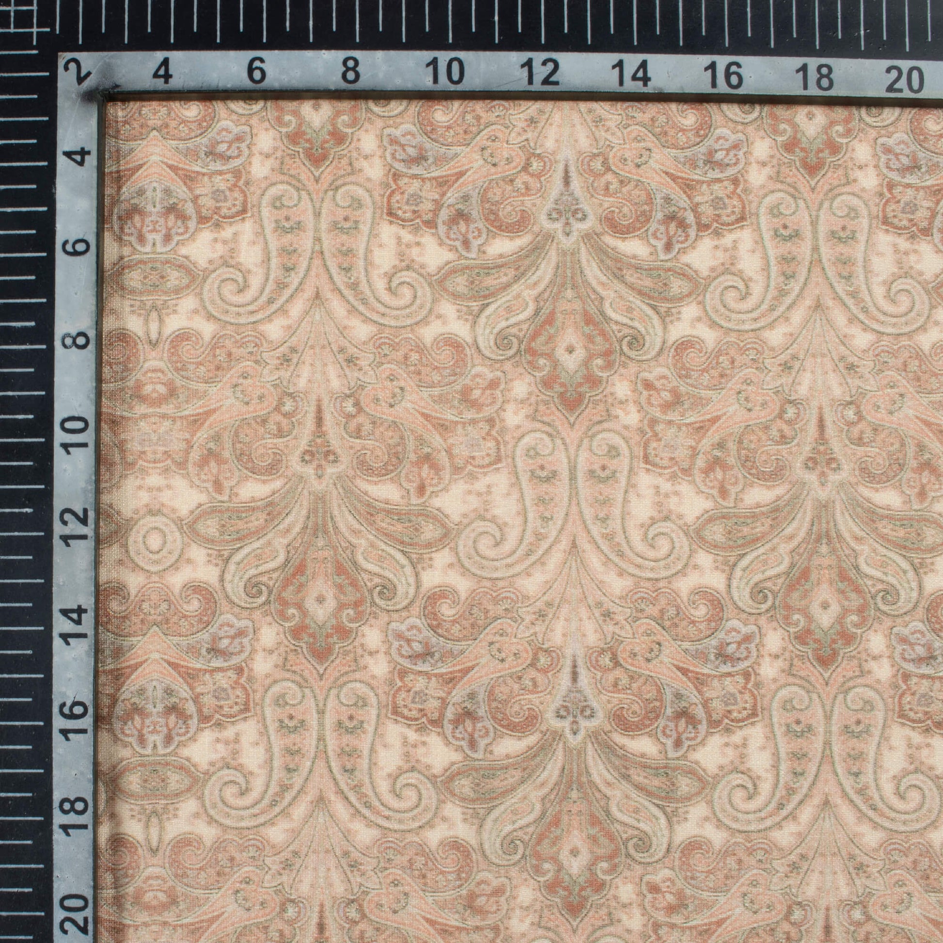 Cream And Green Paisley Pattern Digital Print Viscose Chanderi Fabric