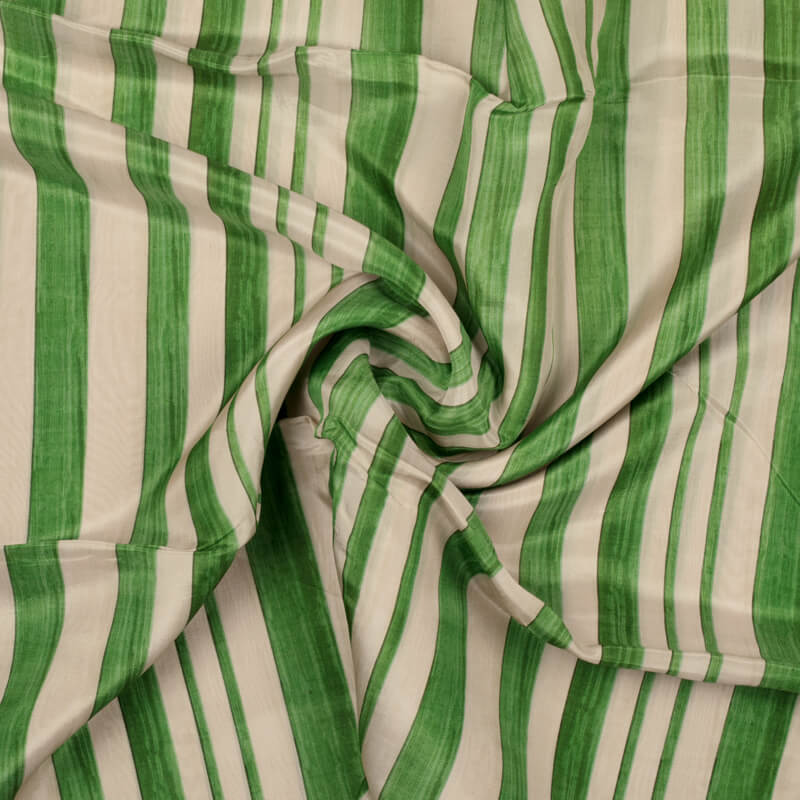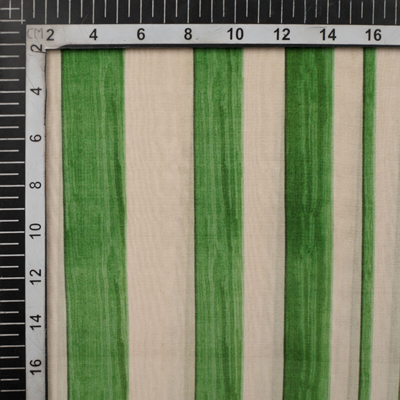 Cream And Green Stripes Pattern Digital Print Viscose Uppada Silk Fabric