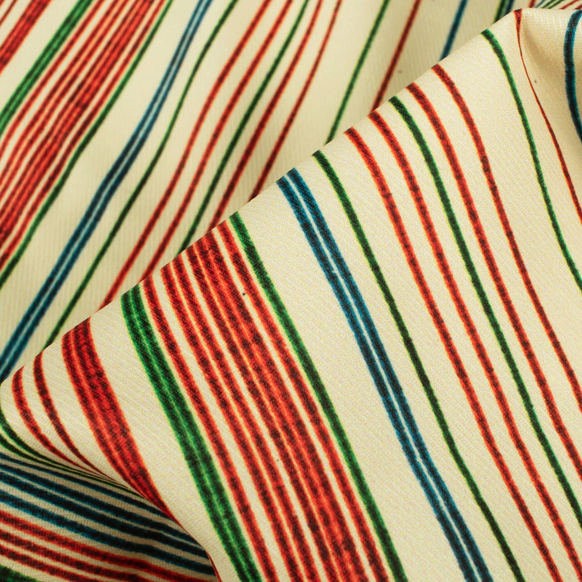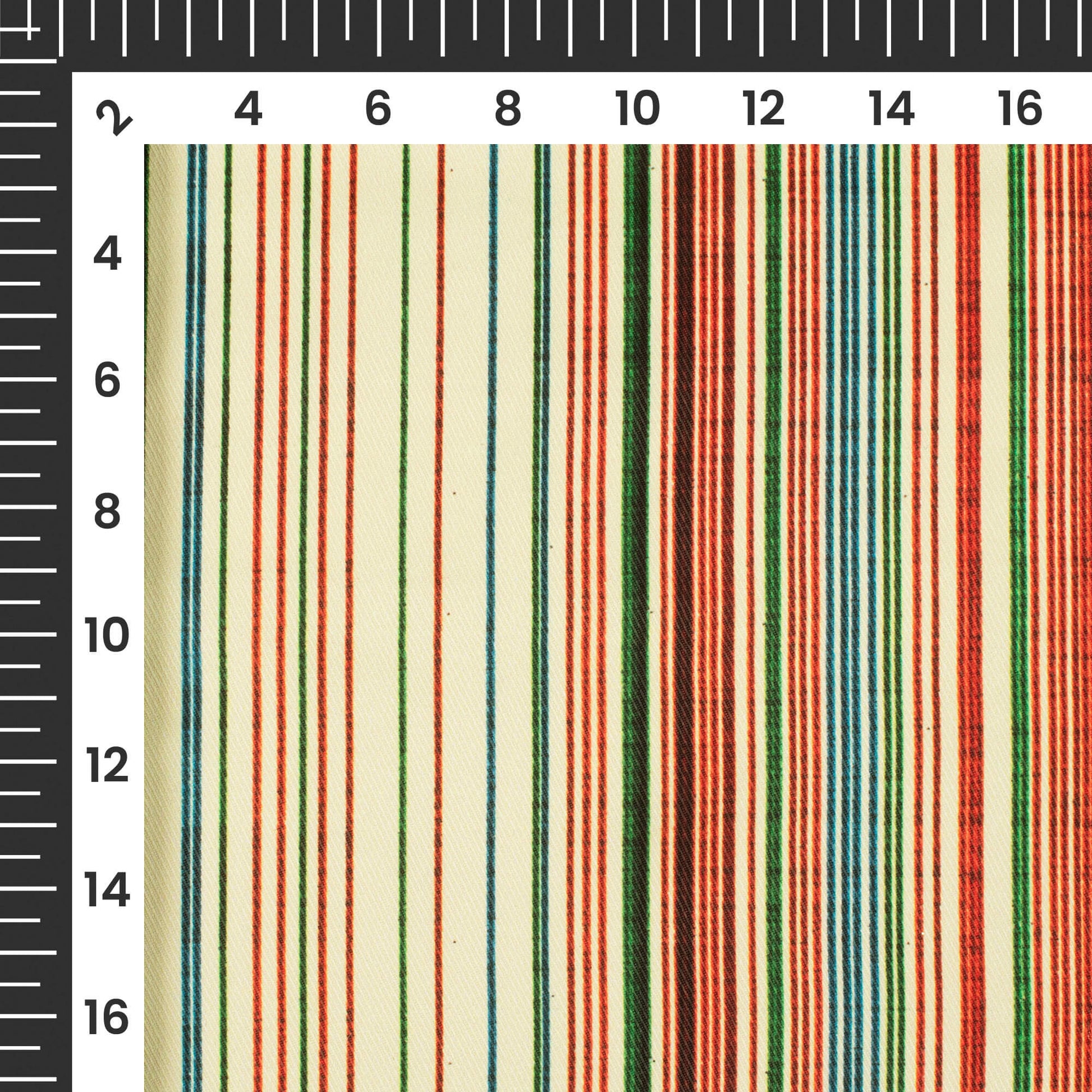 Cream And Sangria Red Stripes Pattern Digital Print Twill Fabric (Width 56 Inches)
