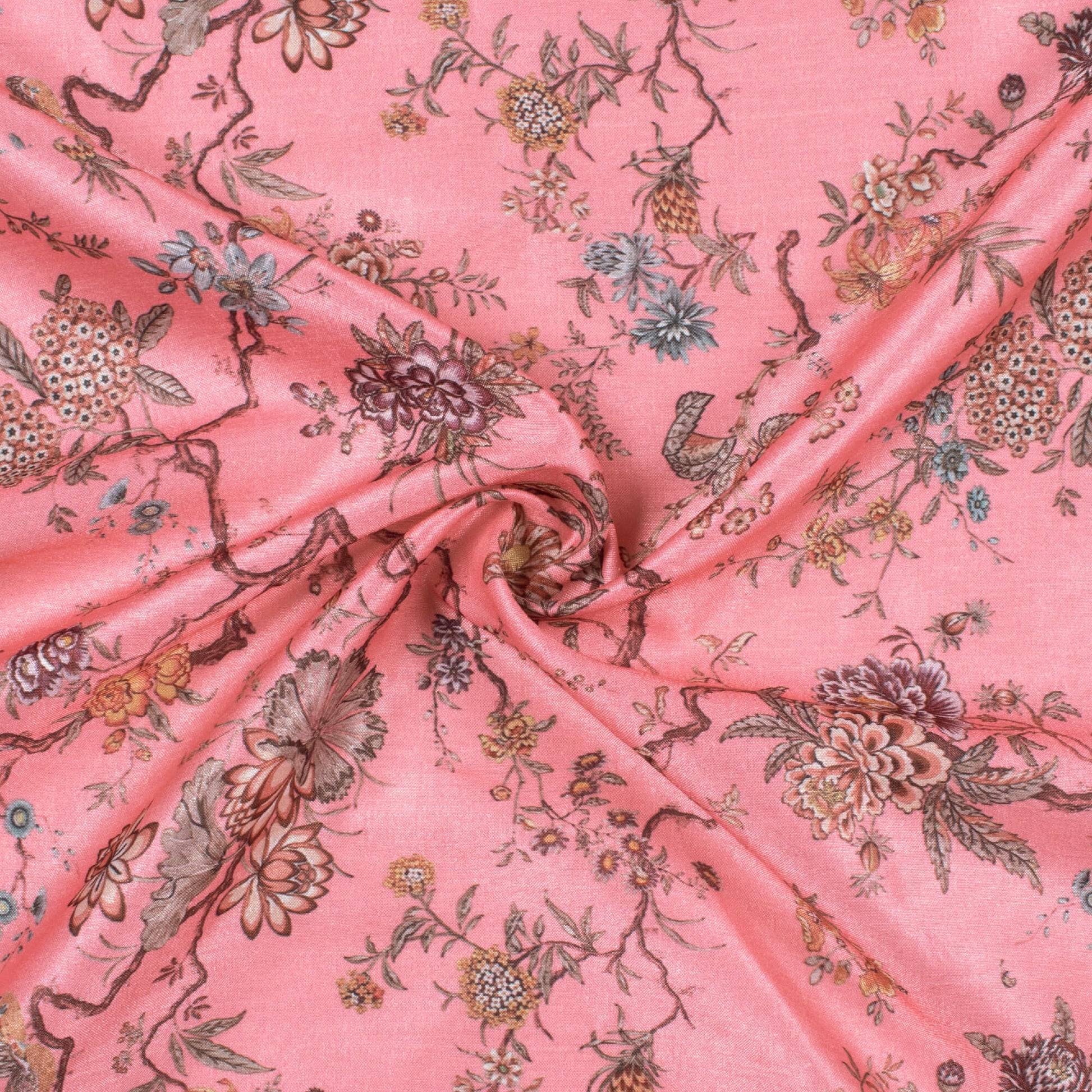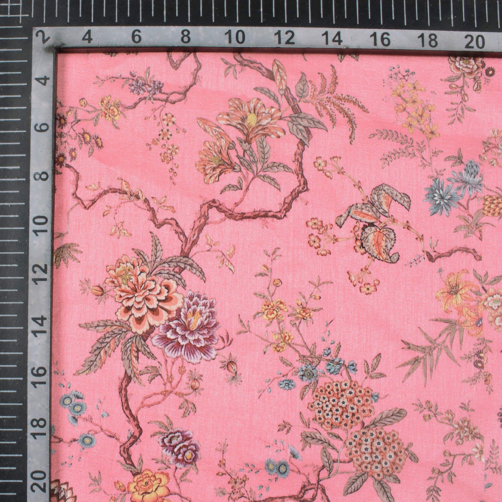 Creamy Pink And Maroon Floral Pattern Digital Print Flat Silk Fabric