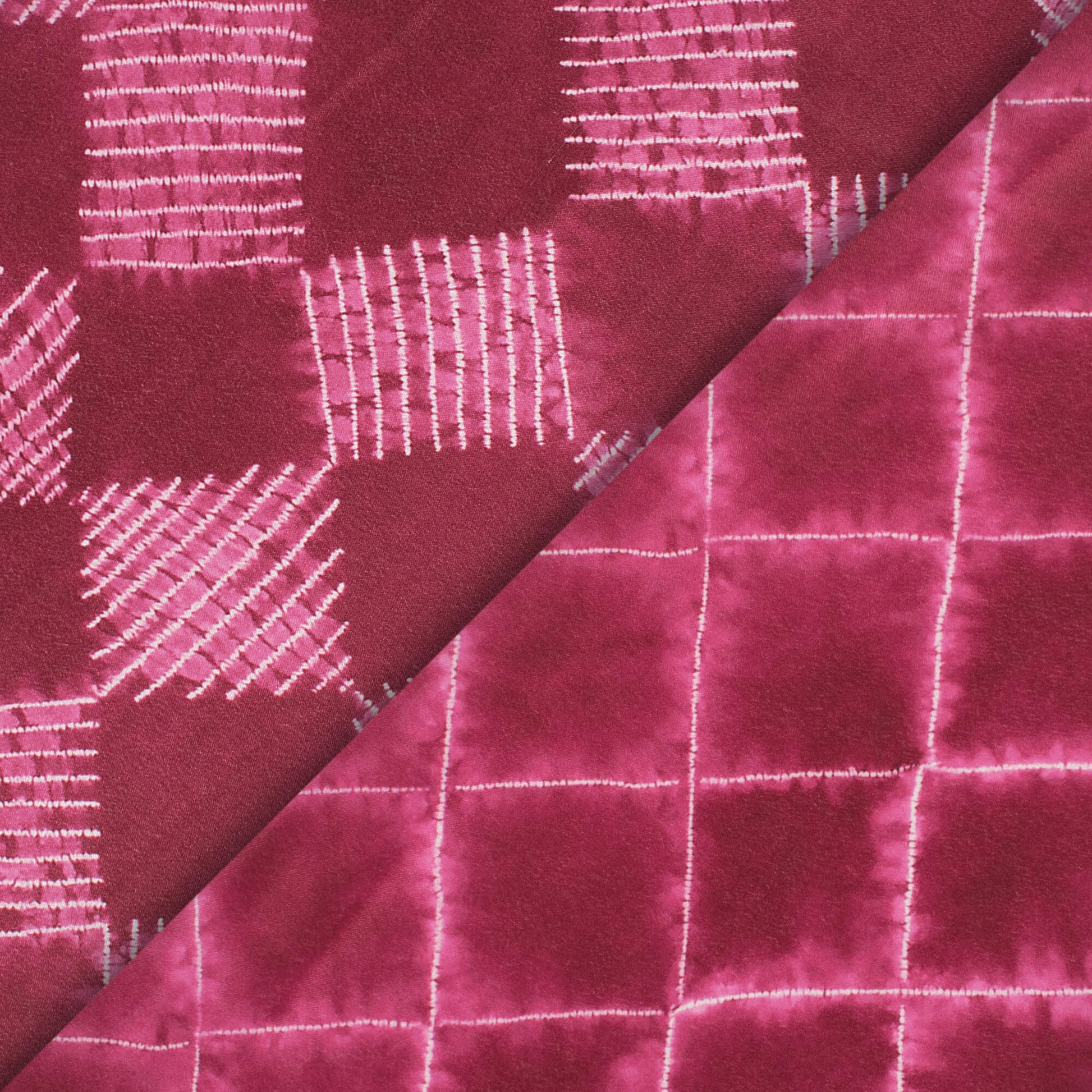 Dark Pink Shiiborii Pattern Digital Print Crepe Silk Fabric