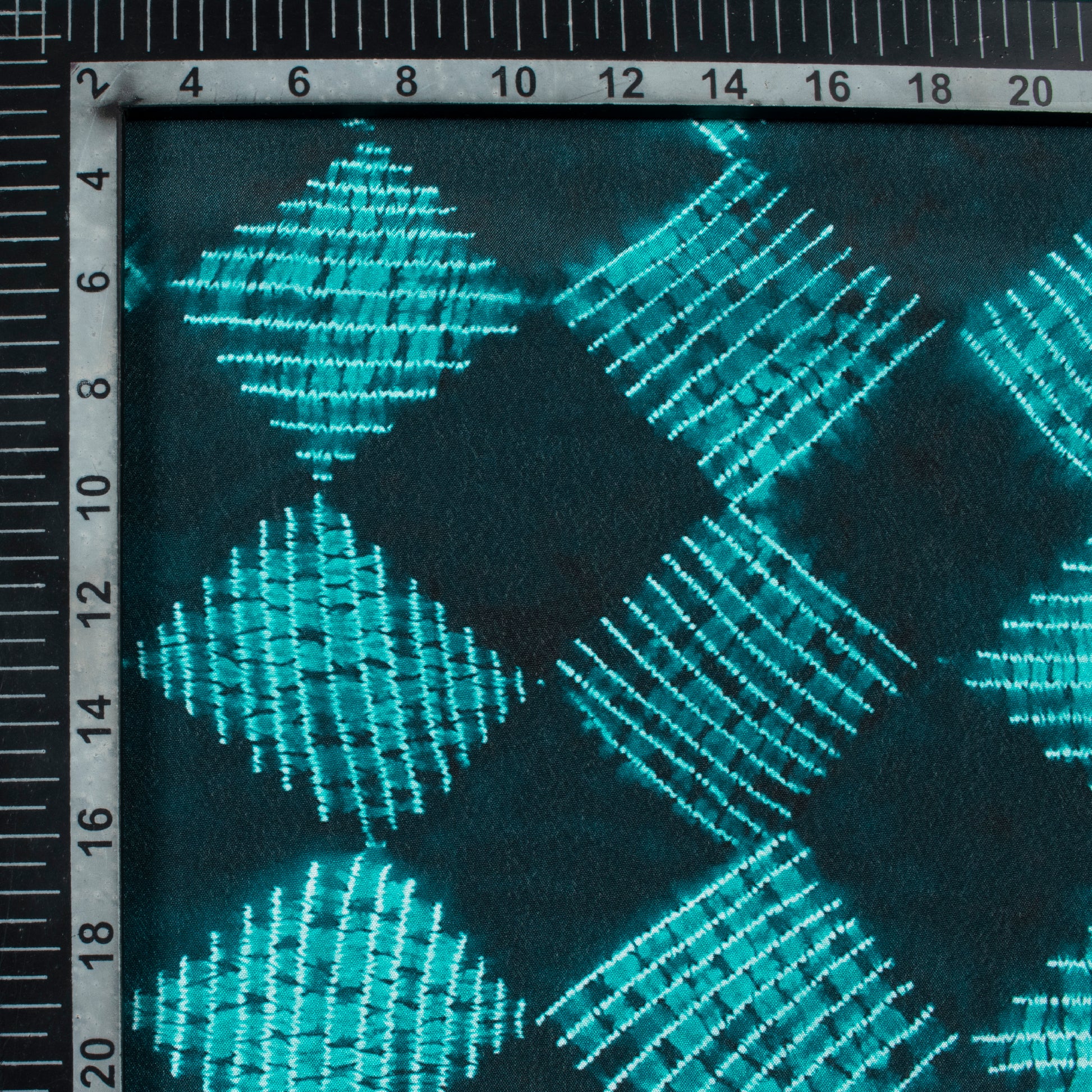 Dark Teal Green Geometric Pattern Digital Print Crepe Silk Fabric