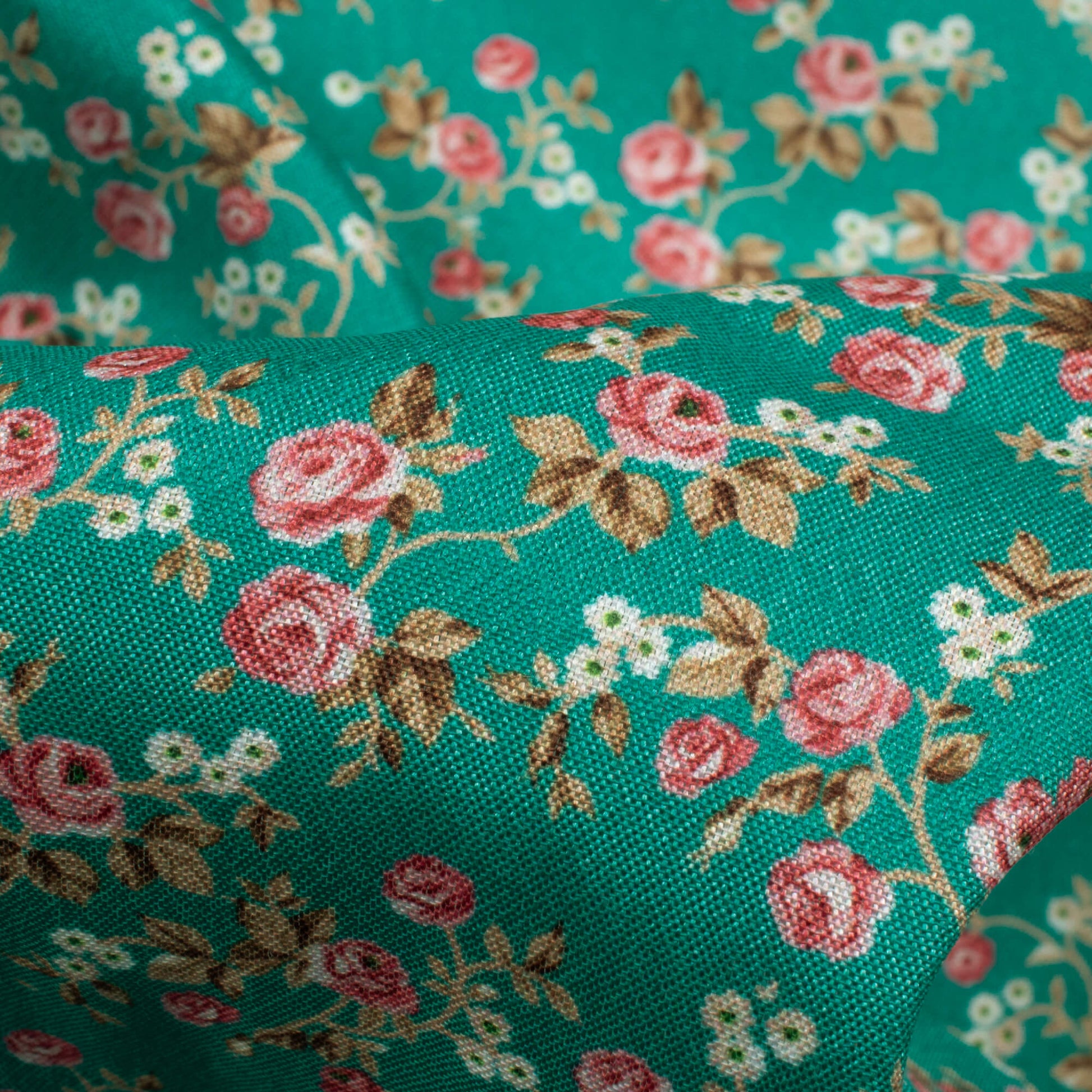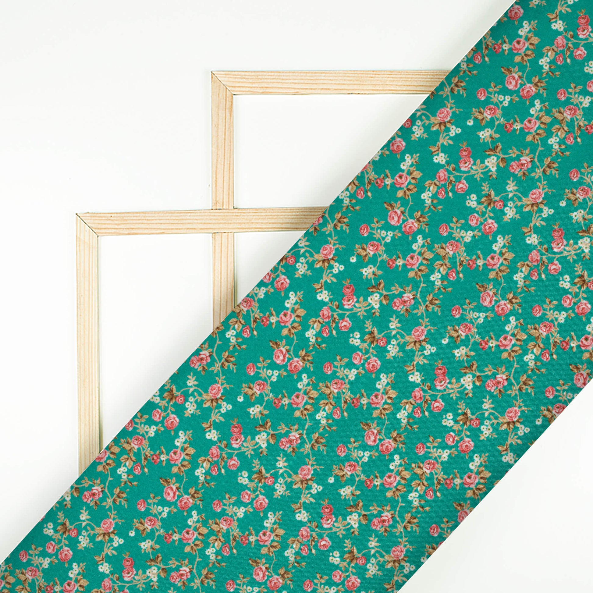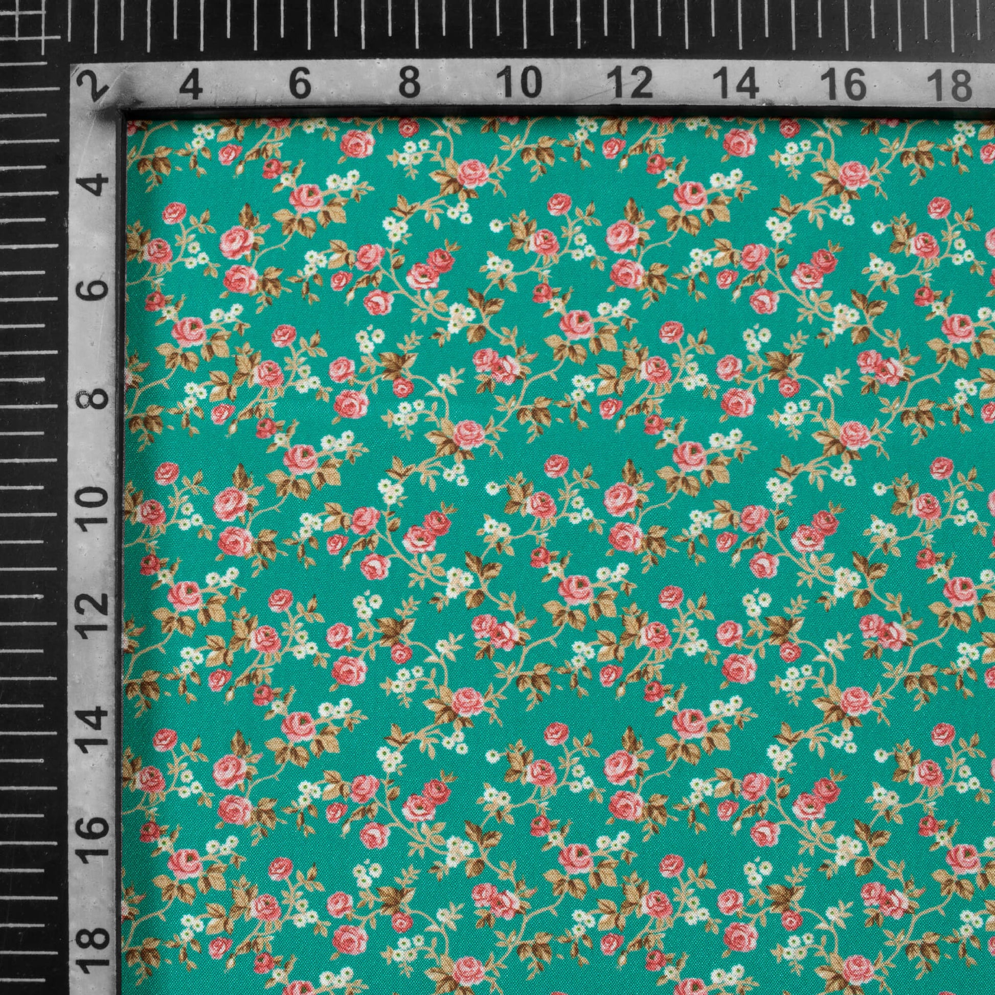 Dark Turquoise And Pink Floral Pattern Digital Print Crepe Silk Fabric