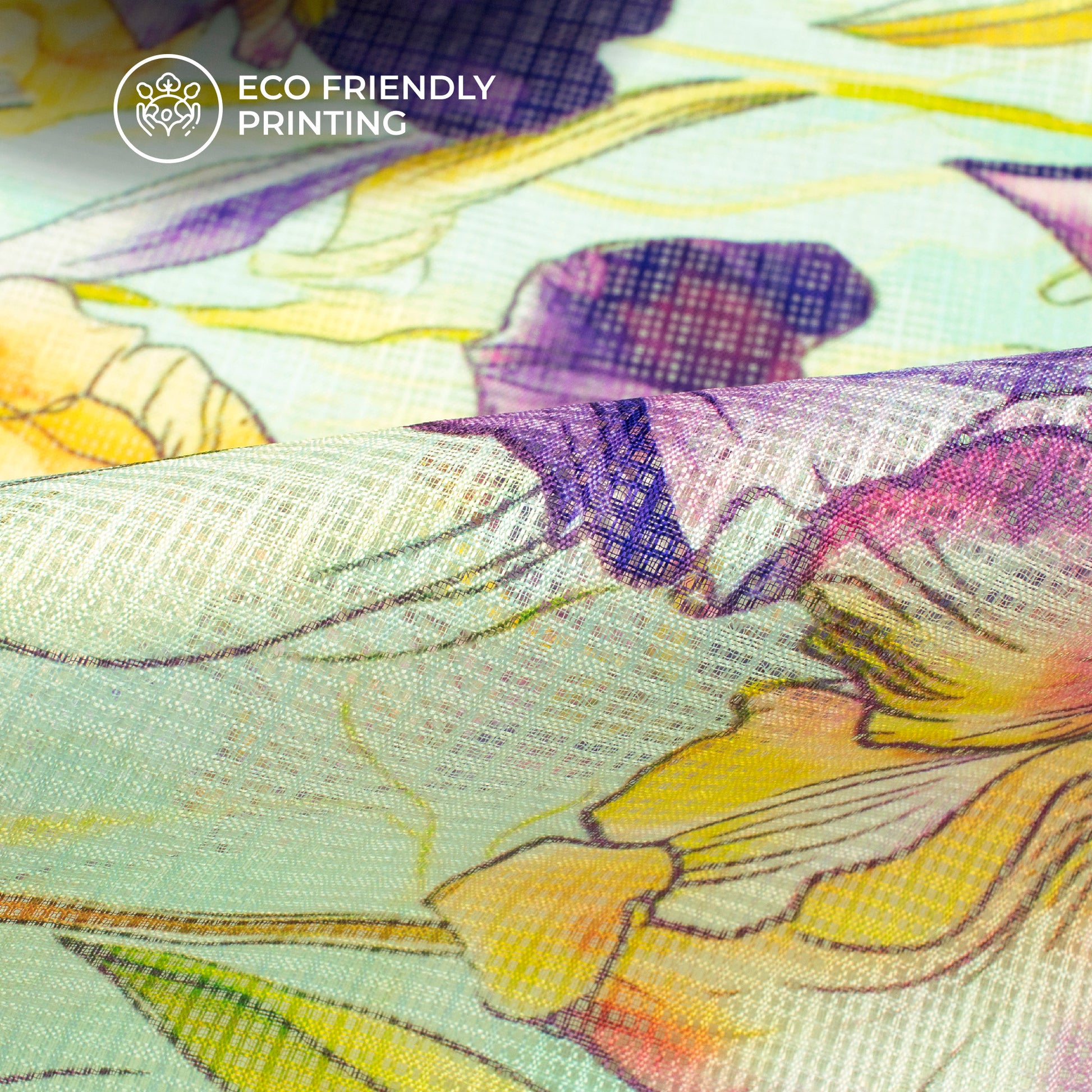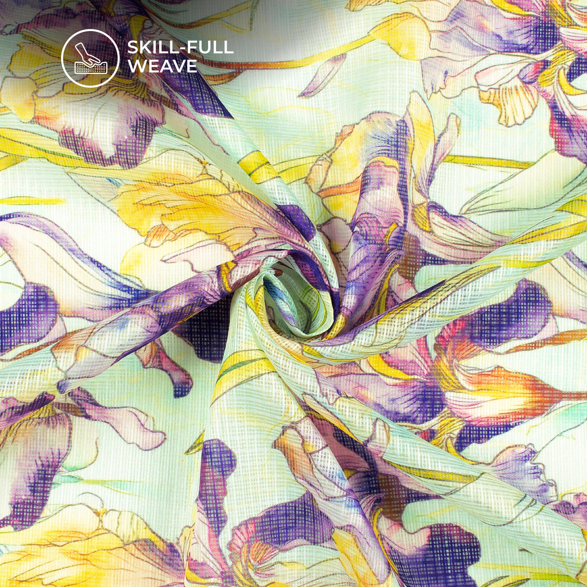 Eminence Purple Floral Digital Print Kota Doria Fabric