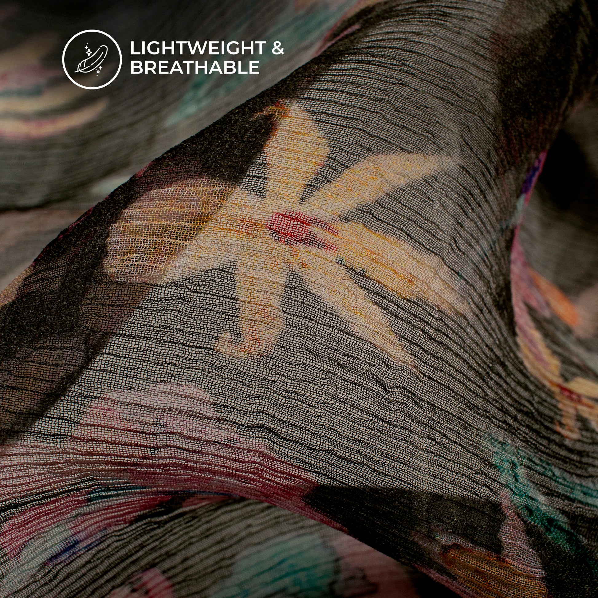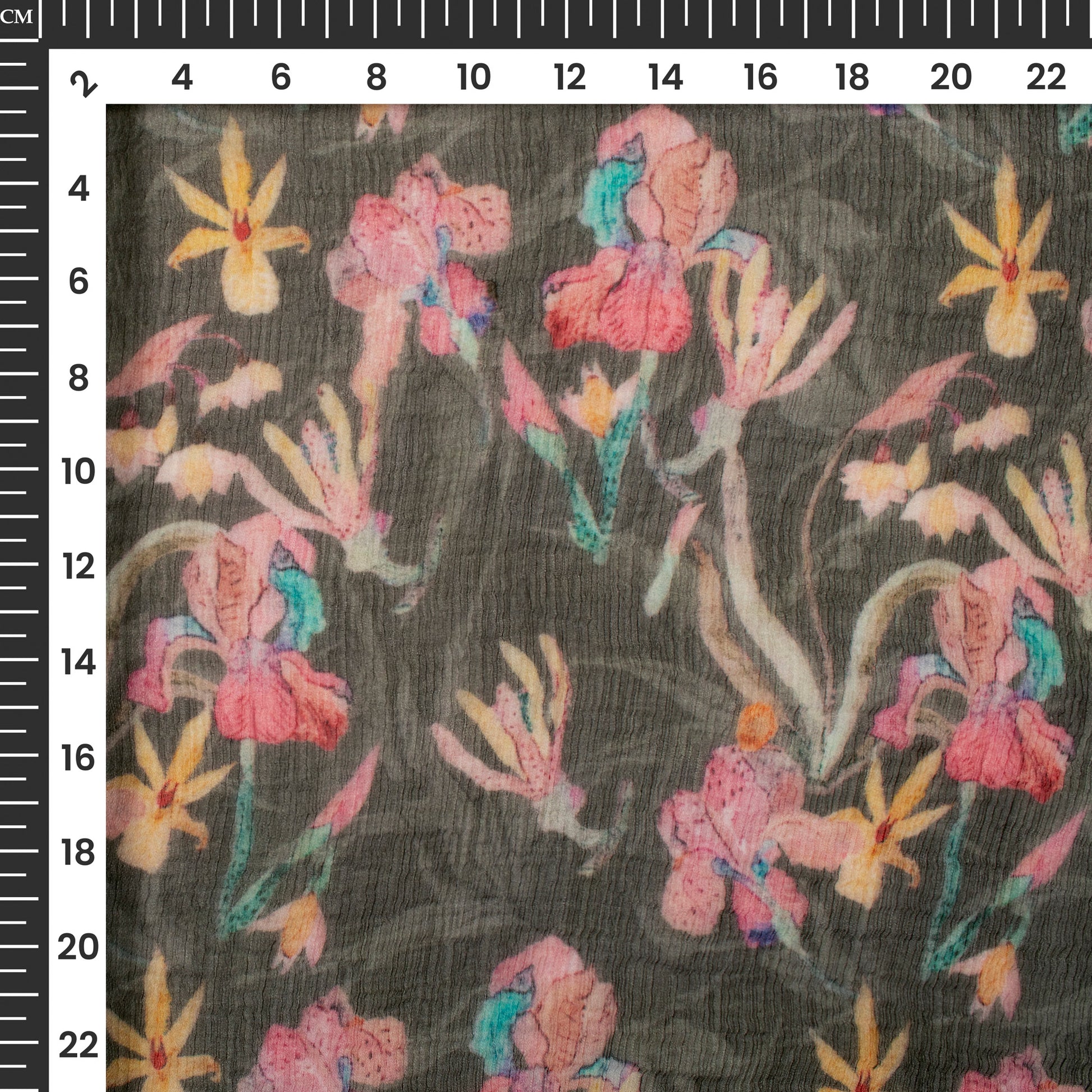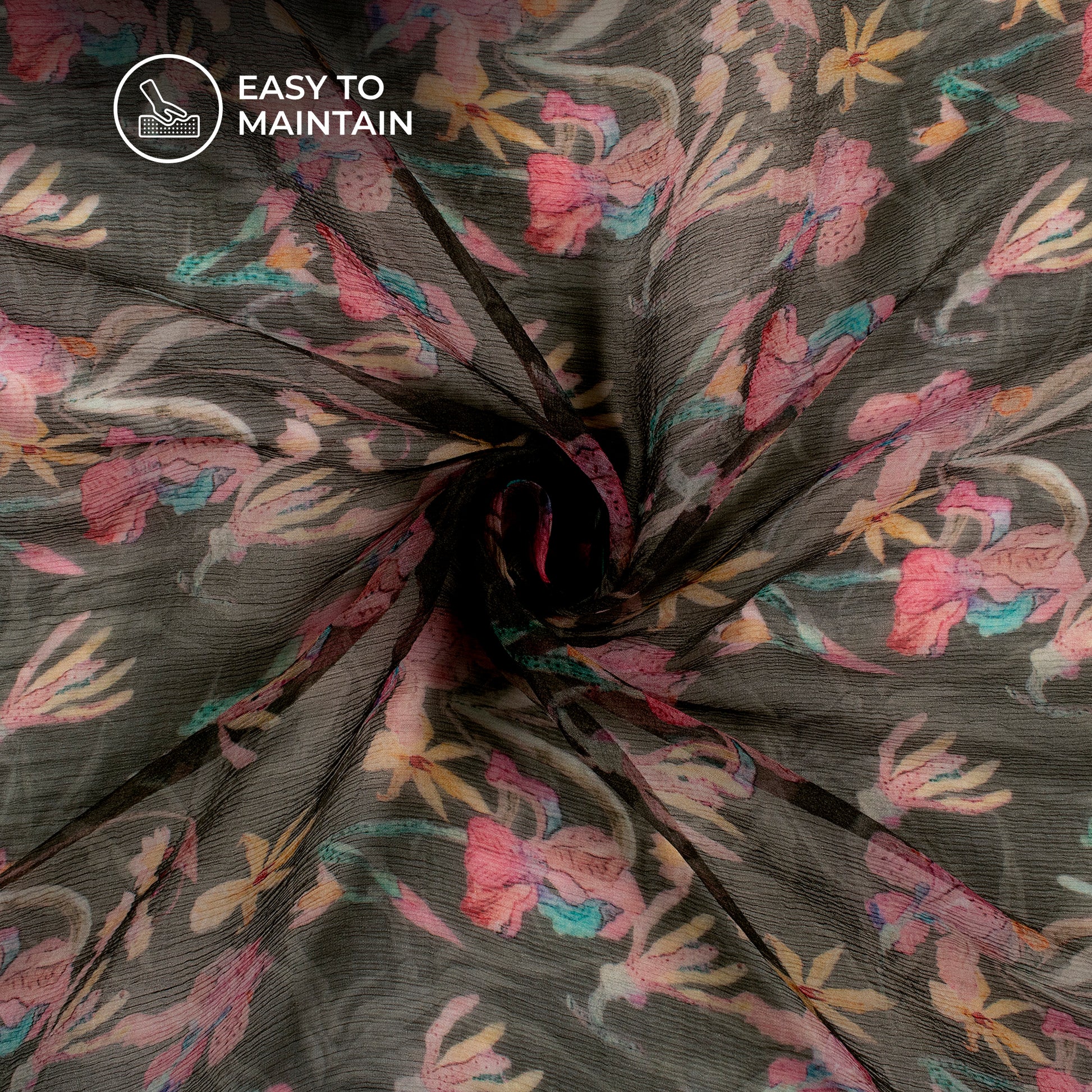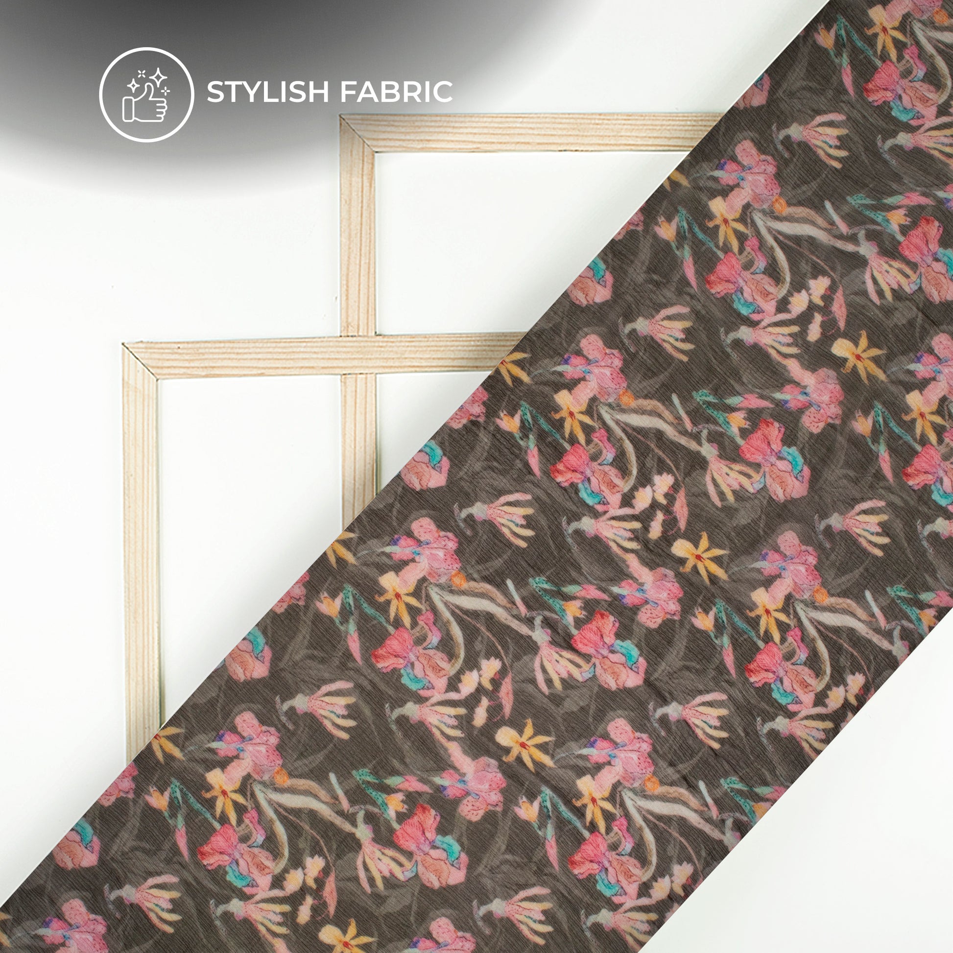 Engaging Pink Floral Digital Print Bemberg Chiffon Fabric