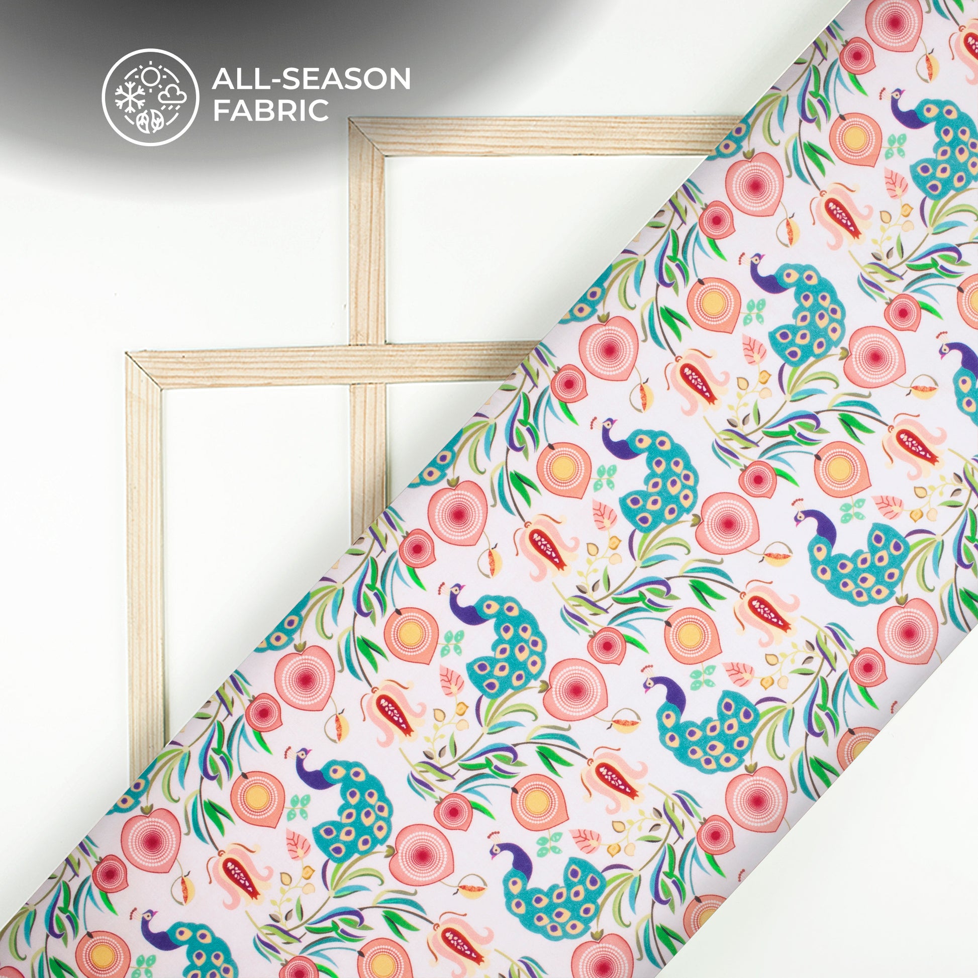 Floral Peacock Bird Digital Print Cotton Cambric Fabric
