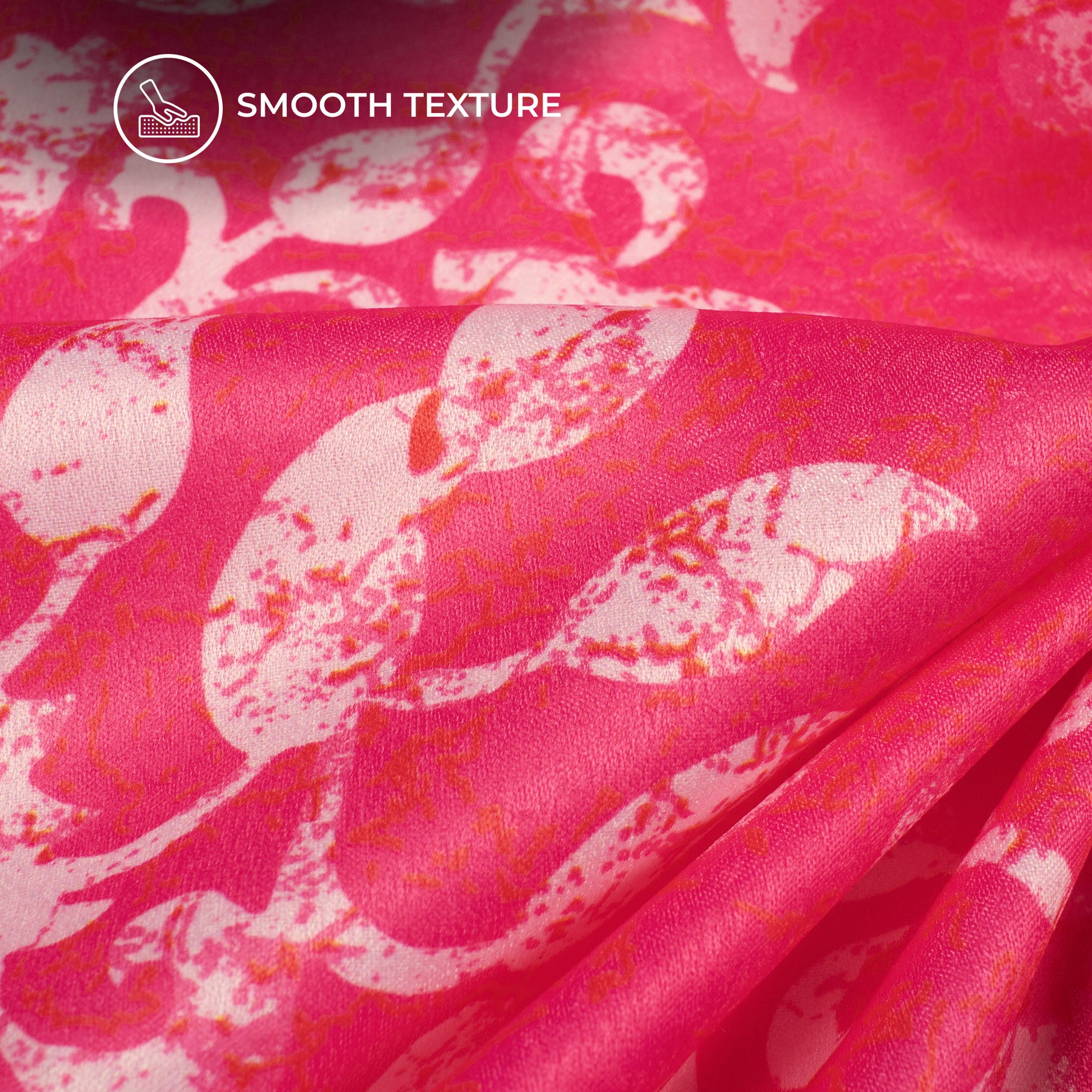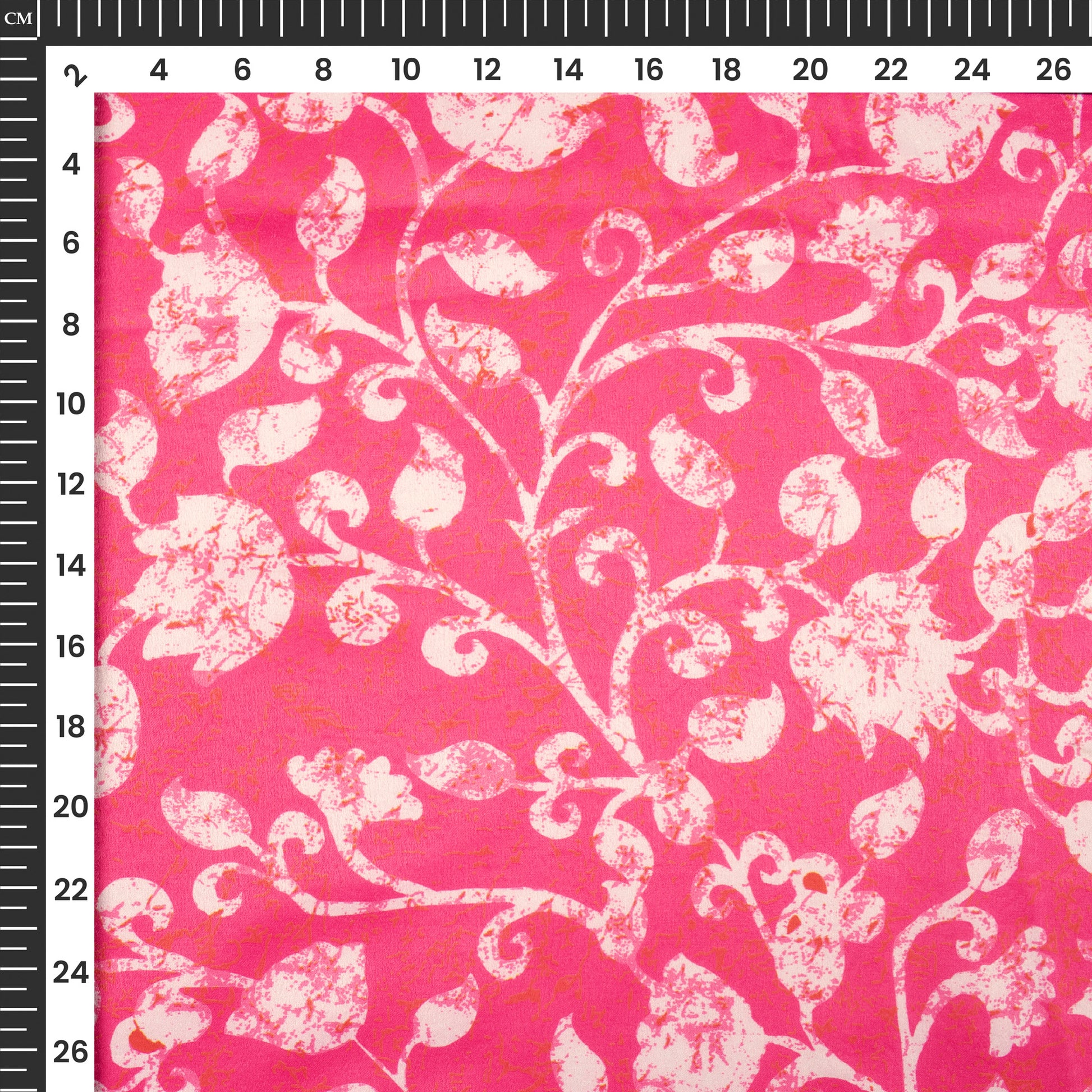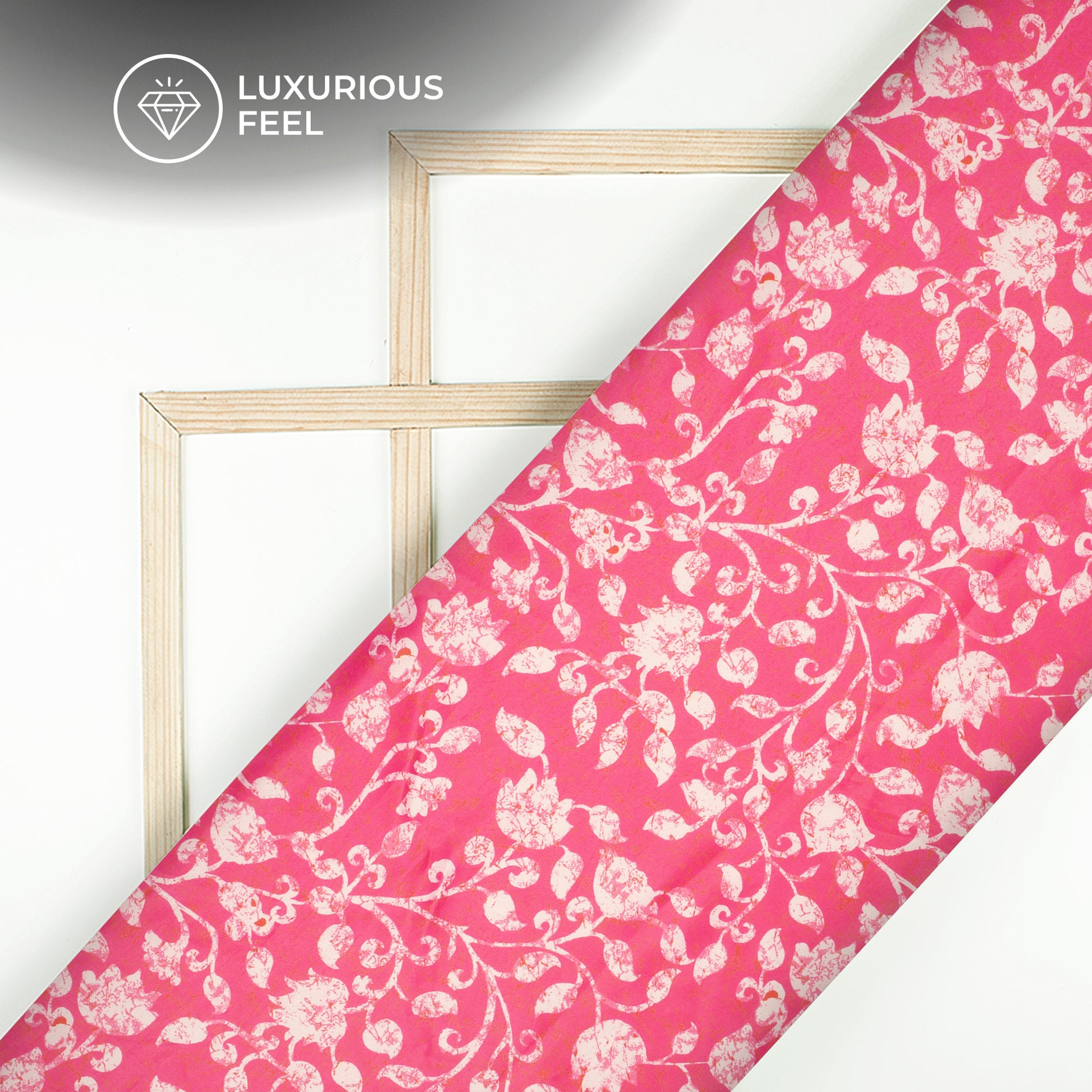 Fuscia Pink Floral Digital Print Lush Satin Fabric
