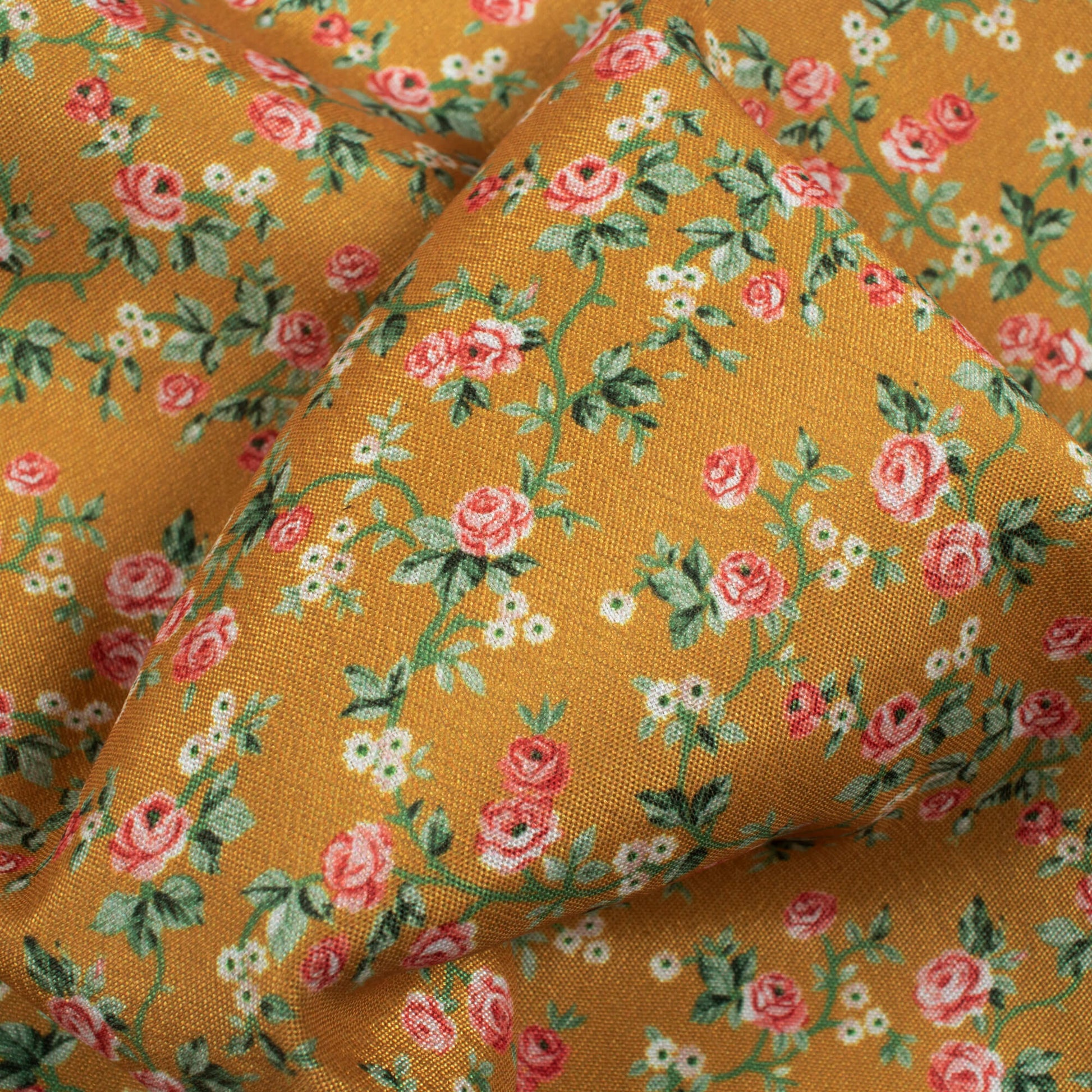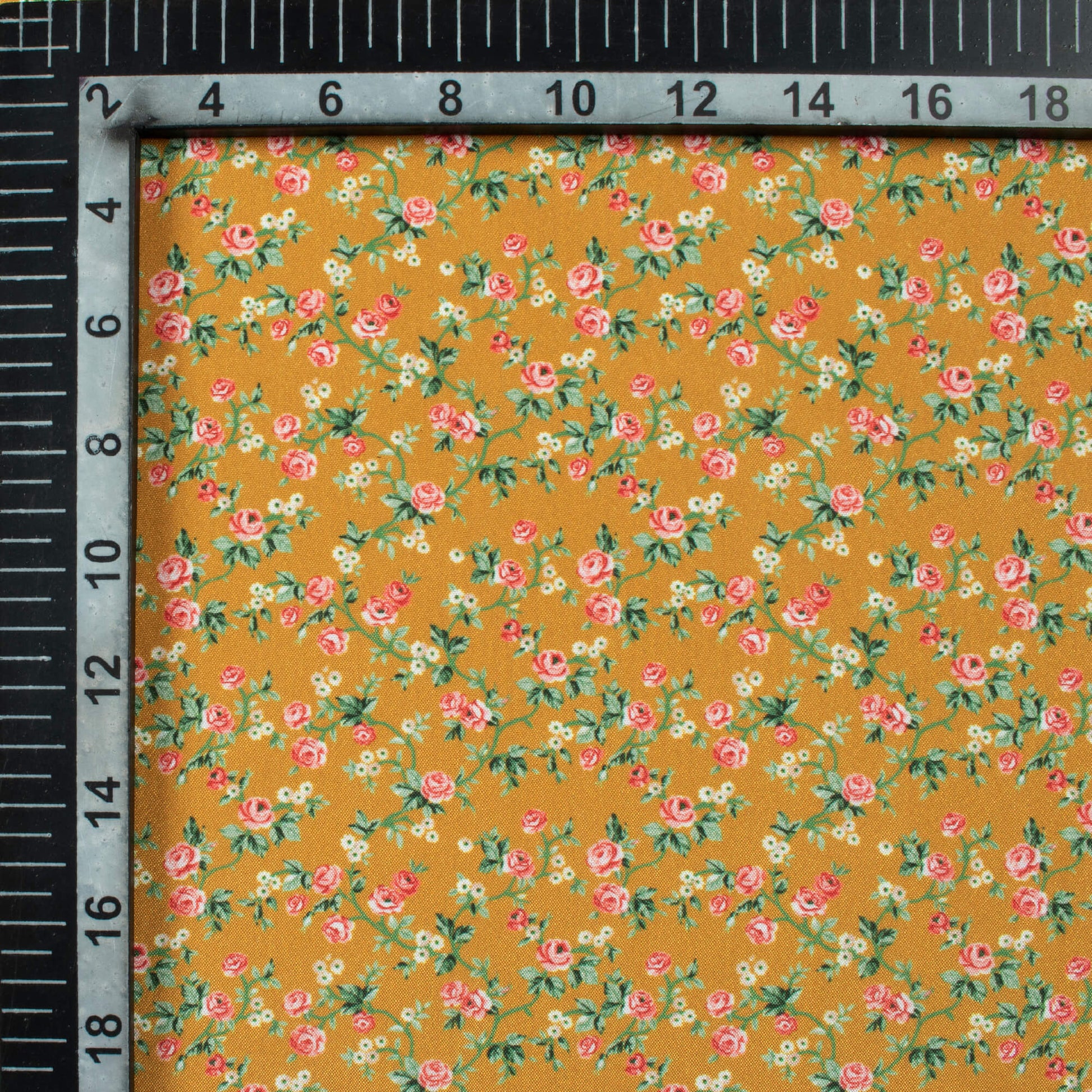 Goldenrod Yellow And Green Floral Pattern Digital Print Crepe Silk Fabric