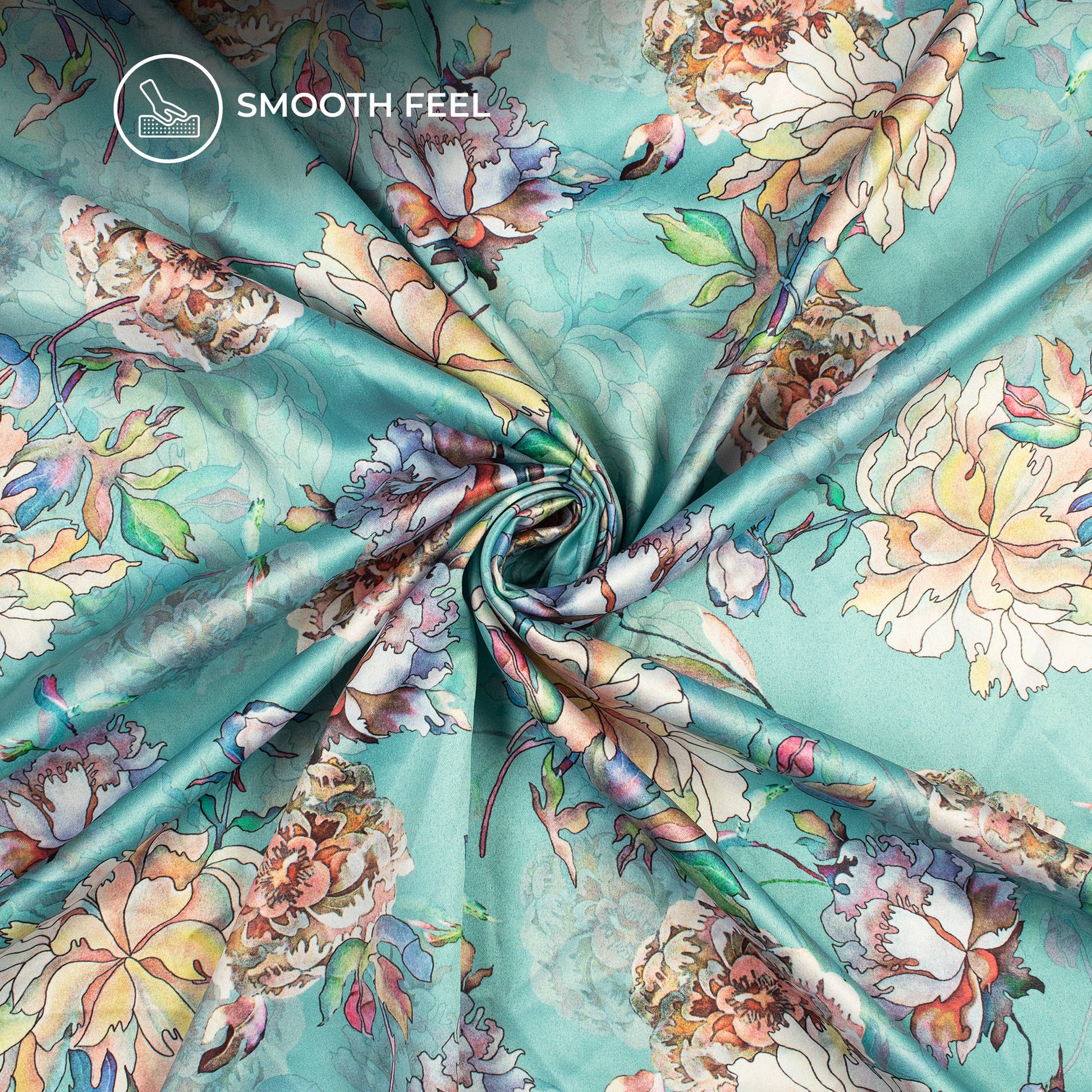 Graceful Floral Digital Print Charmeuse Satin Fabric (Width 58 Inches)