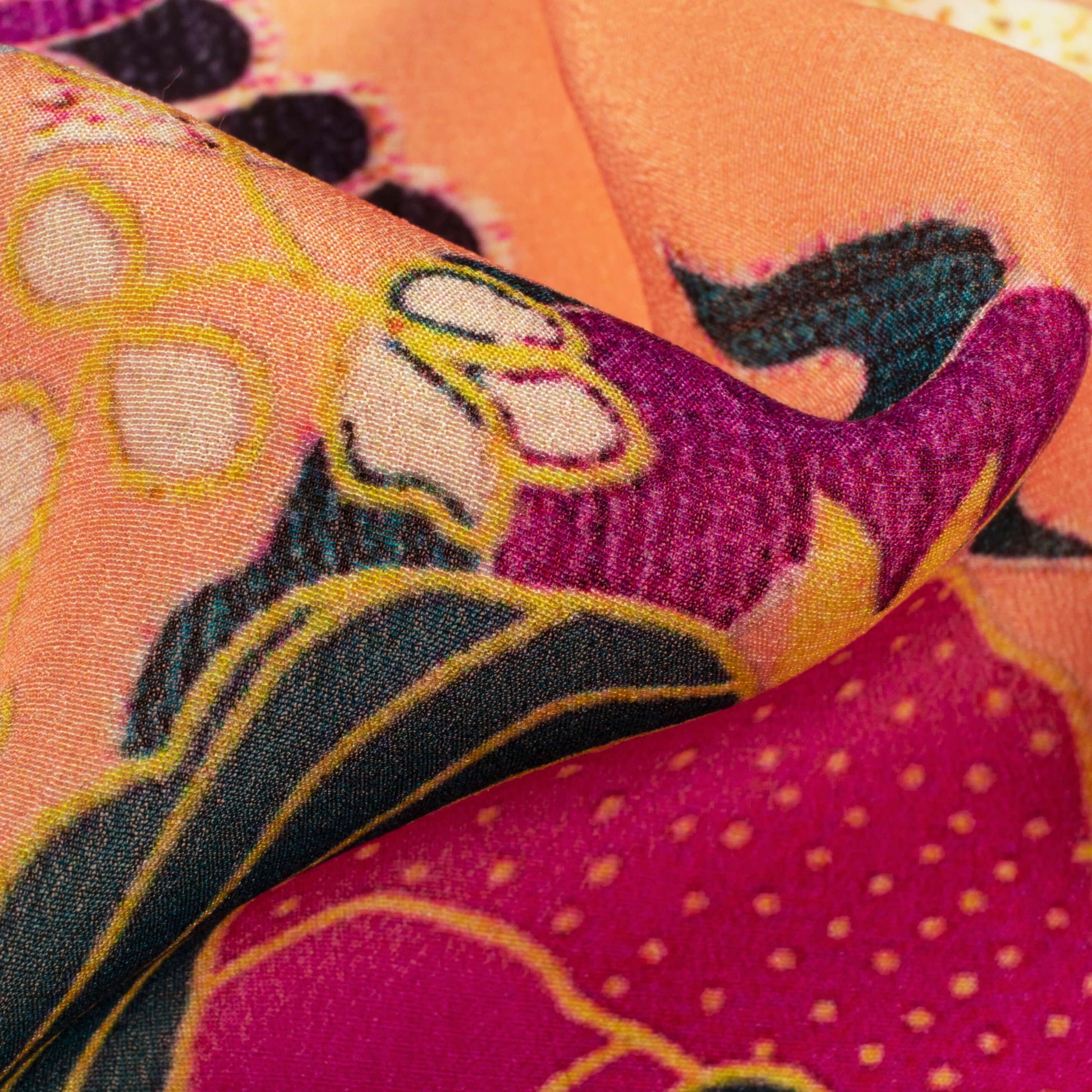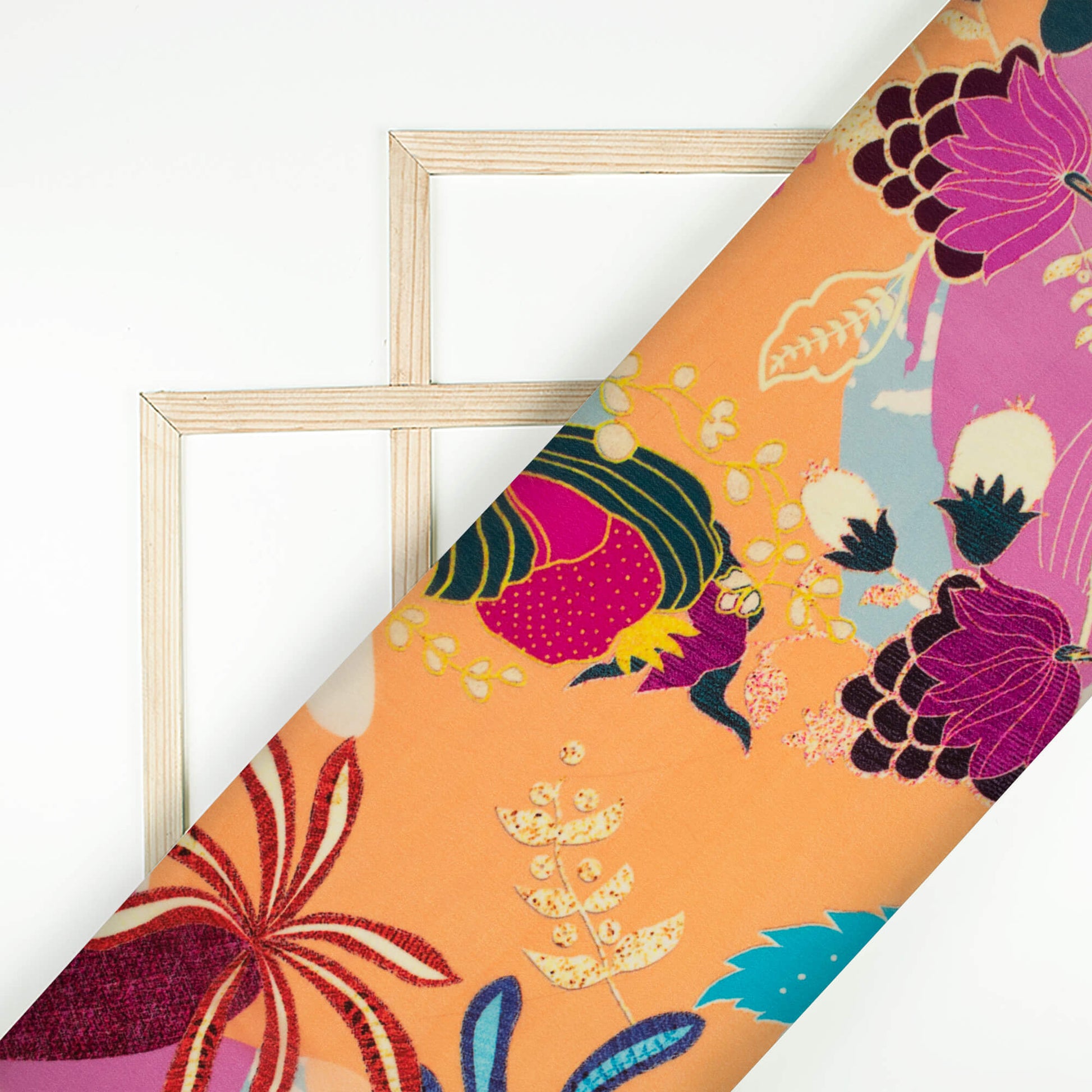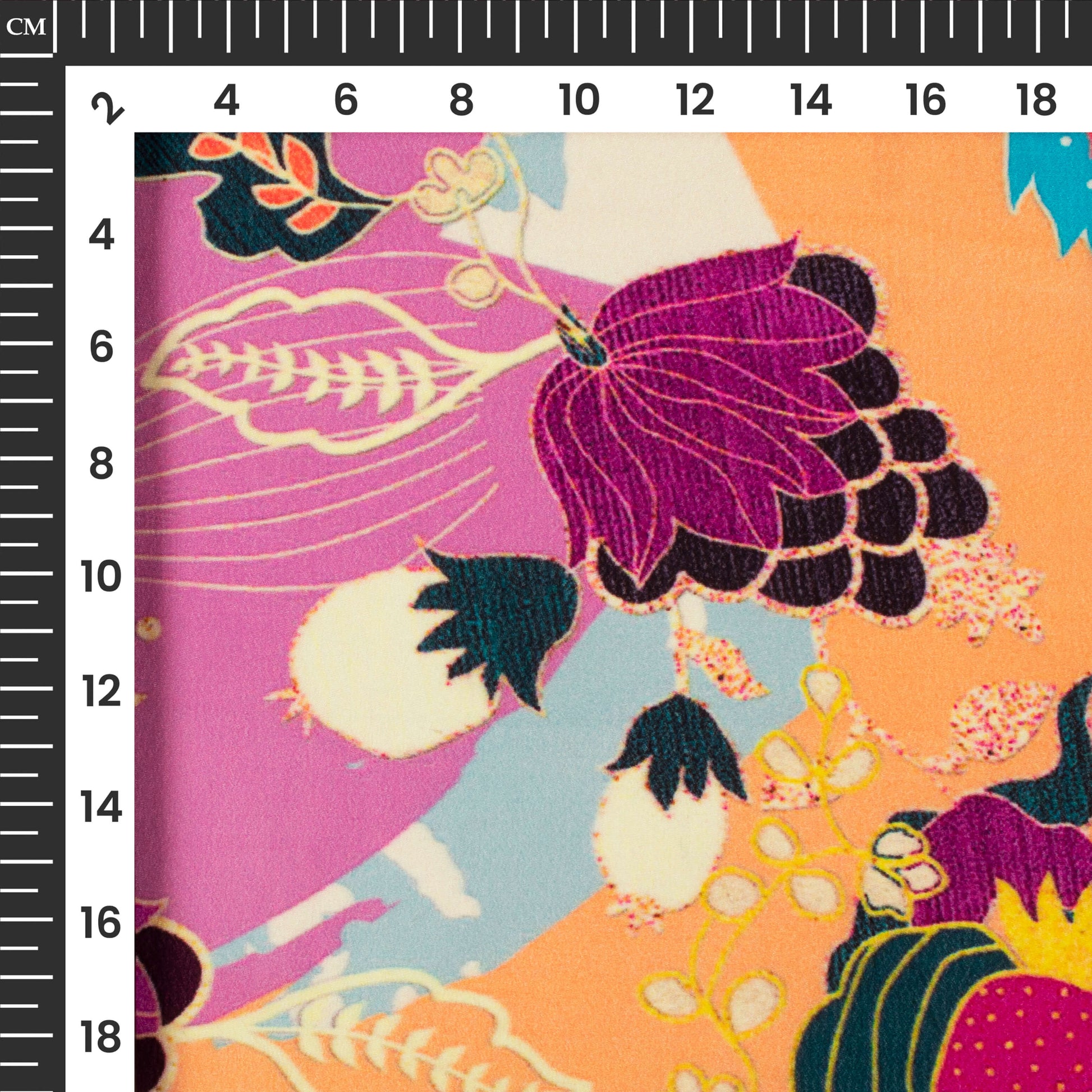 Heather Purple And Peach Floral Digital Print Viscose Natural Crepe Fabric