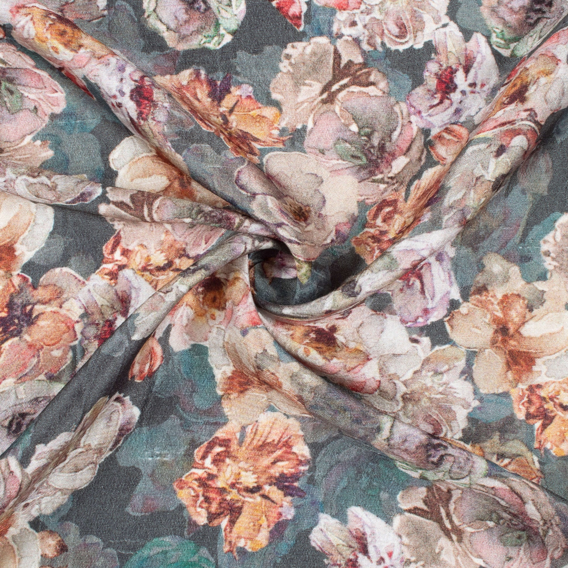 Lace Pink And Grey Floral Digital Print Bemberg Raw Silk Fabric