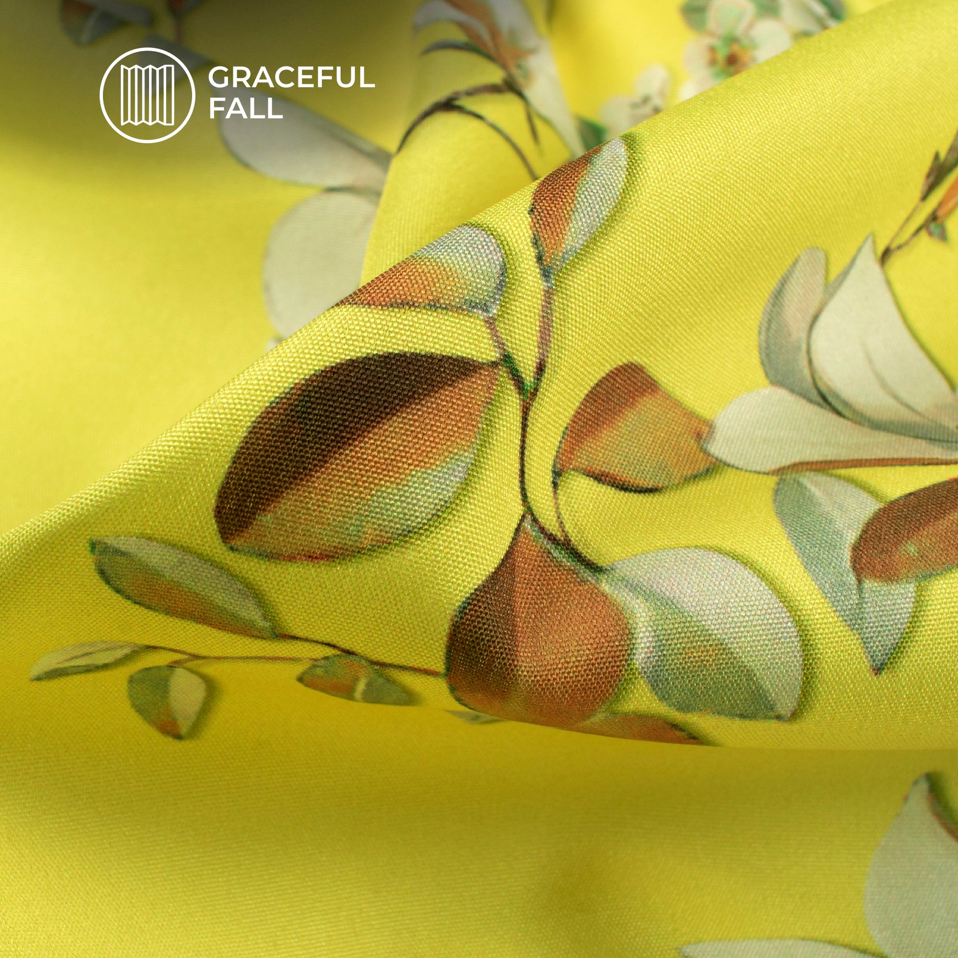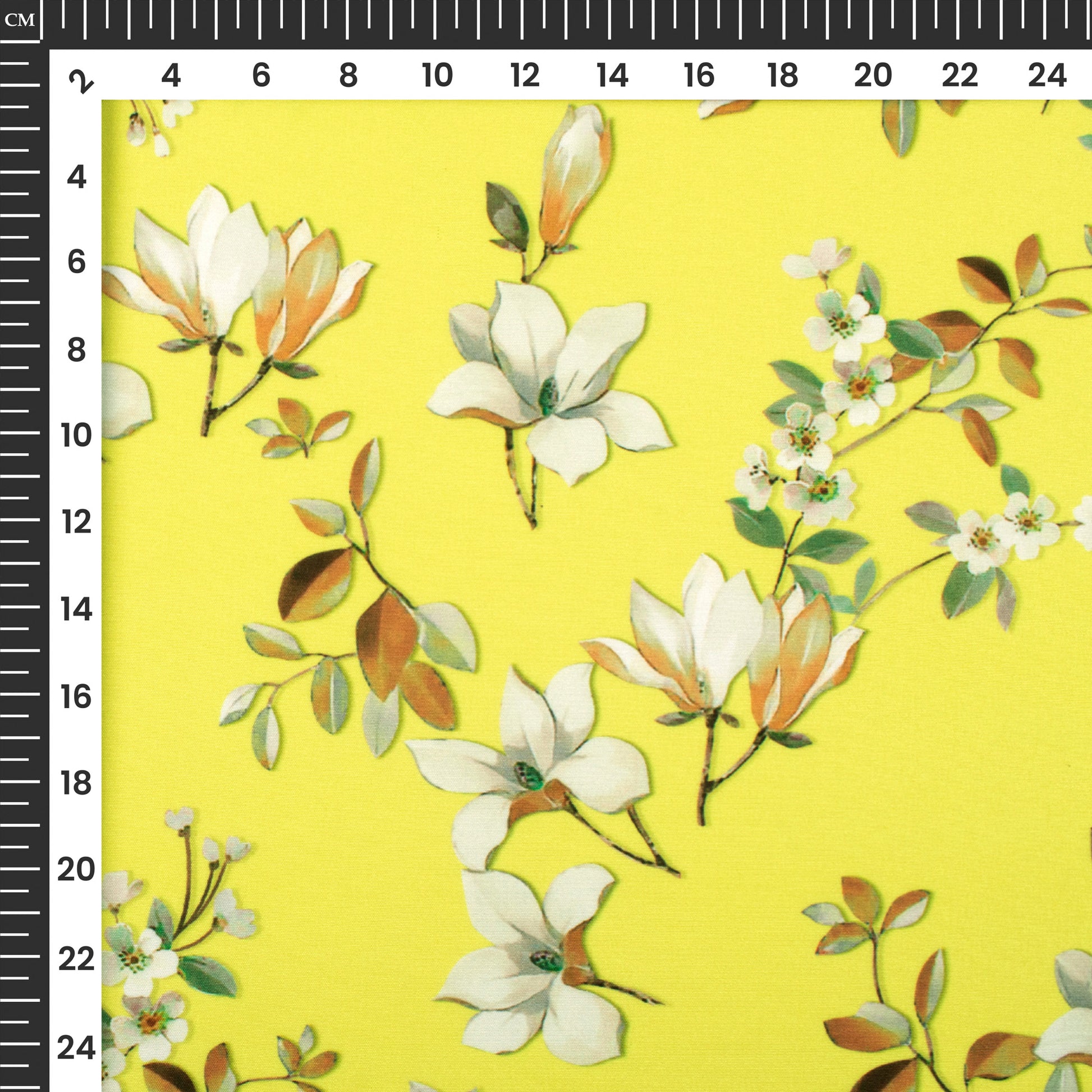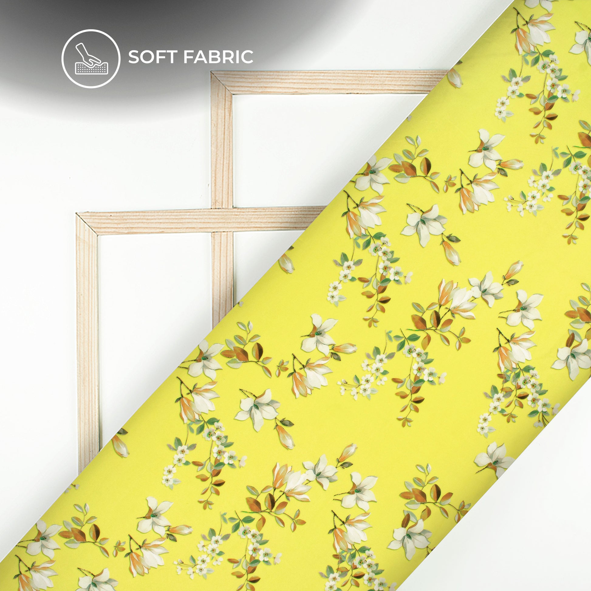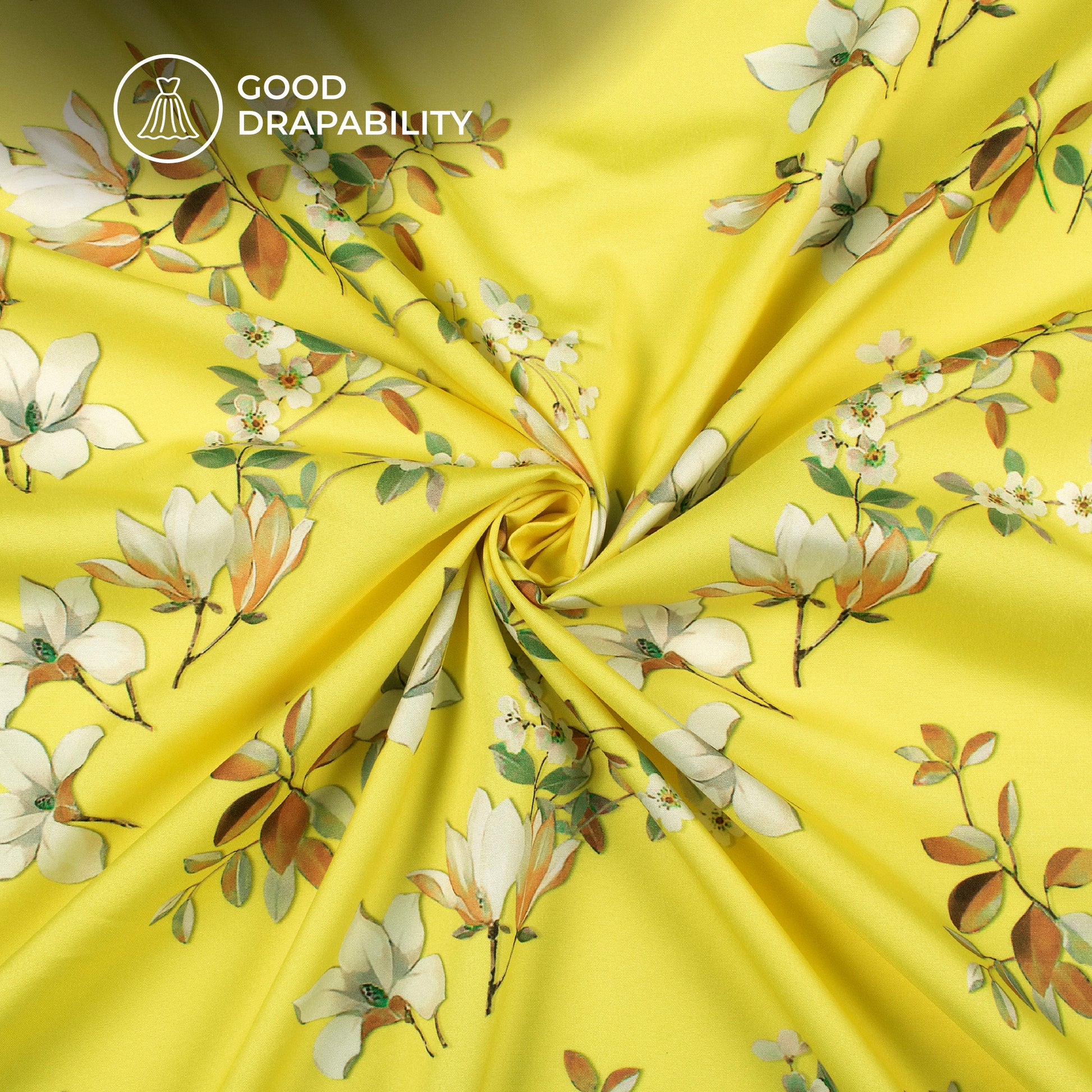 Lemon Yellow And Off White Floral Digital Print Butter Crepe Fabric