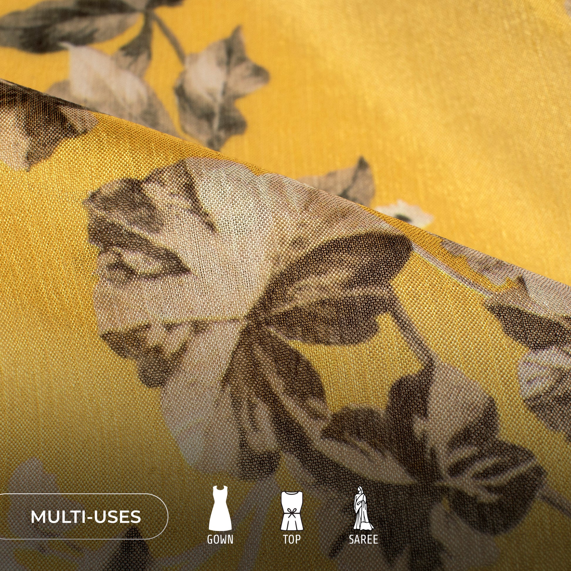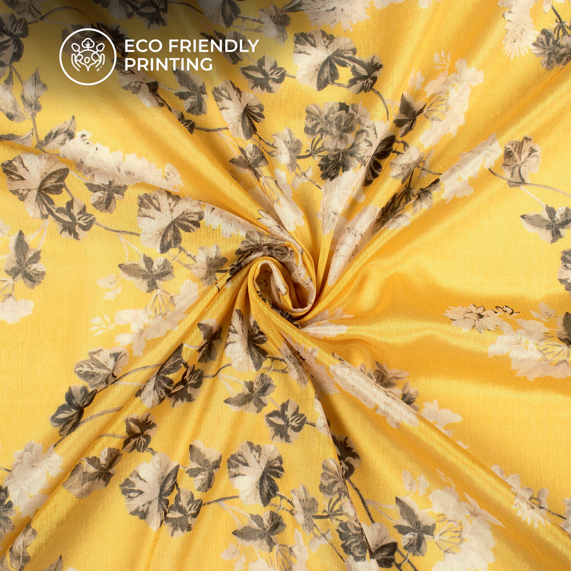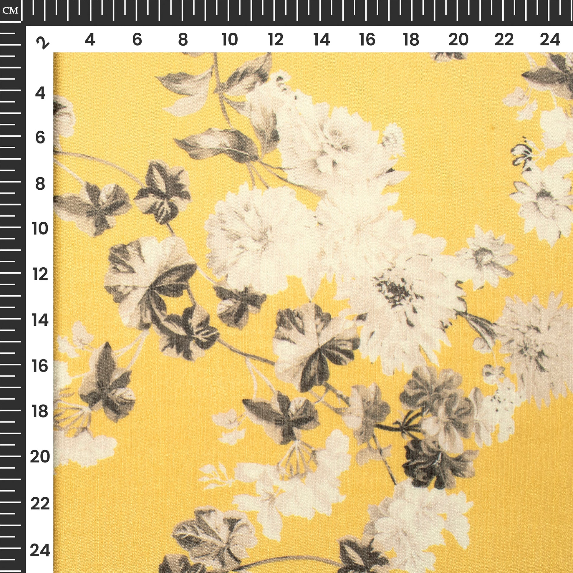 Lemon Yellow Floral Digital Print Poly Chinnon Chiffon Fabric