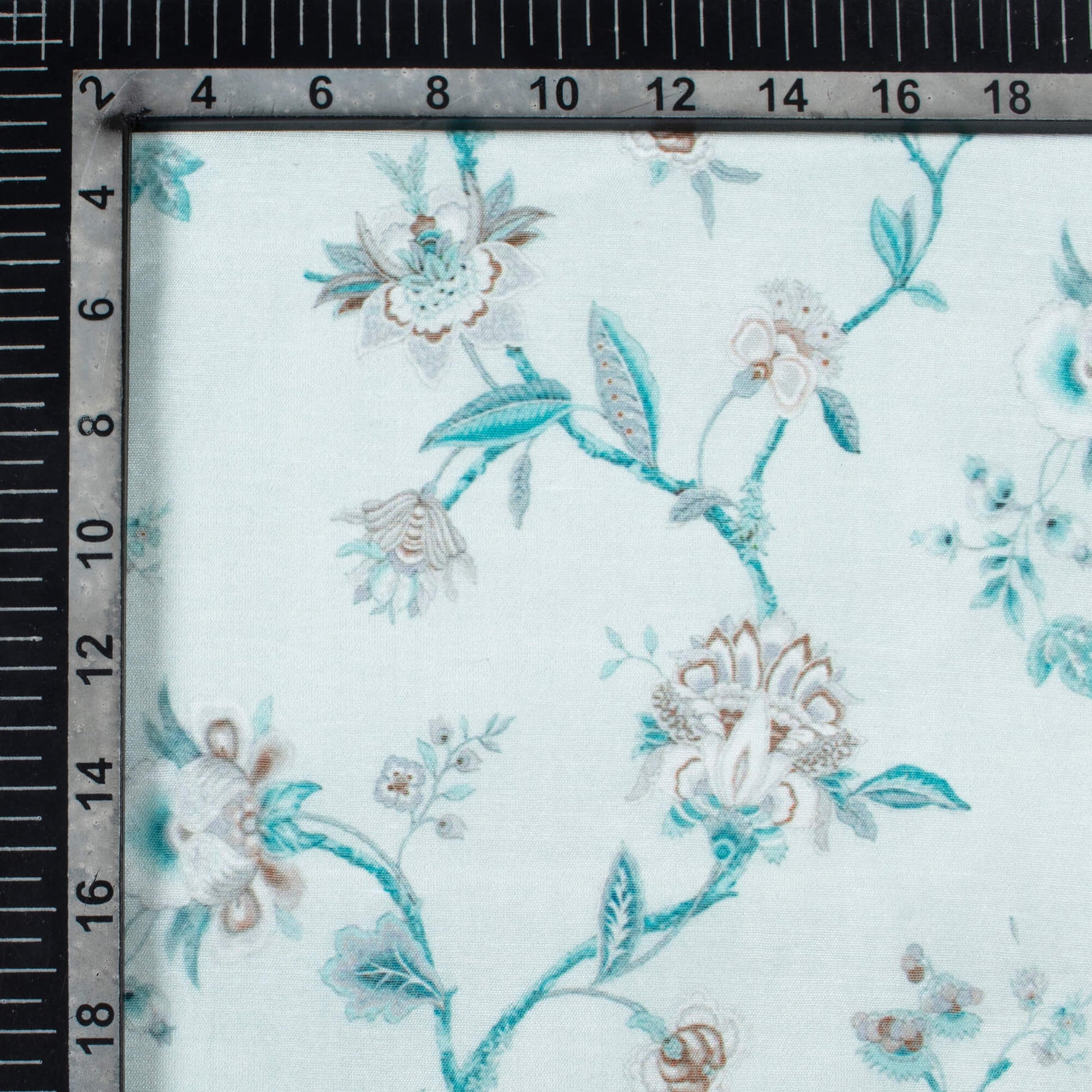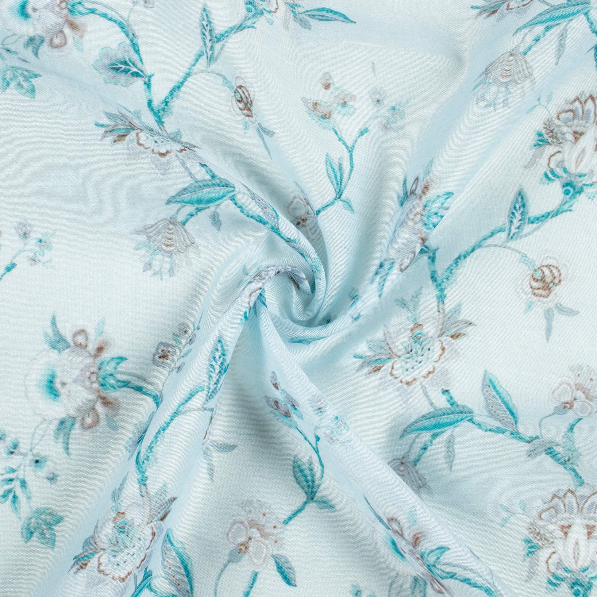 Light Blue And Dark Brown Floral Pattern Digital Print Chanderi Fabric
