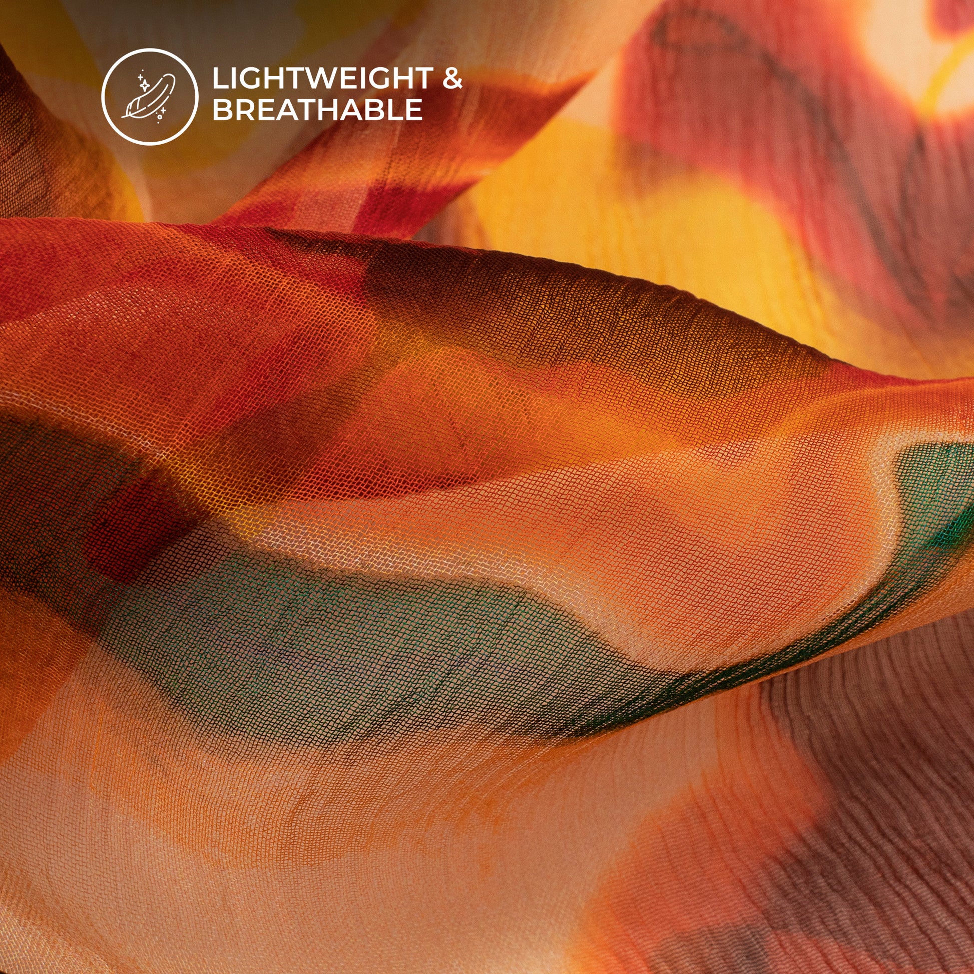 Lightweight And Breathable: Yellow Digital Print Bemberg Chiffon Fabric