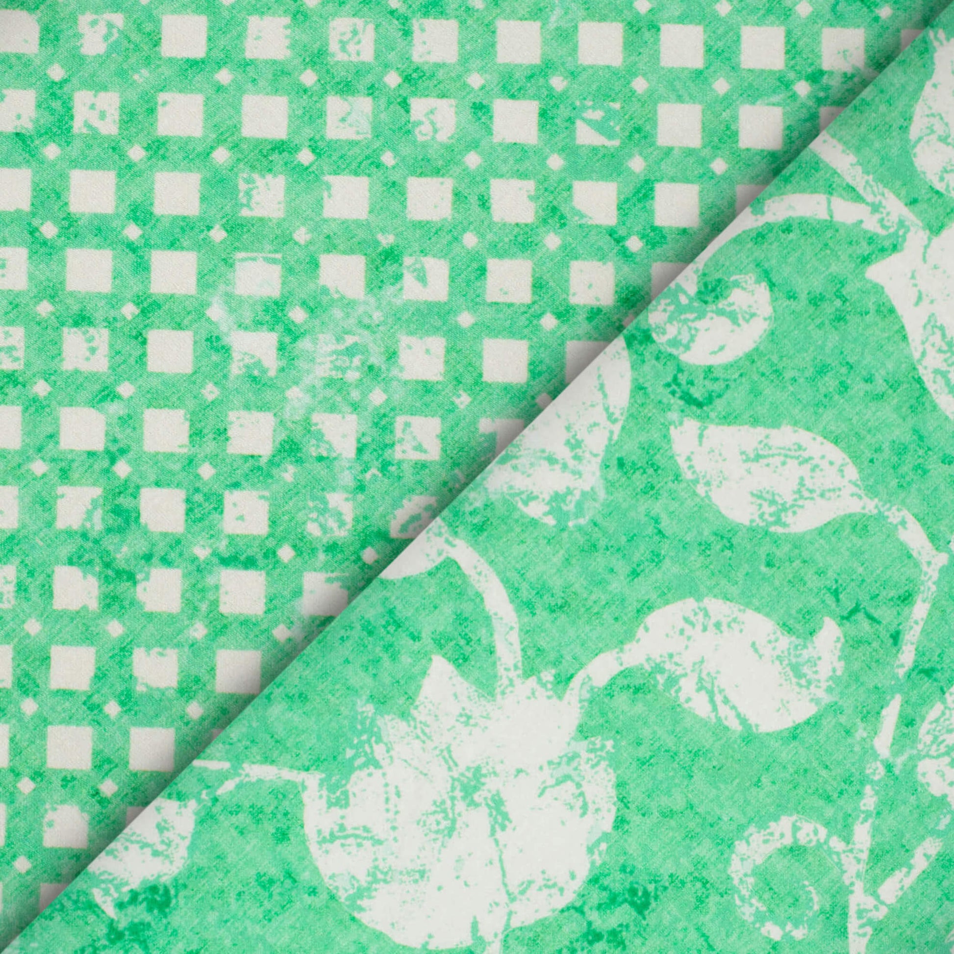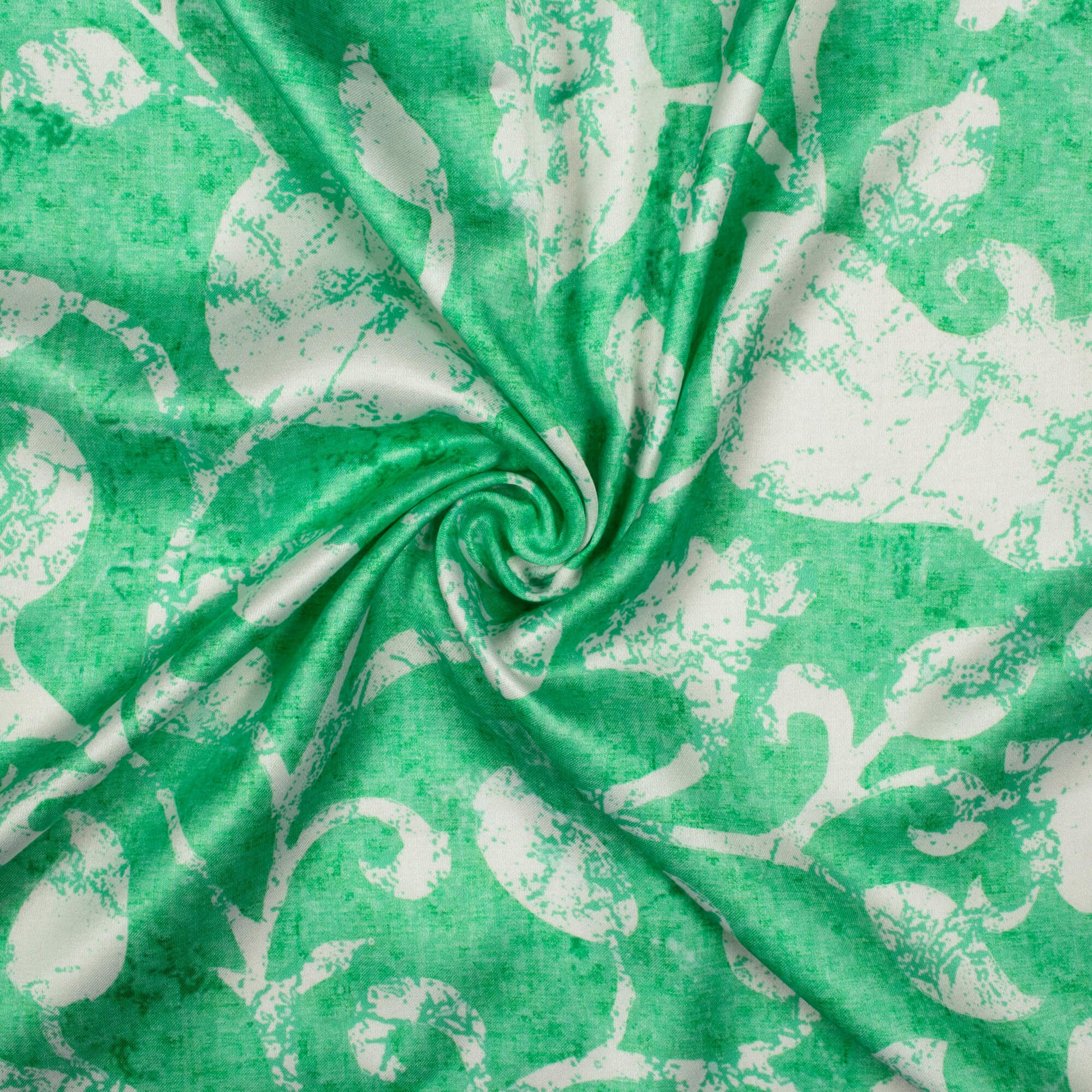 Mint Green And White Floral Pattern Digital Print Crepe Silk Fabric