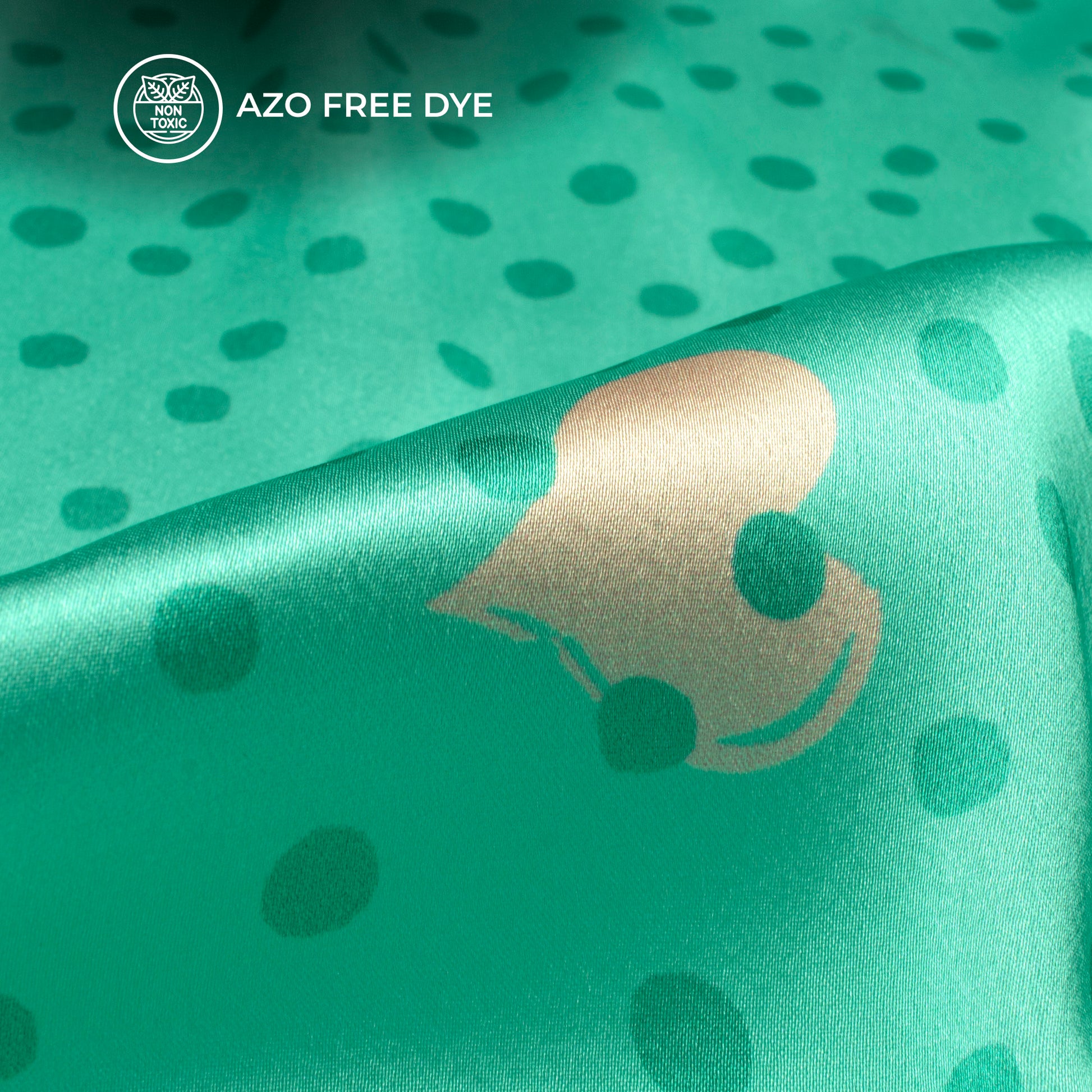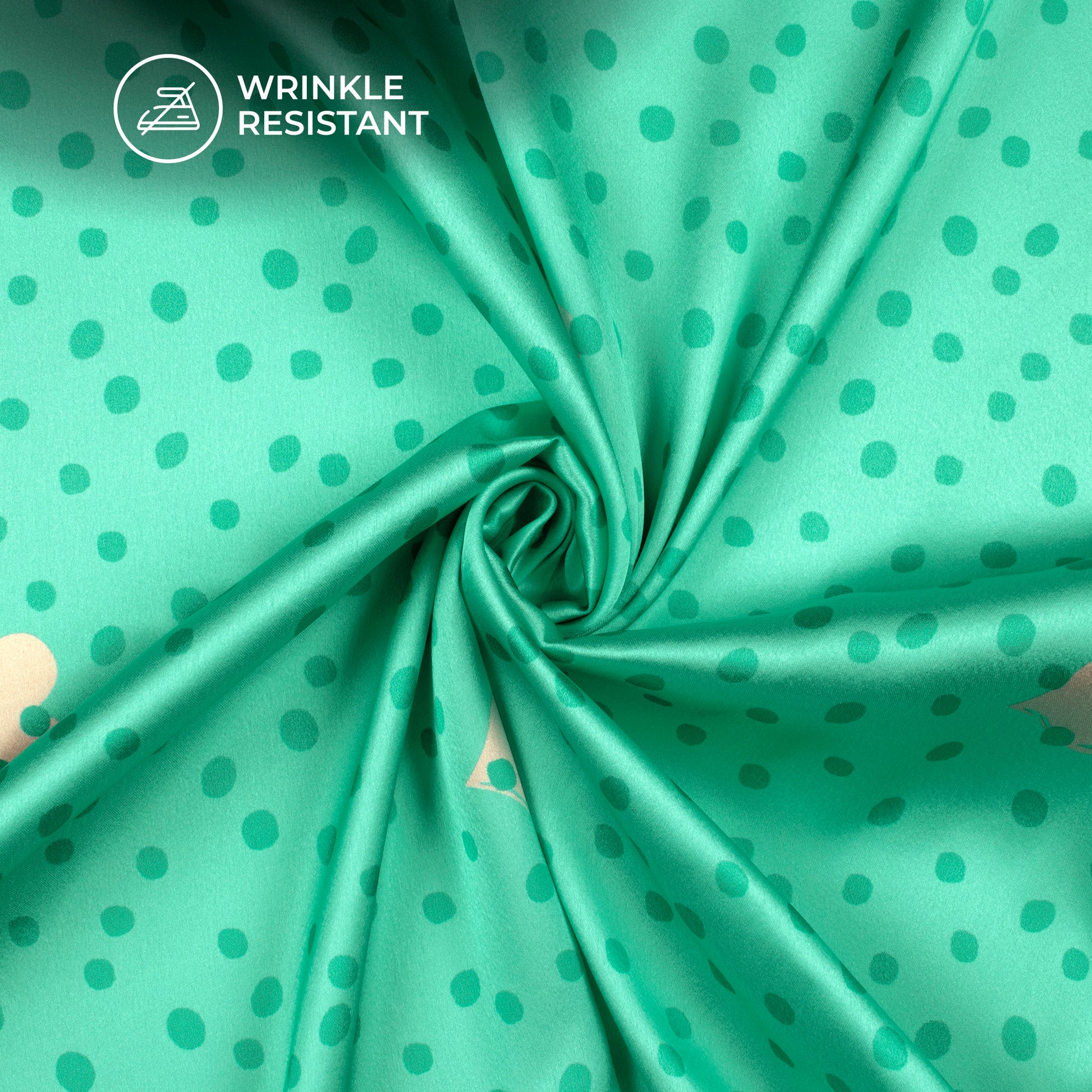 Mint Green Polka Dots Digital Print Japan Satin Fabric