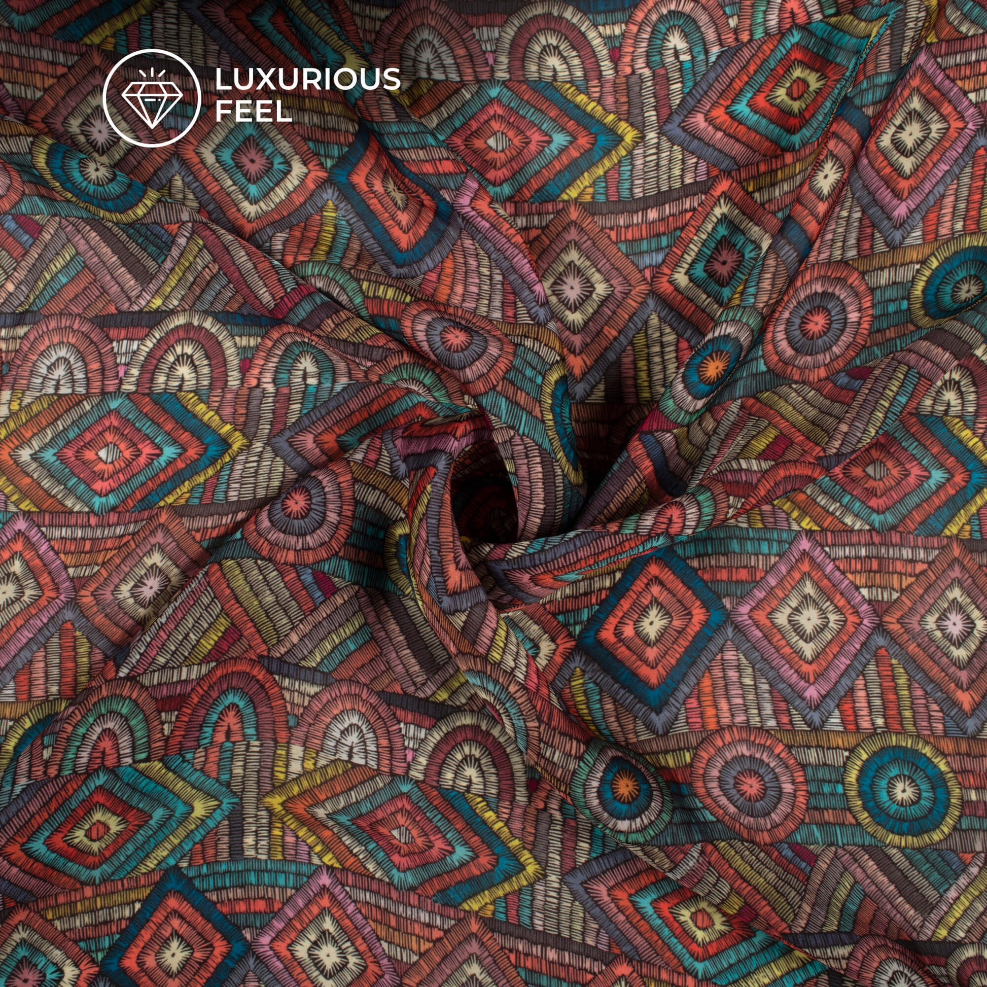 Multi-Color Abstract Digital Print Georgette Satin Fabric