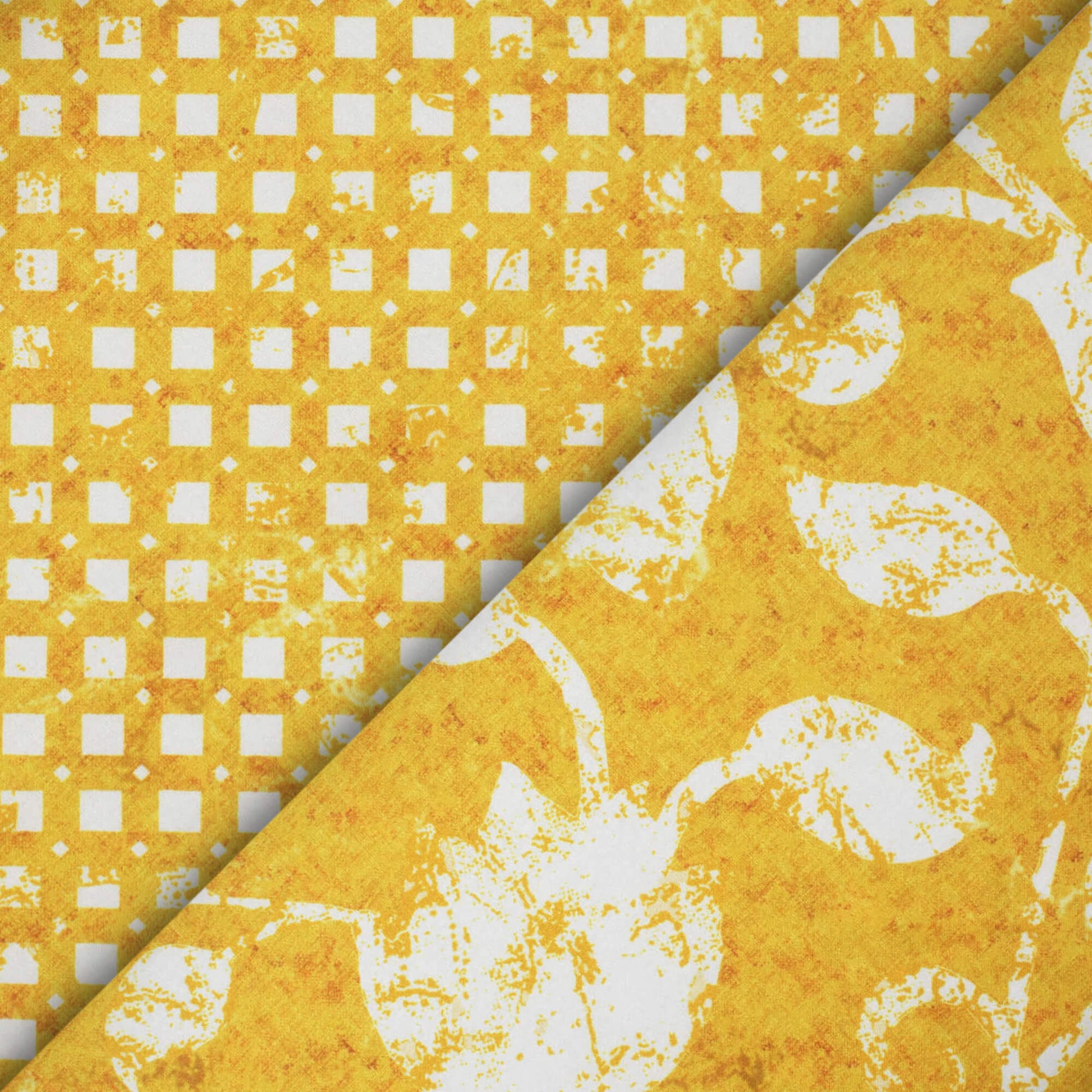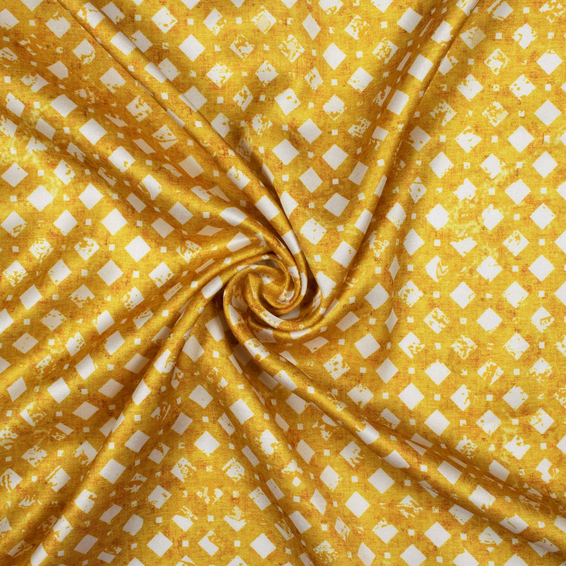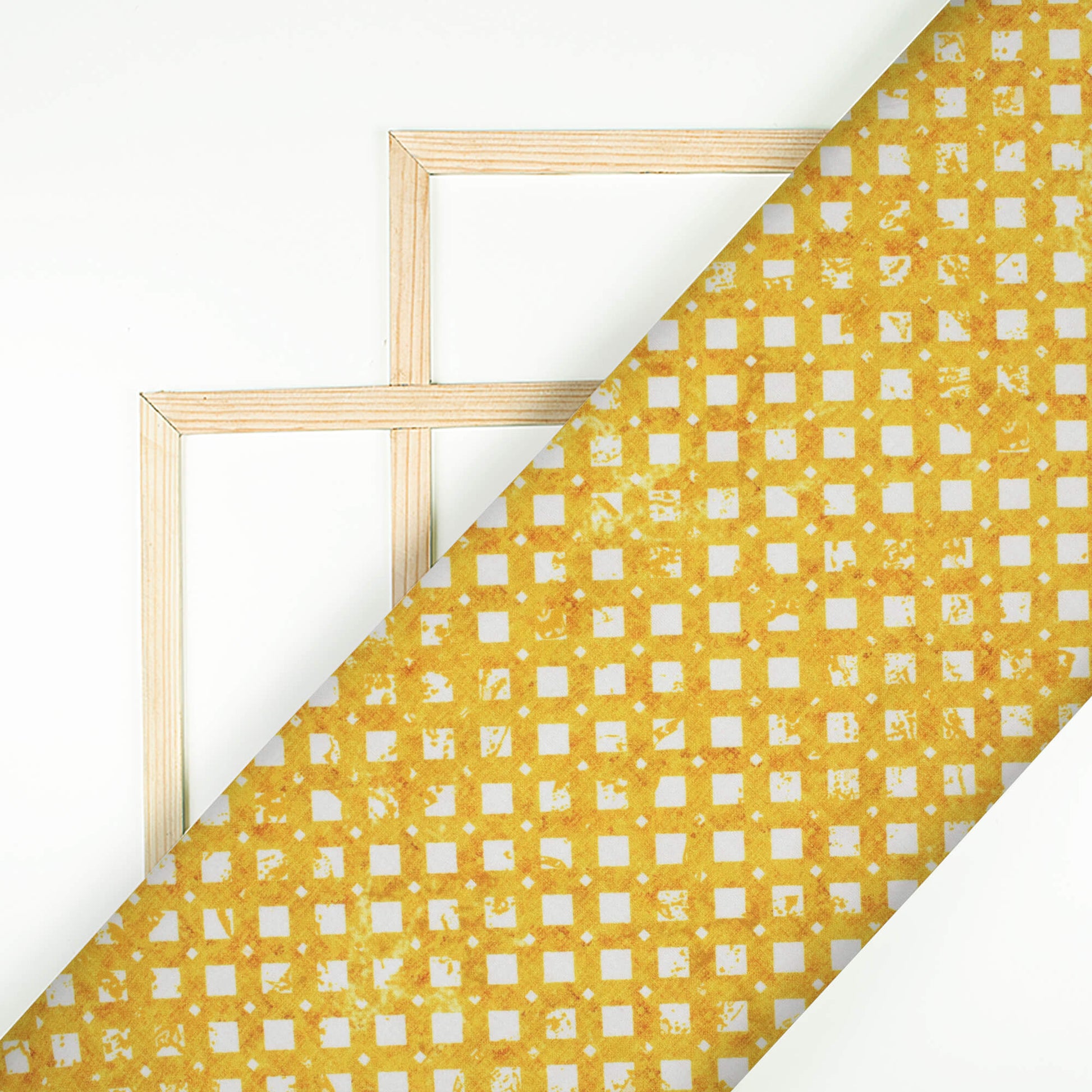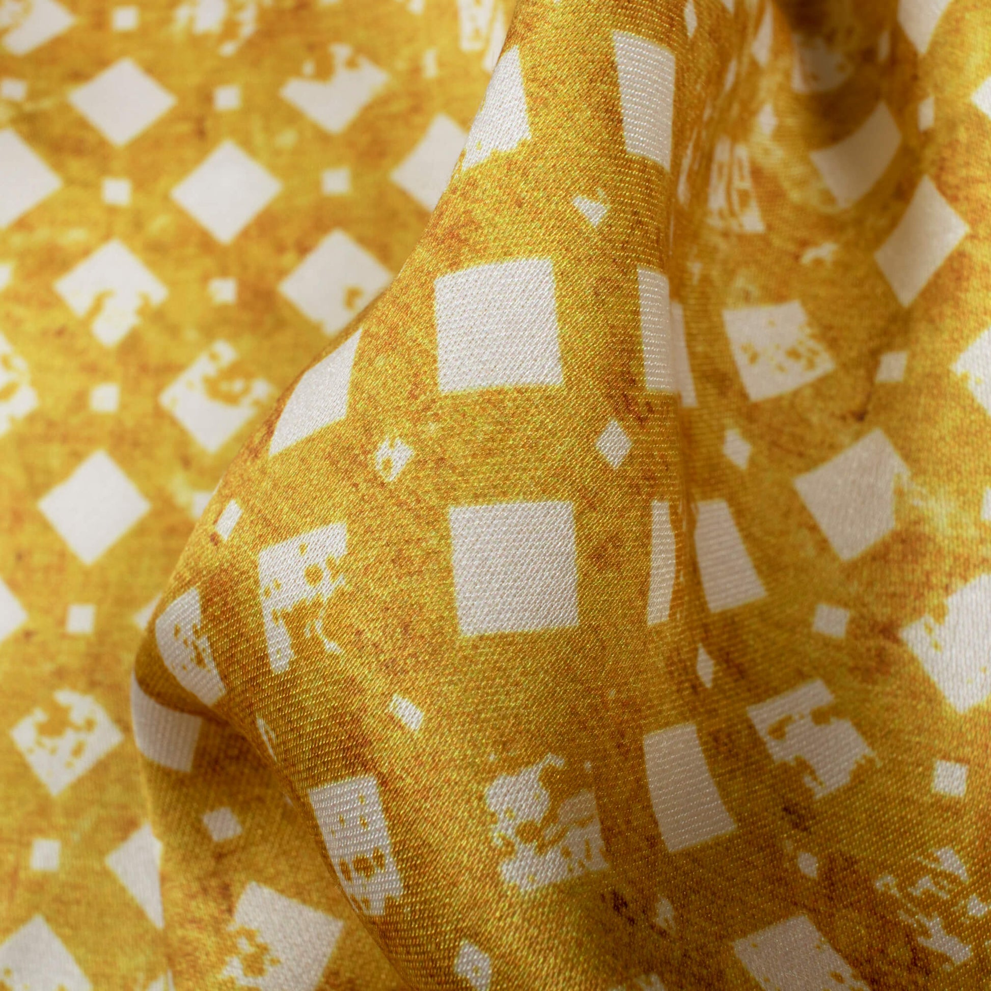Mustard Yellow And White Geometric Pattern Digital Print Crepe Silk Fabric