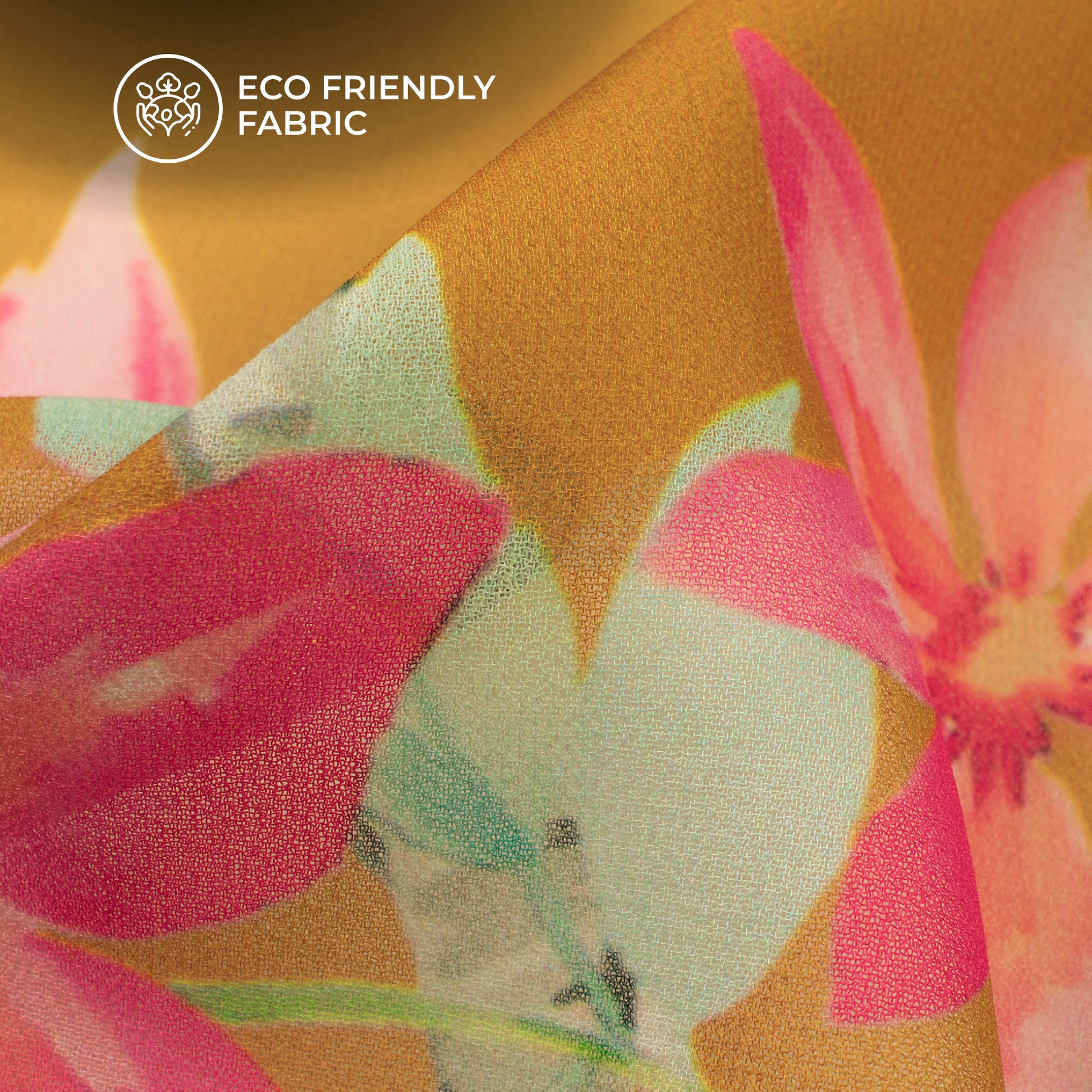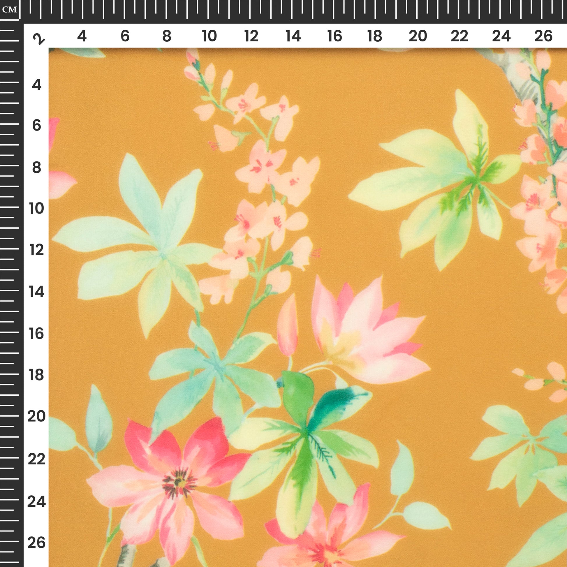 Mustard Yellow Floral Digital Print Georgette Fabric