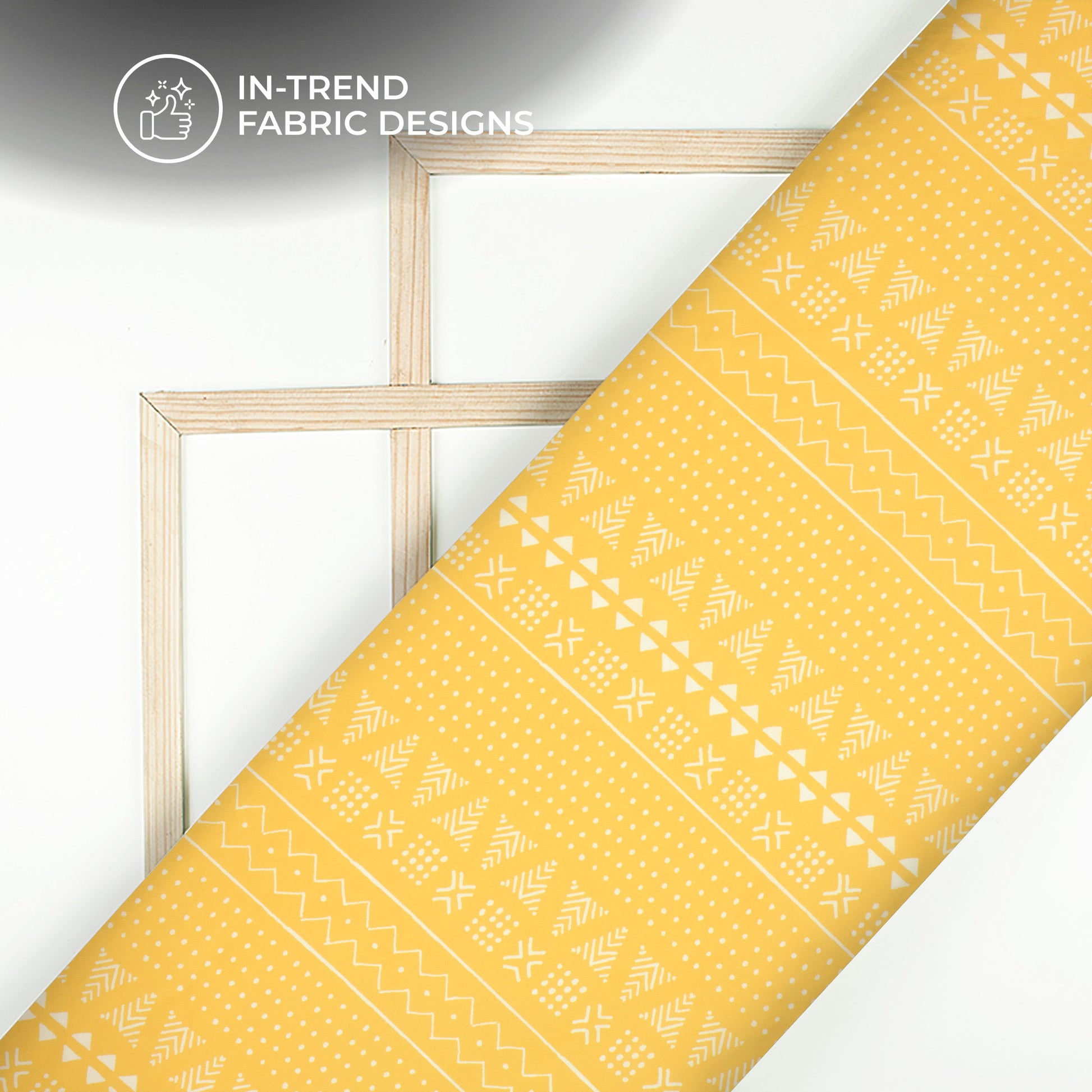 Mustard Yellow Traditional Digital Print BSY Crepe Fabric
