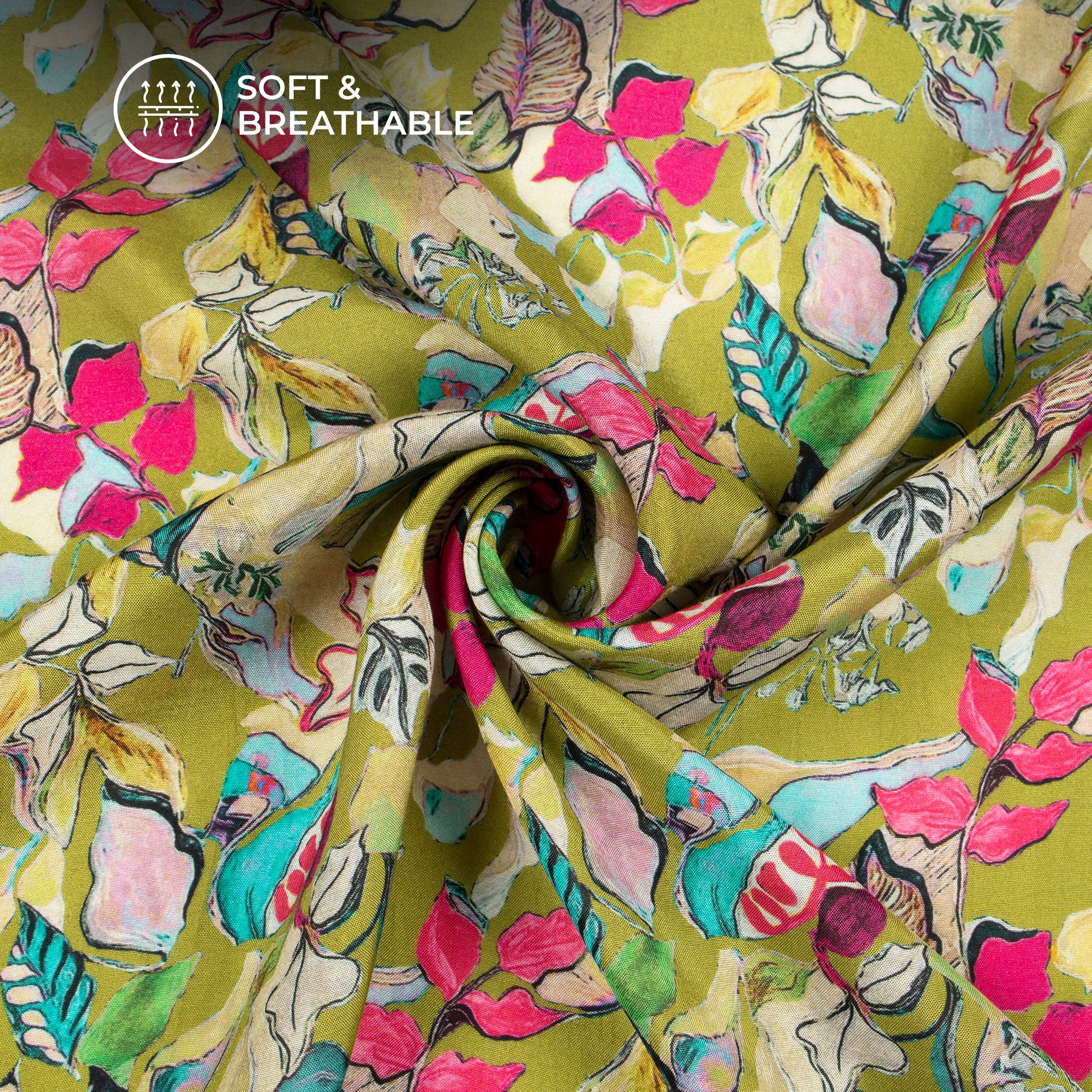 Natural's Whisper: Leaf Digital Print Viscose Muslin Fabric