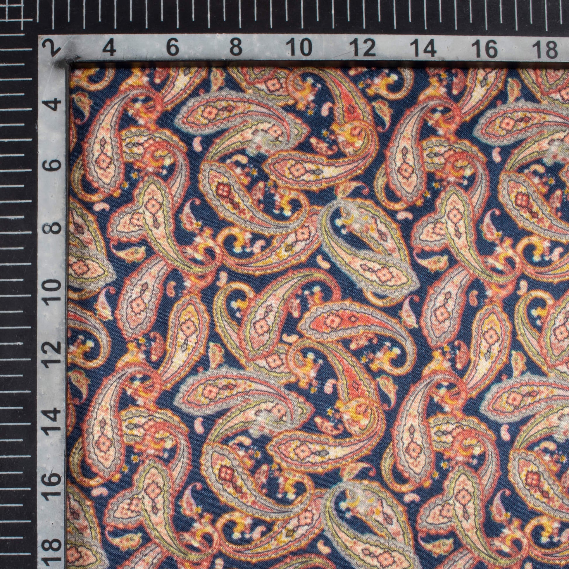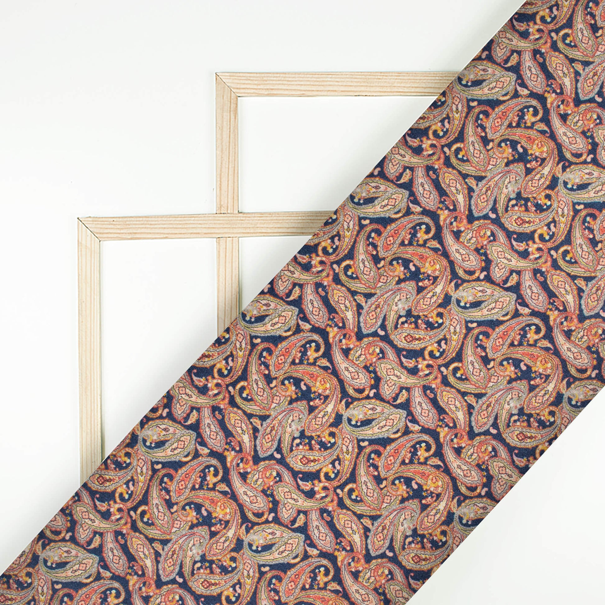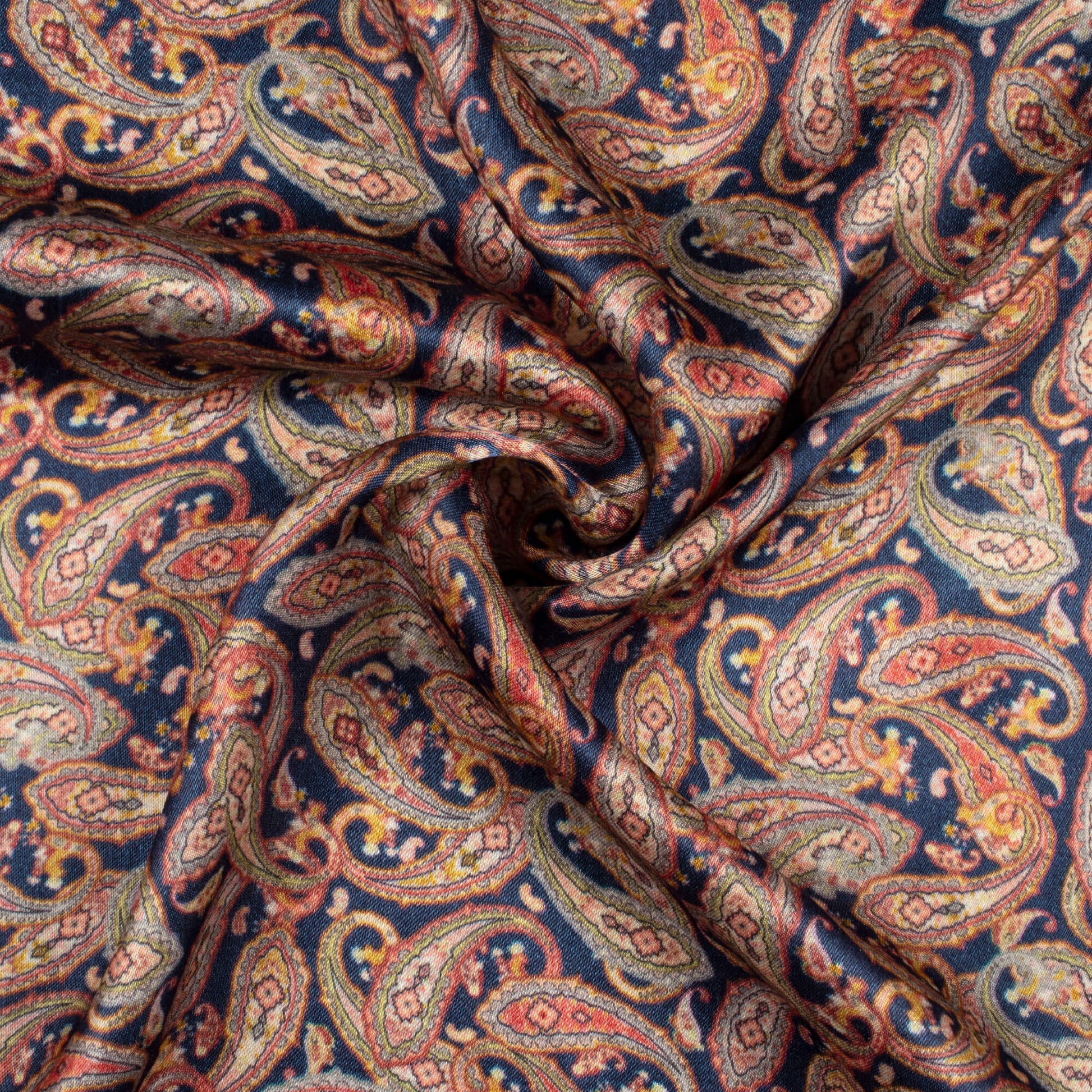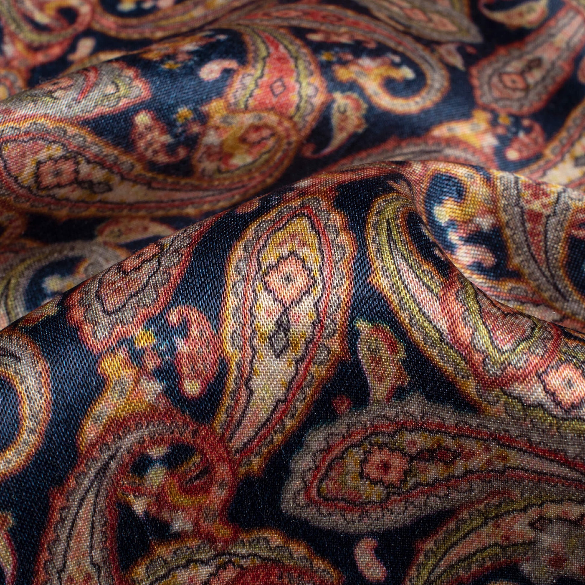 Navy Blue And Red Paisley Pattern Digital Print Viscose Gaji Silk Fabric