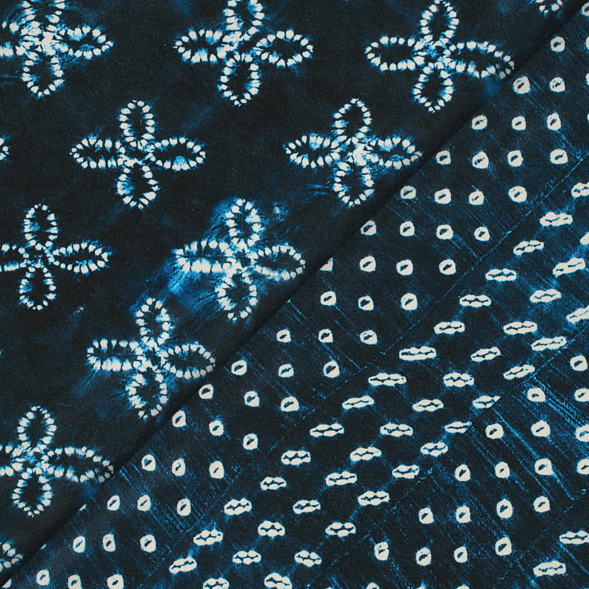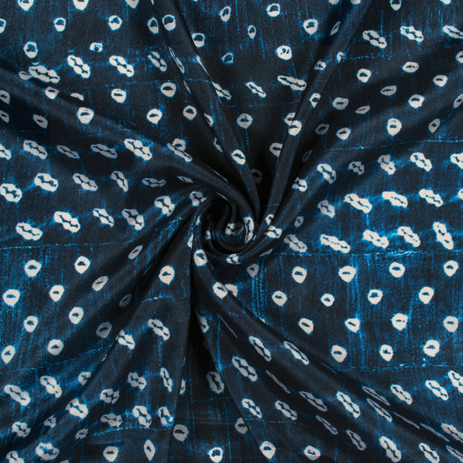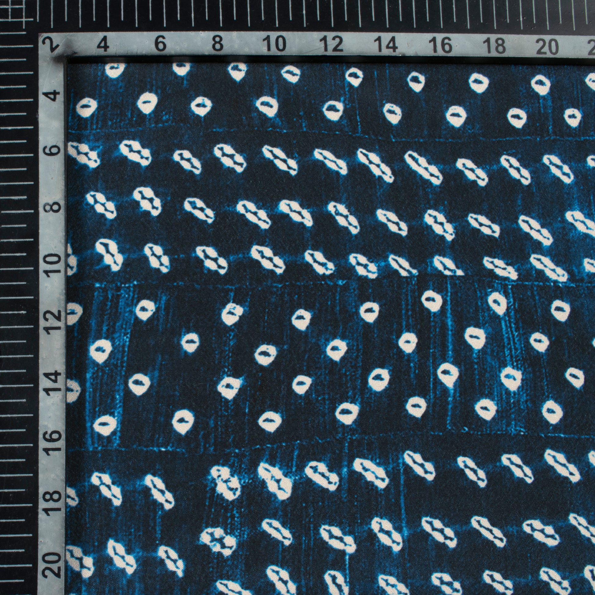 Navy Blue And White Bandhanii Pattern Digital Print Crepe Silk Fabric