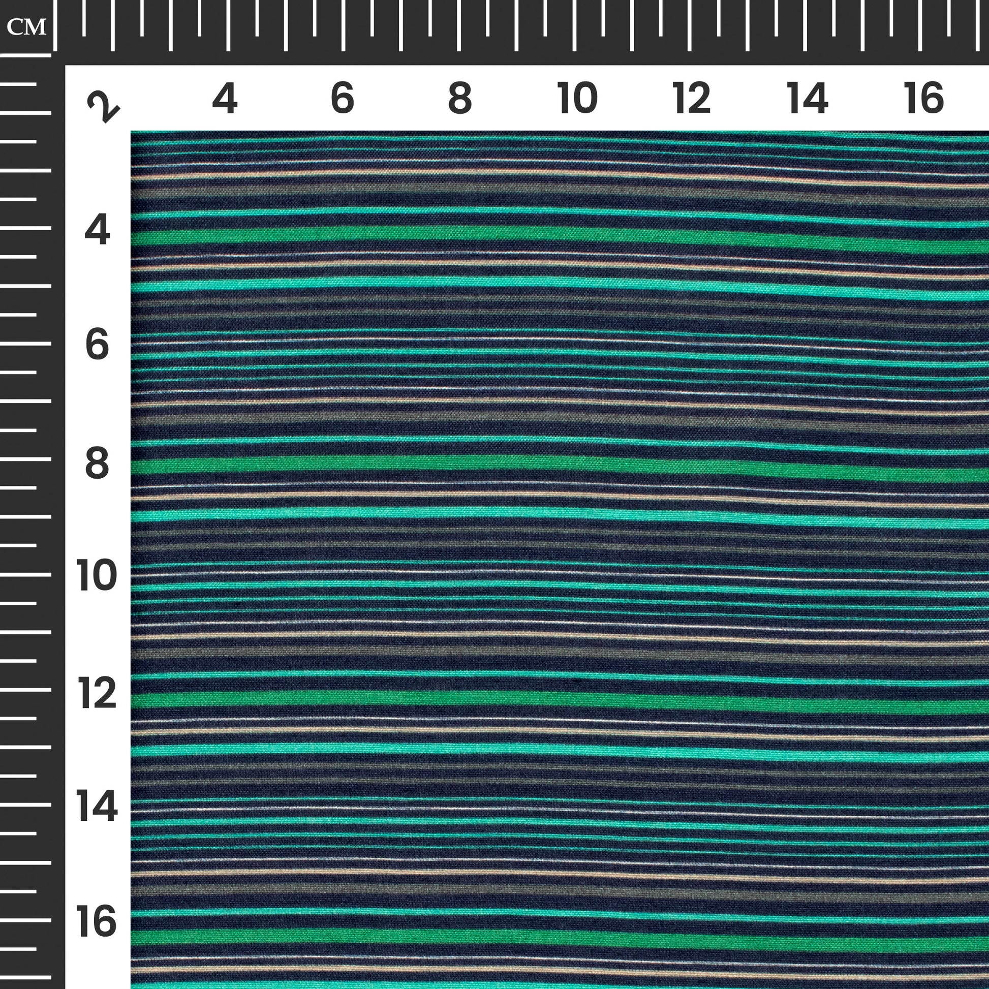 Navy Blue Stripes Digital Print Viscose Muslin Fabric