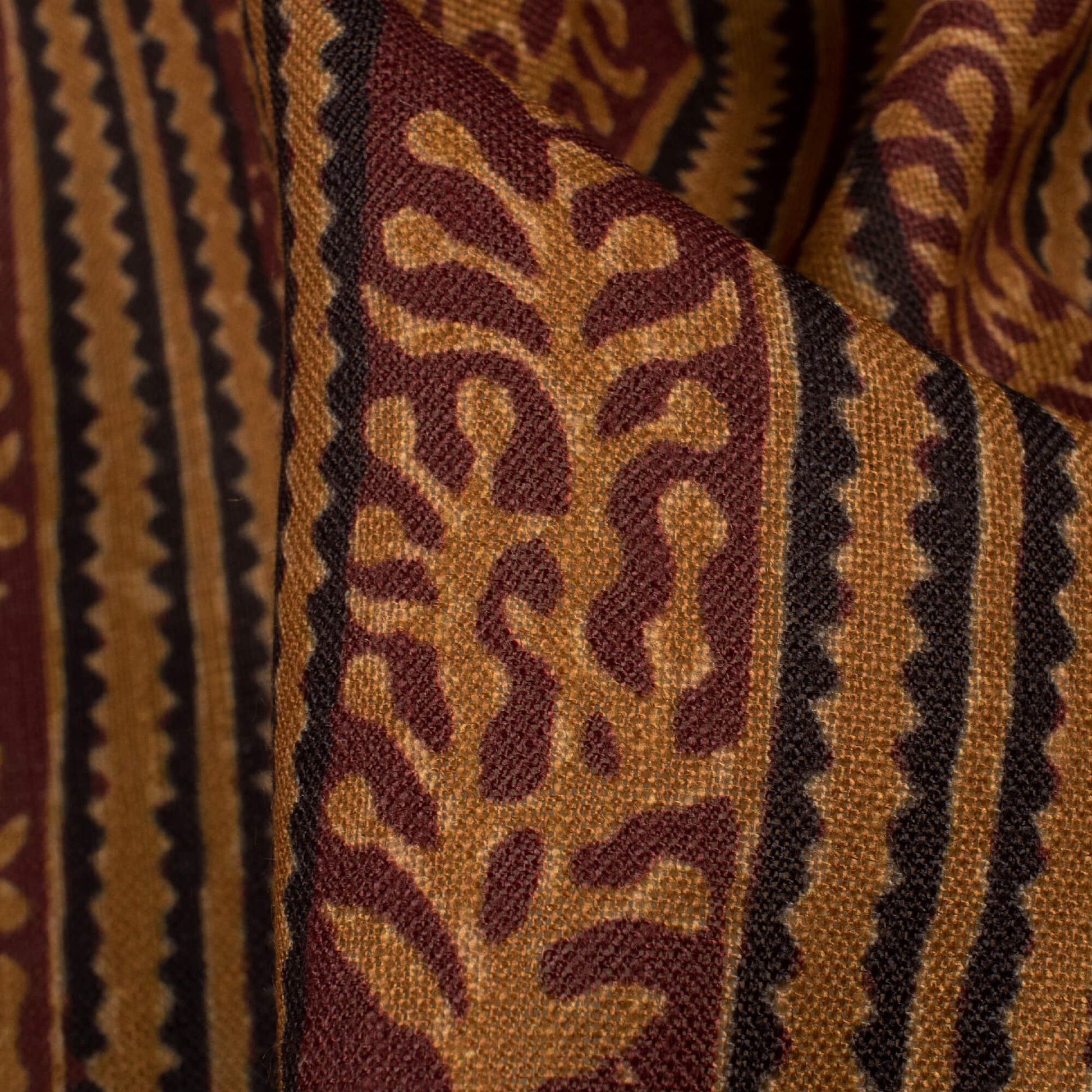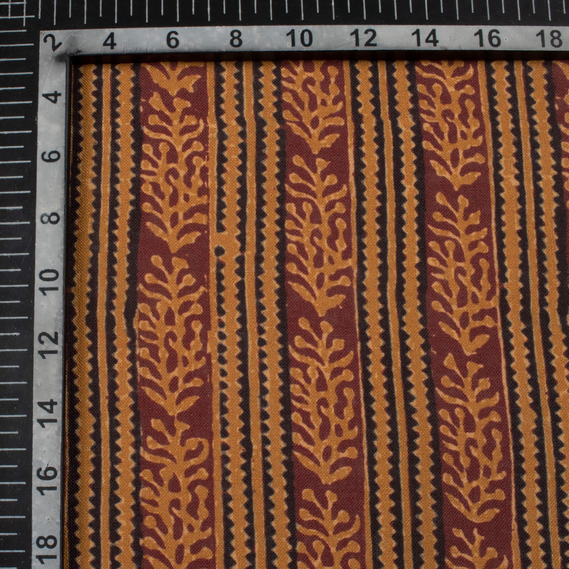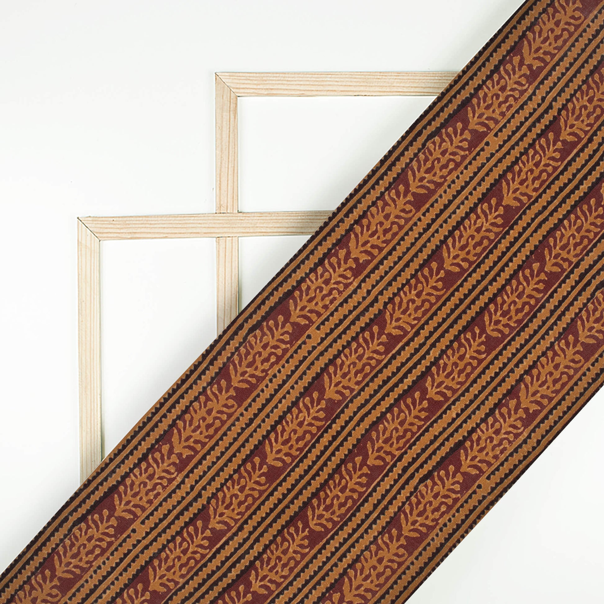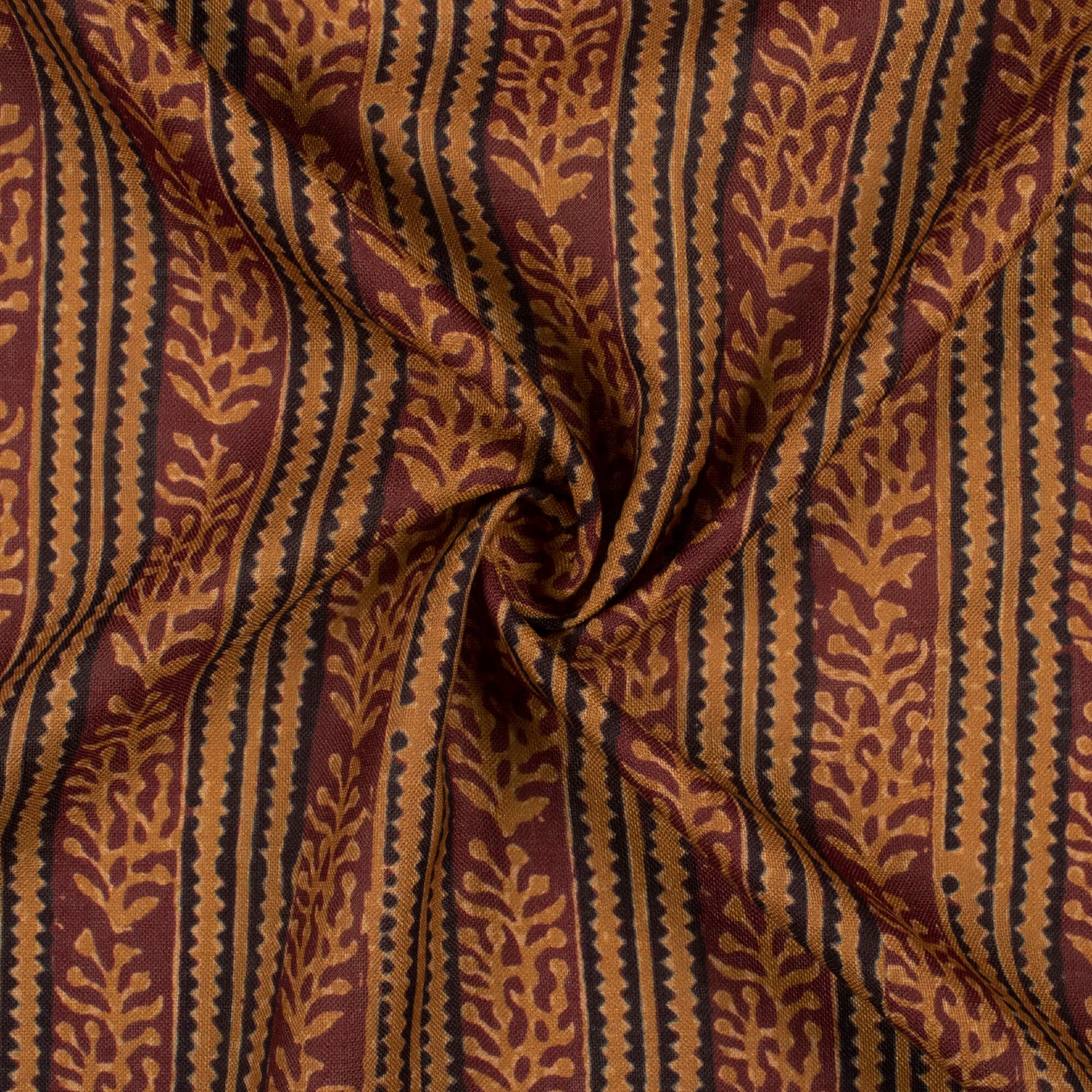 Ochre Yellow And Pecan Brown Stripes Pattern Digital Print Linen Textured Fabric (Width 56 Inches)