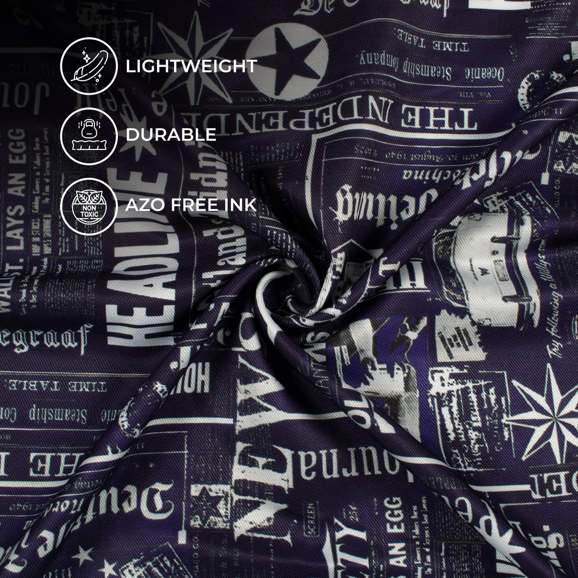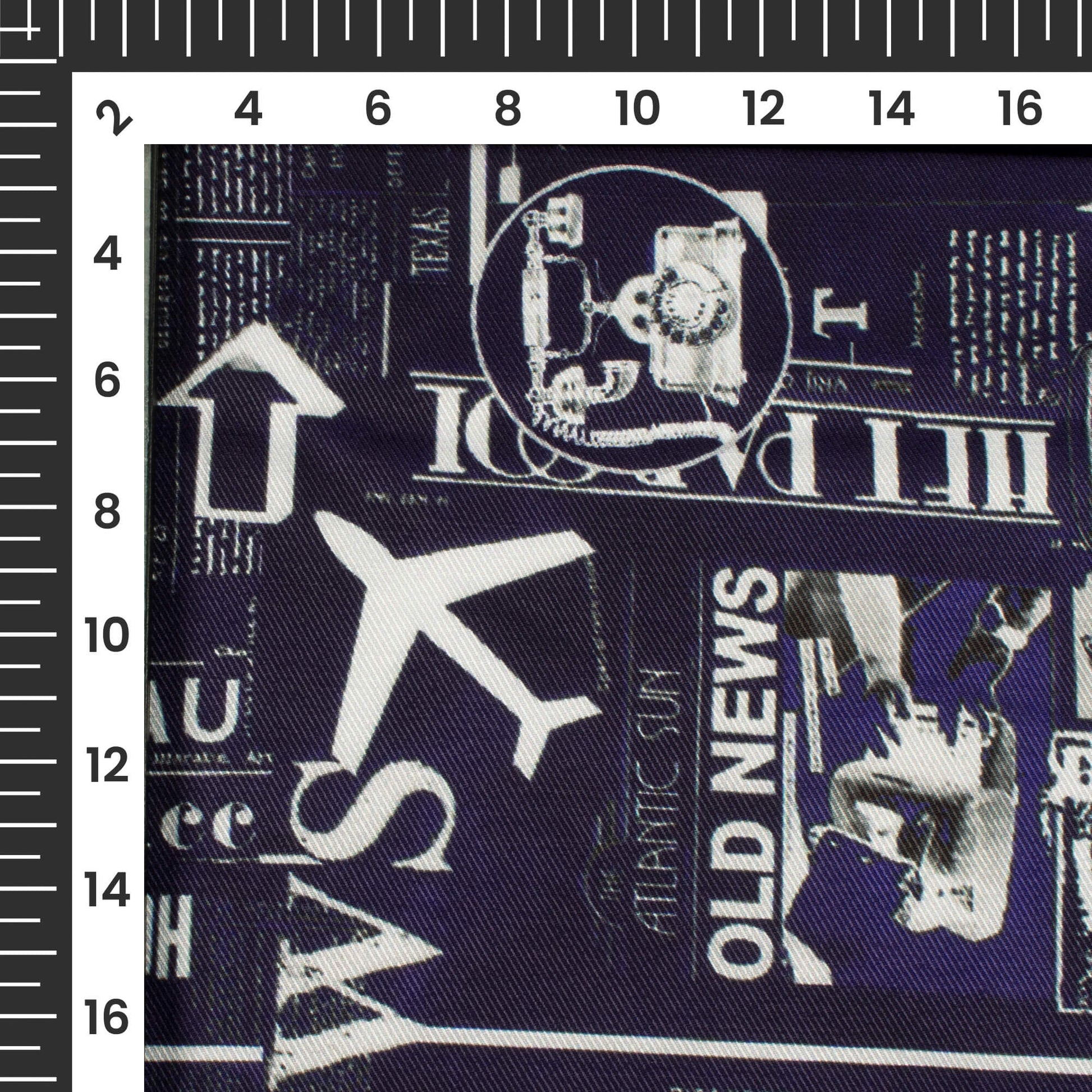 Oxford Blue And Off White Quirky Pattern Digital Print Twill Fabric (Width 56 Inches)