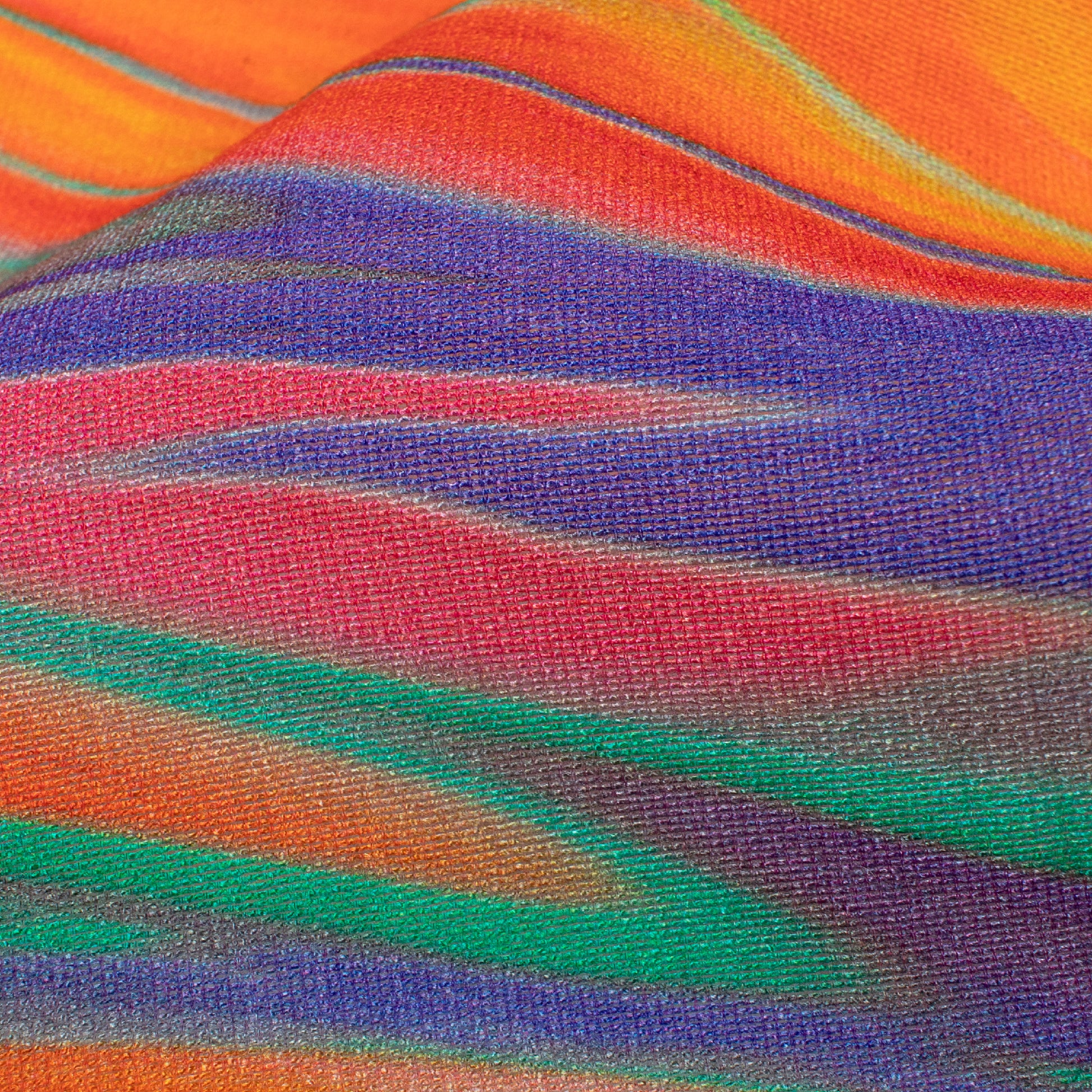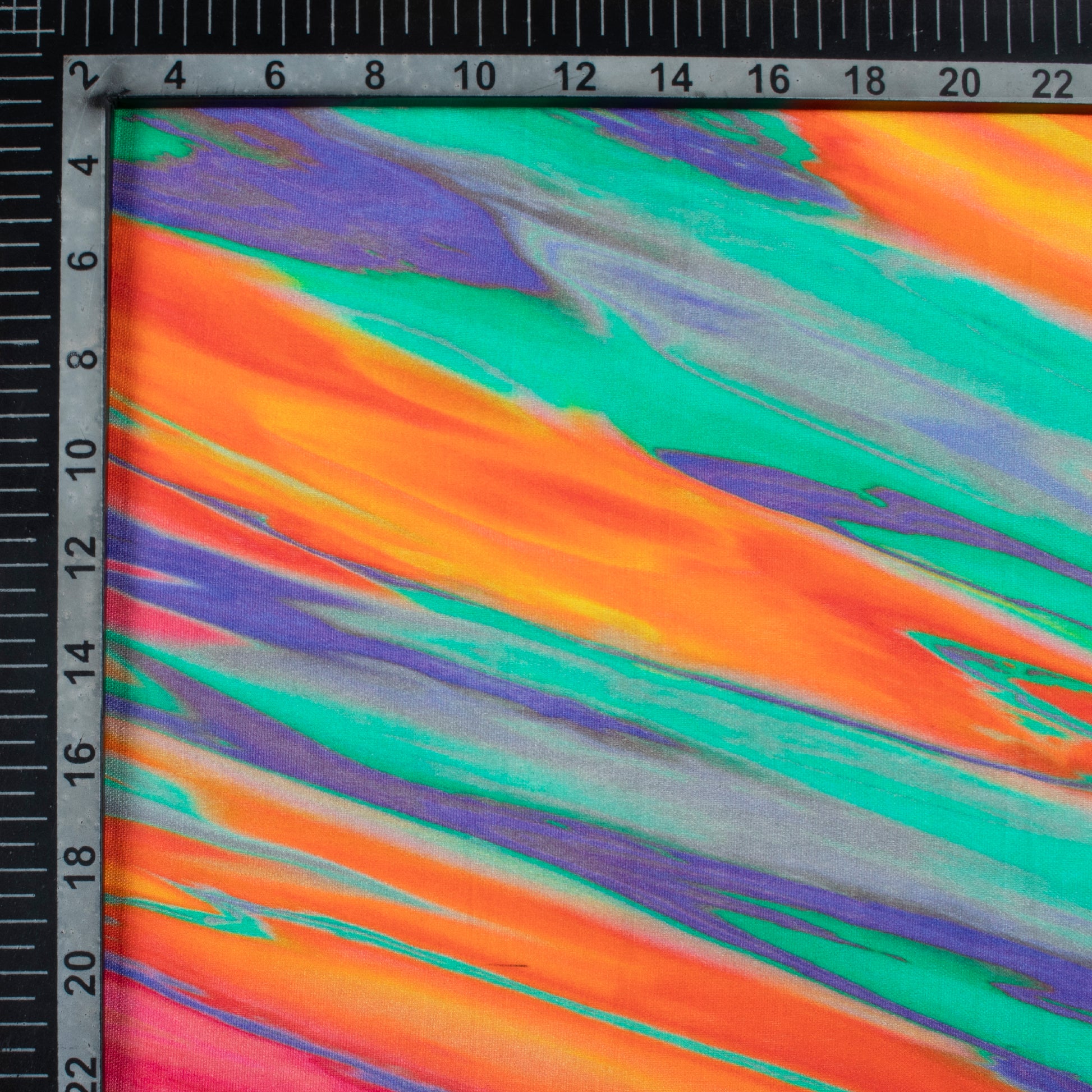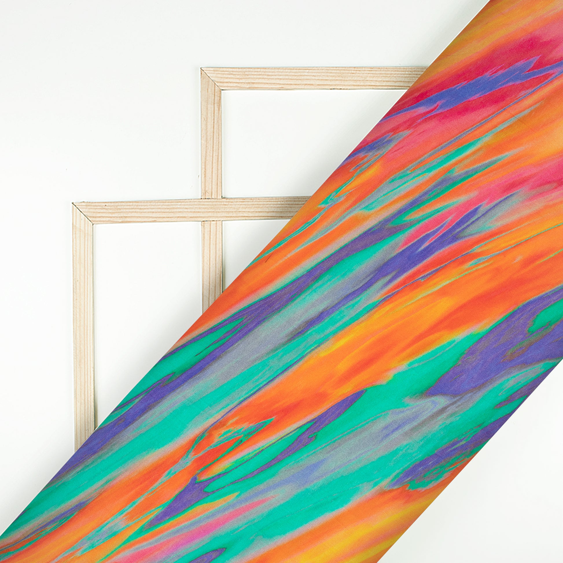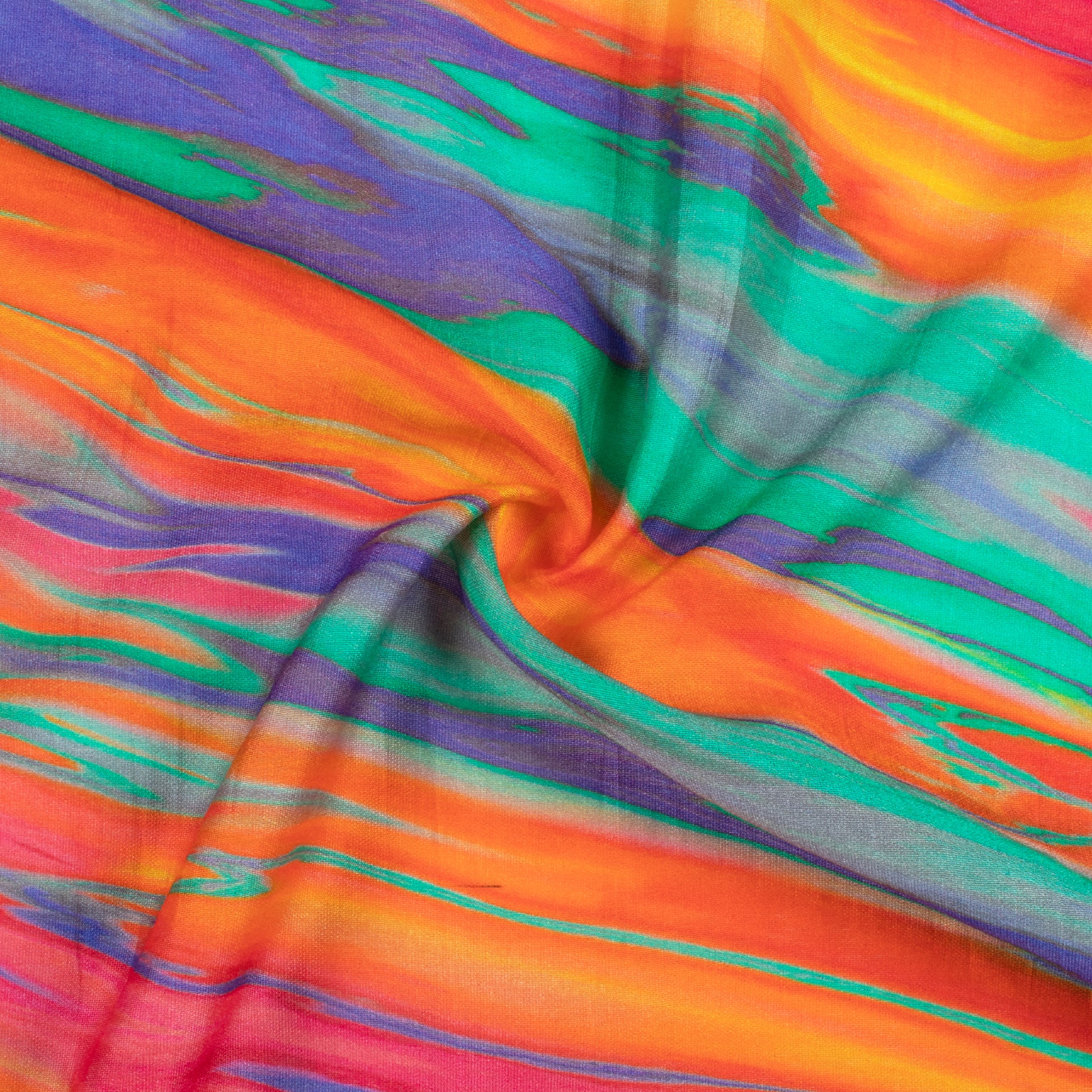 Parakeet Green And Orange Abstract Pattern Digital Print Viscose Chanderi Fabric