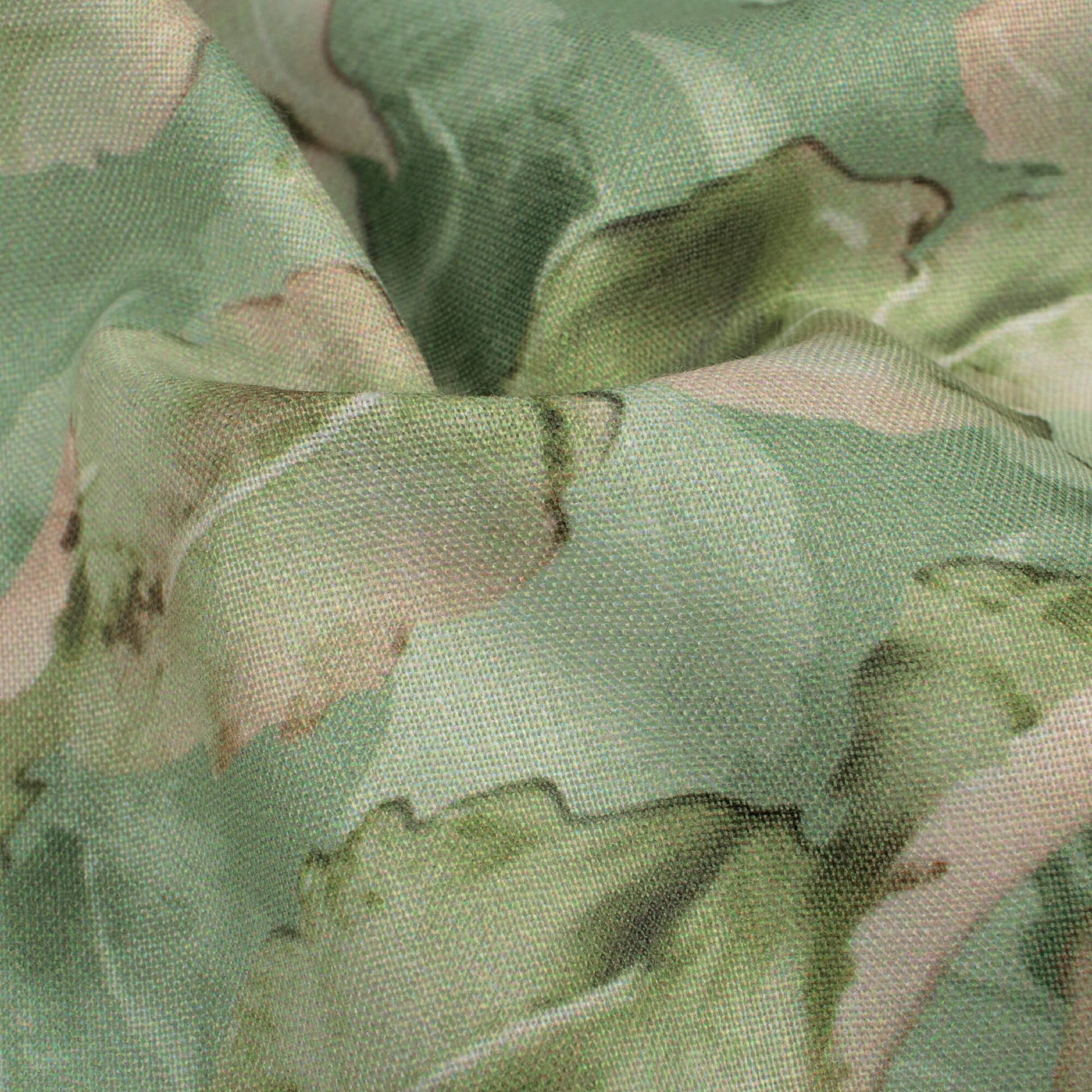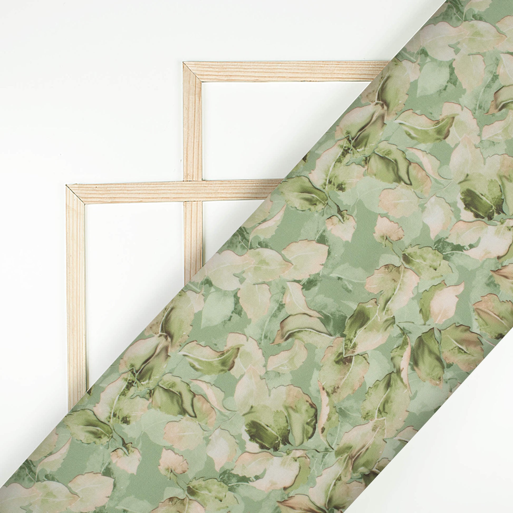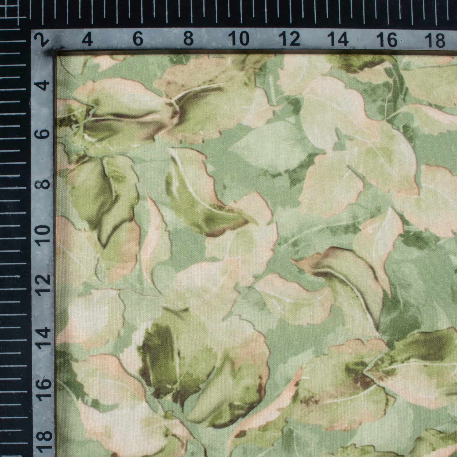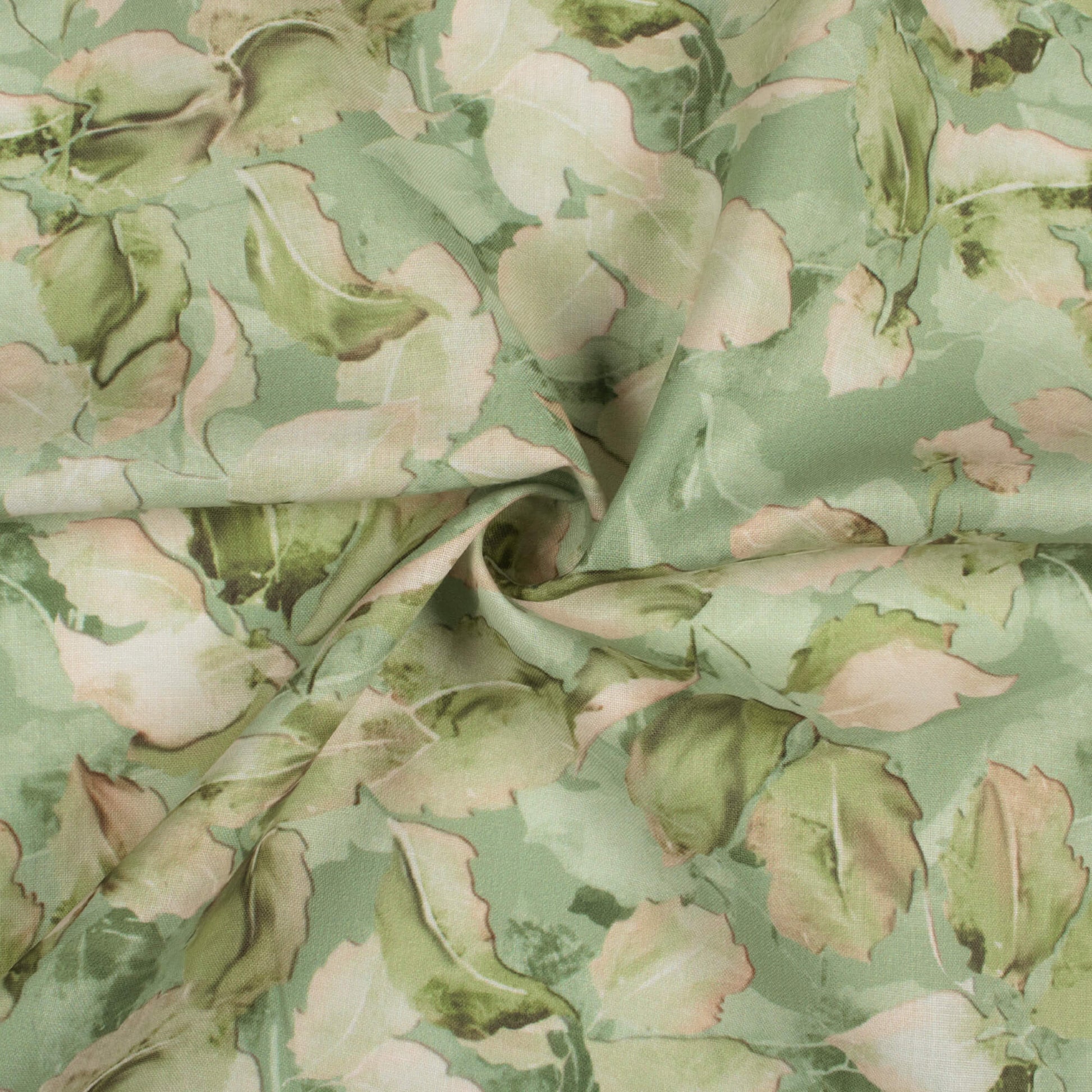 Pastel Green And Salmon Peach Leaf Pattern Digital Print Poly Cambric Fabric
