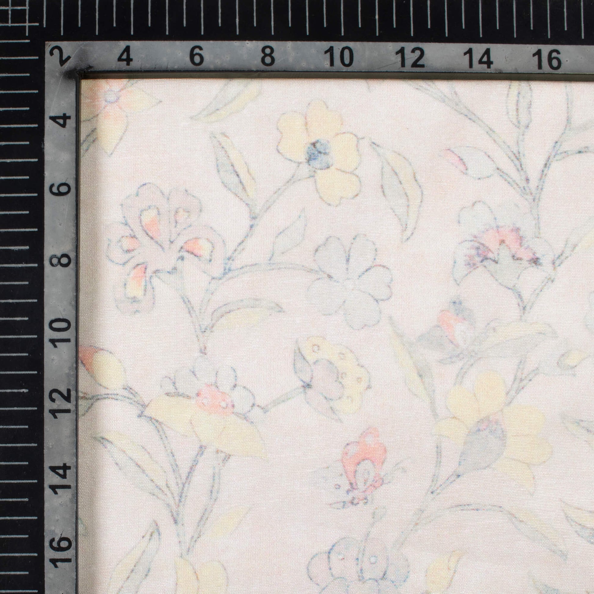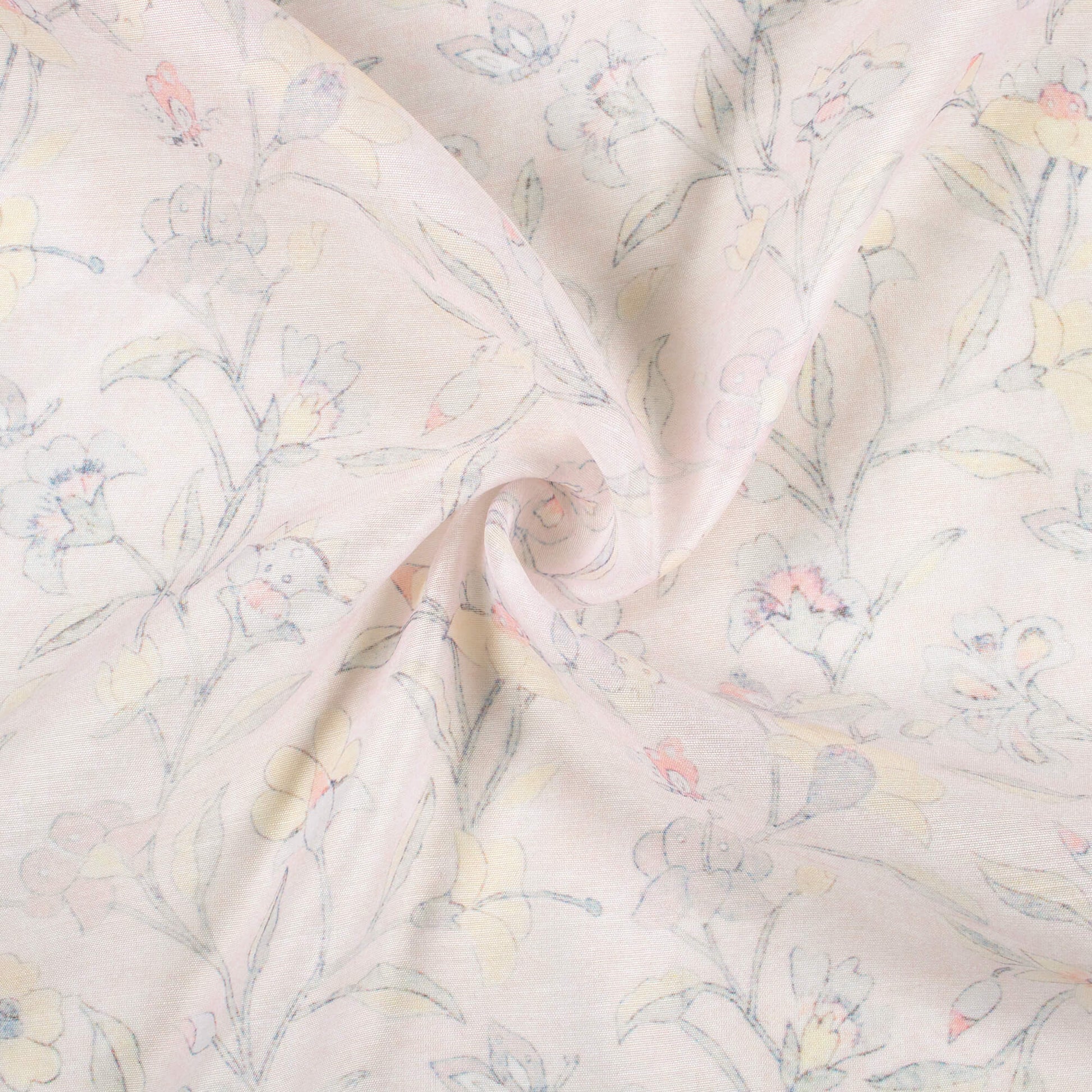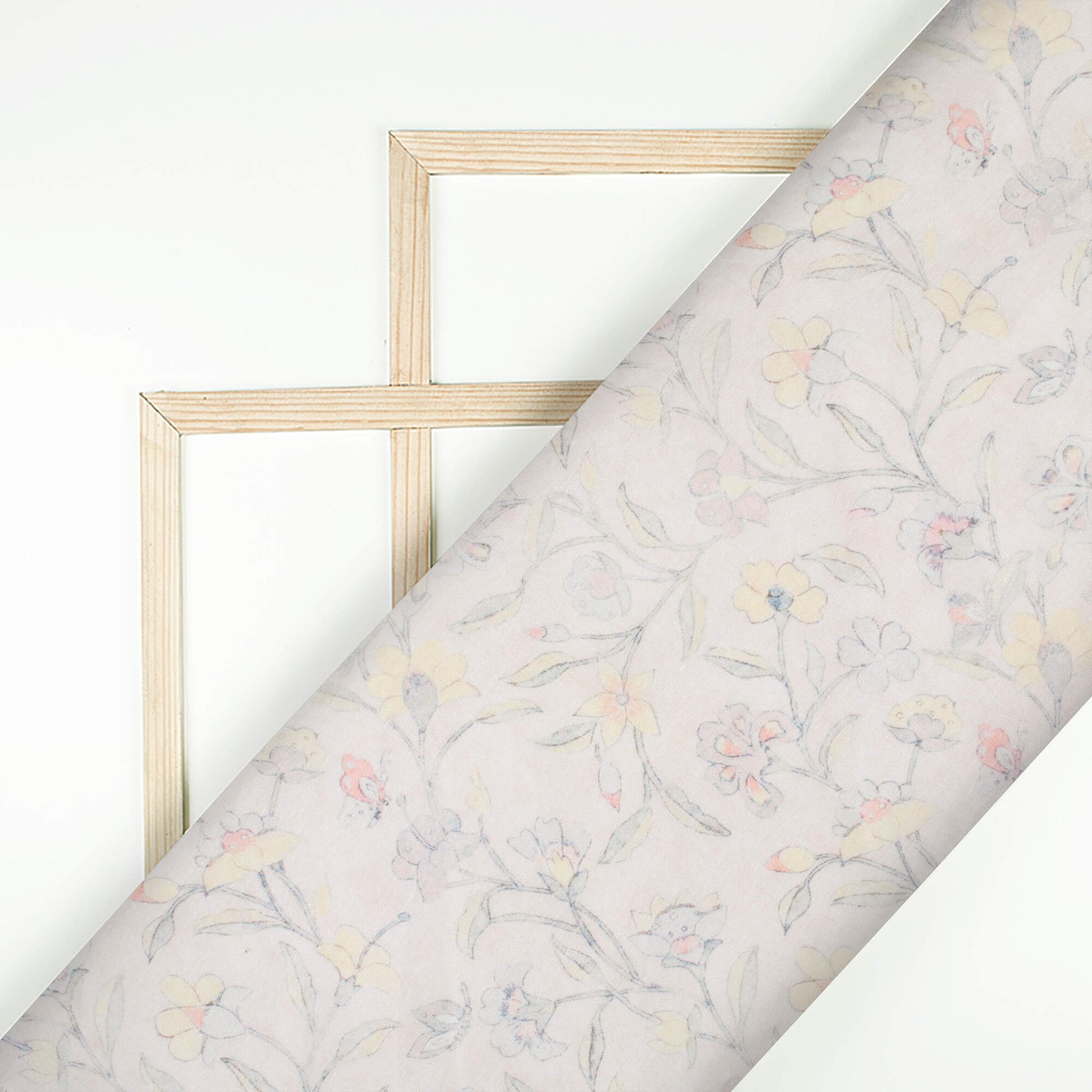 Pastel Peach And Pale Grey Floral Pattern Digital Print Chanderi Fabric