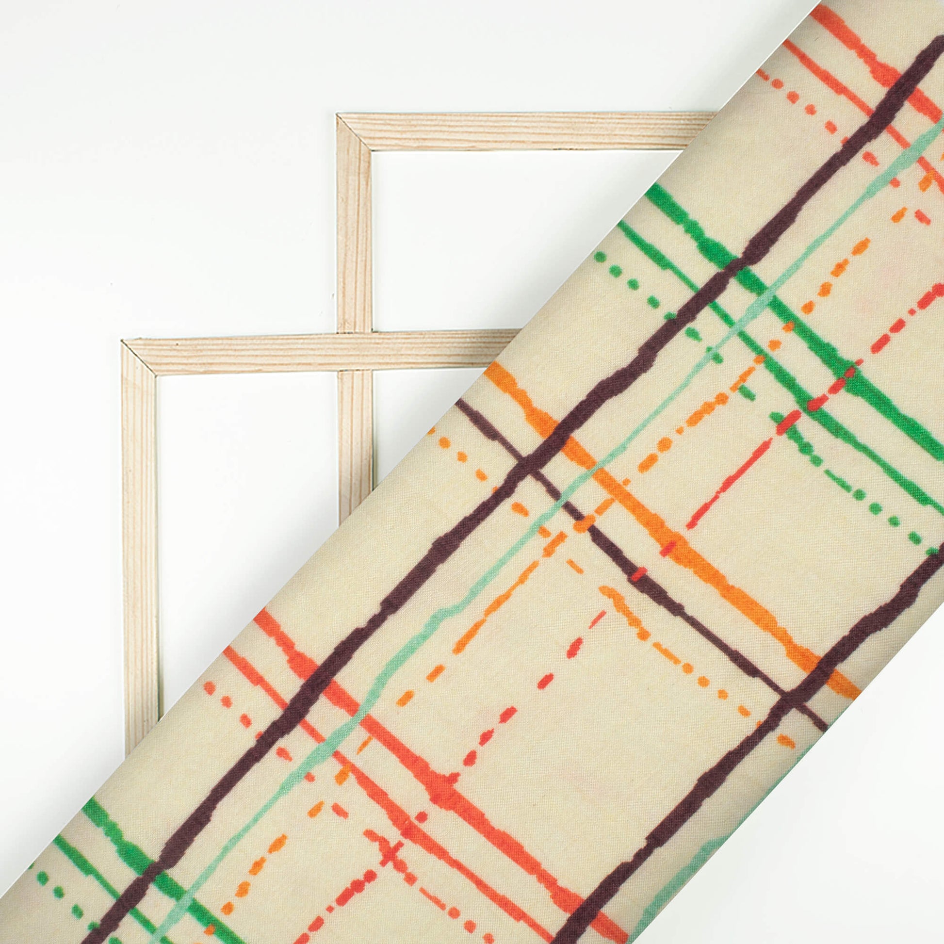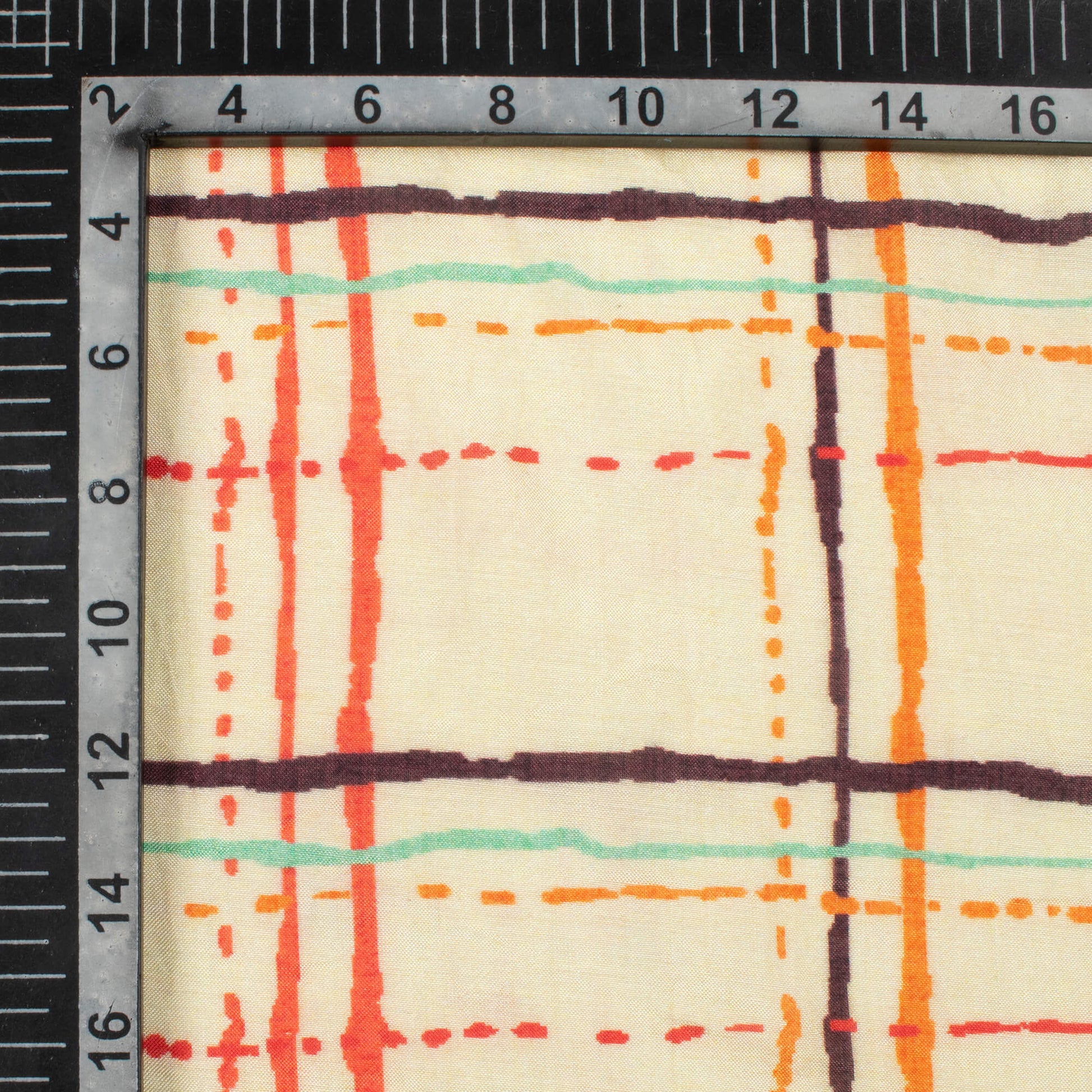 Pastel Yellow And Forest Green Checks Pattern Digital Print Viscose Muslin Fabric