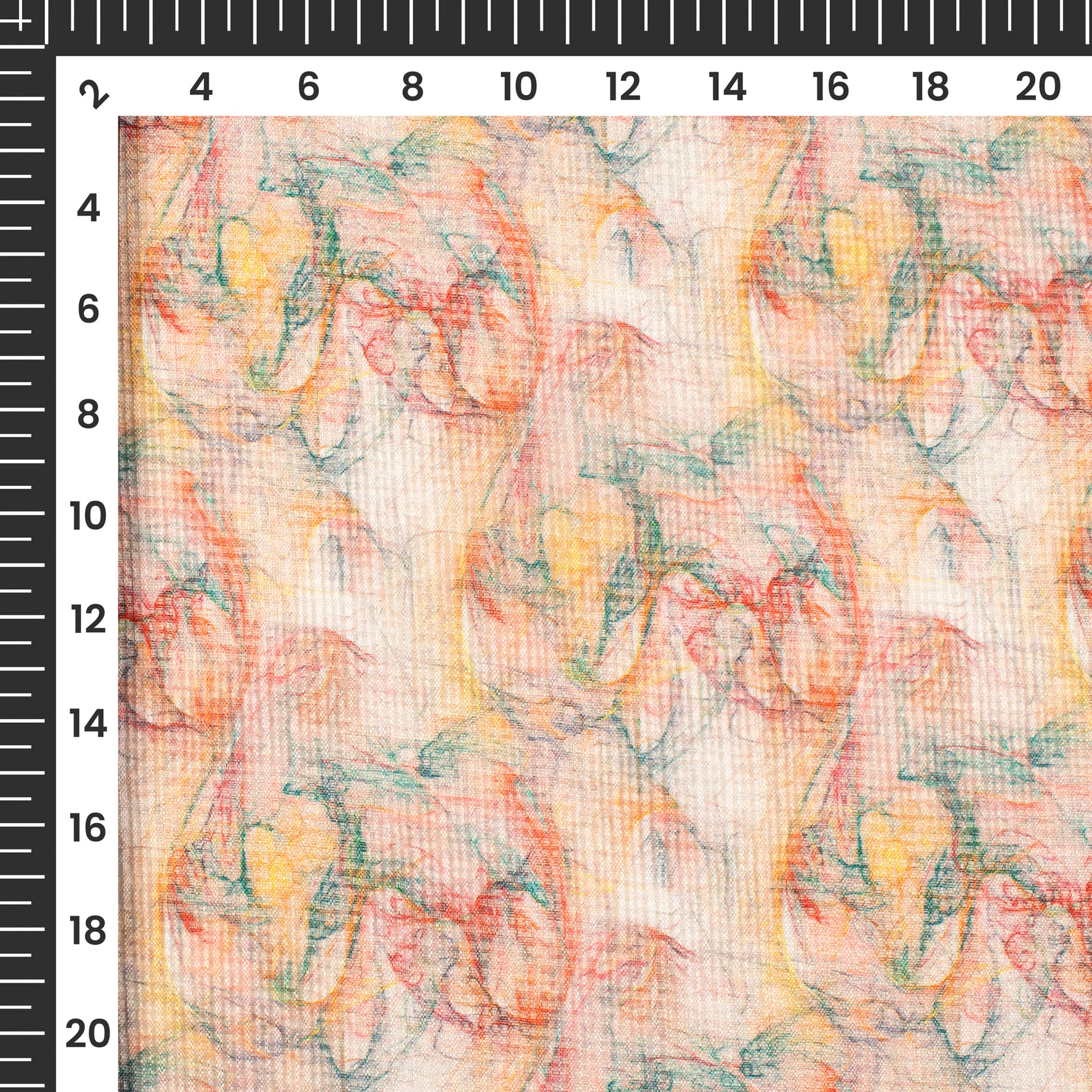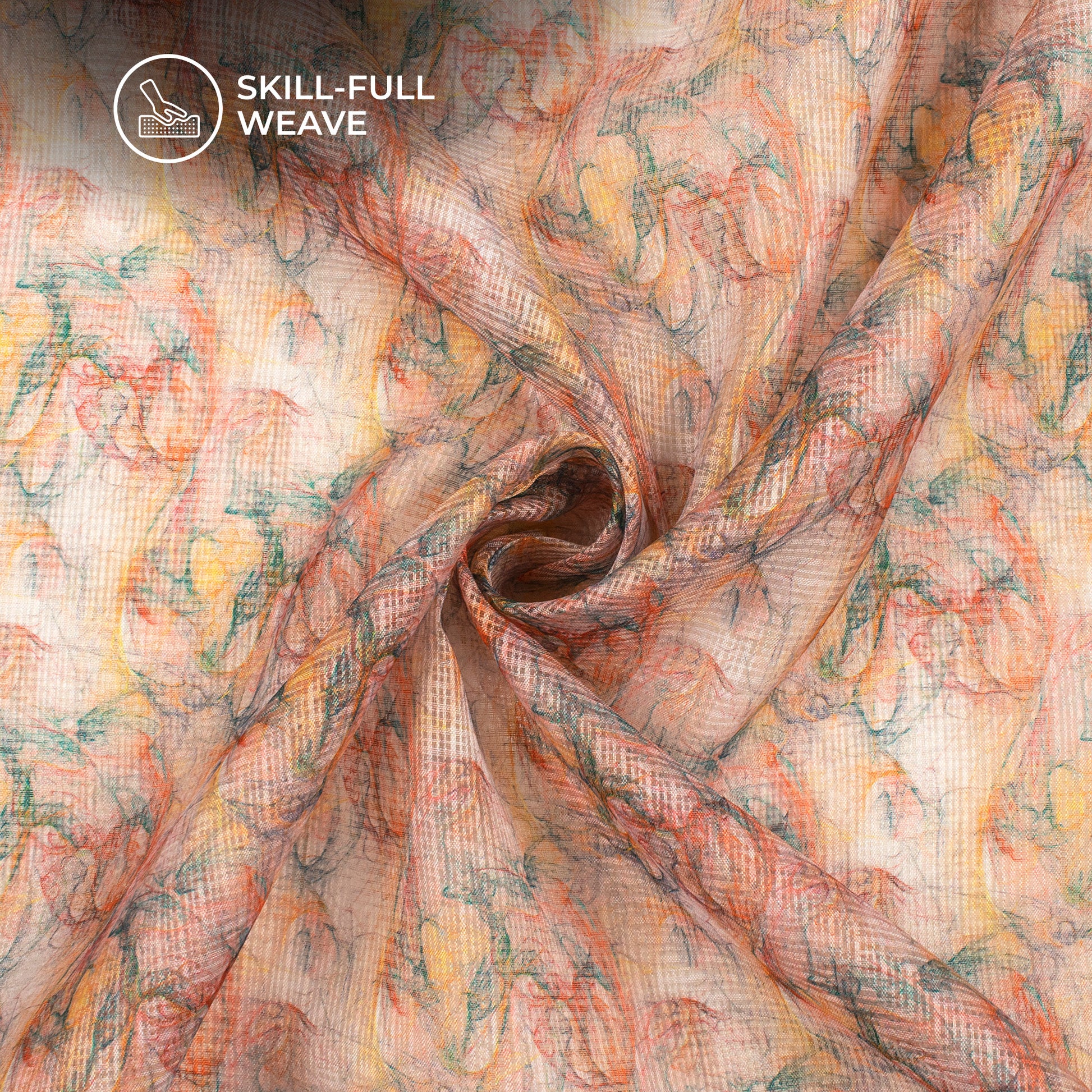 Peach Floral Digital Print Kota Doria Fabric