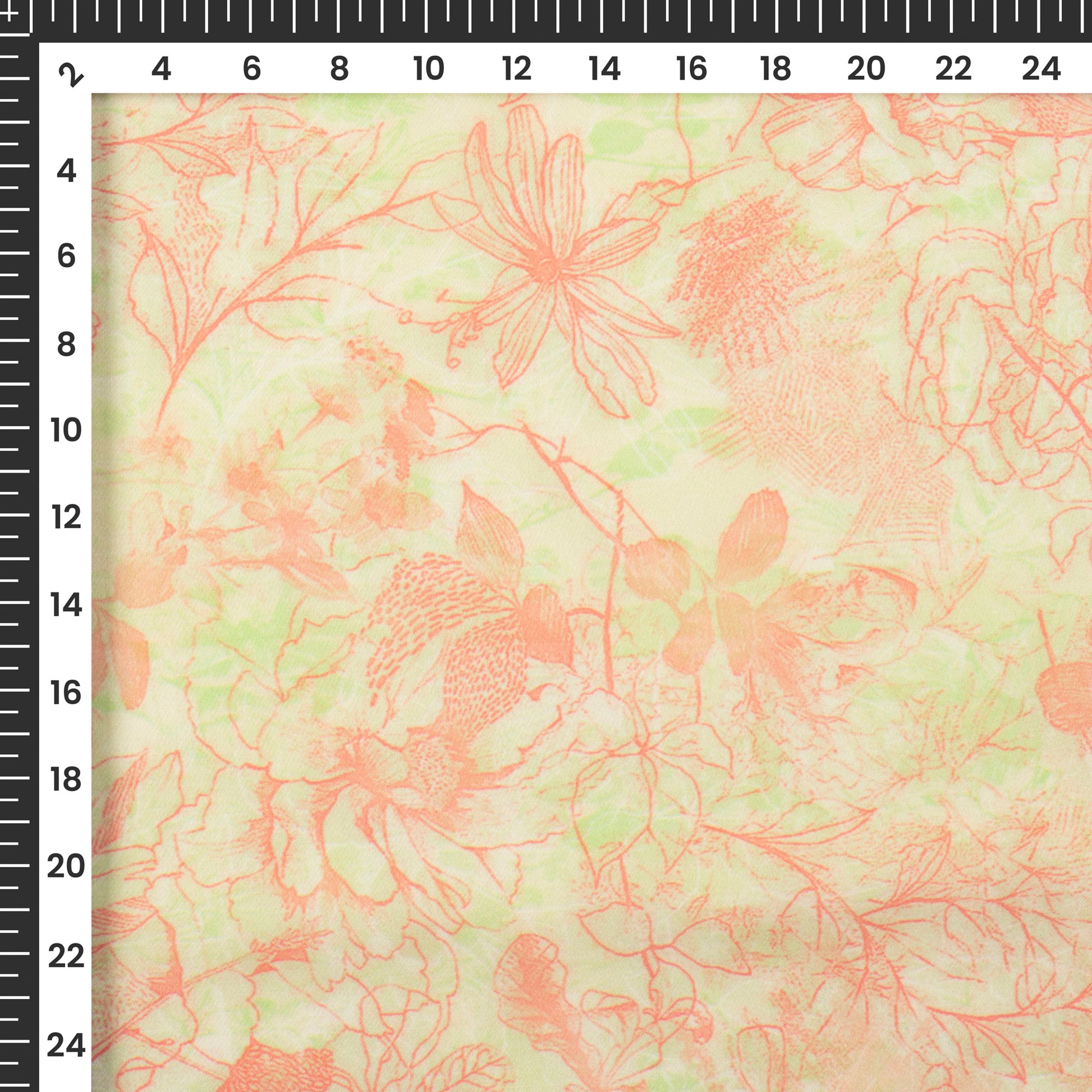 Peach Pink Floral Digital Print Modal Satin Fabric