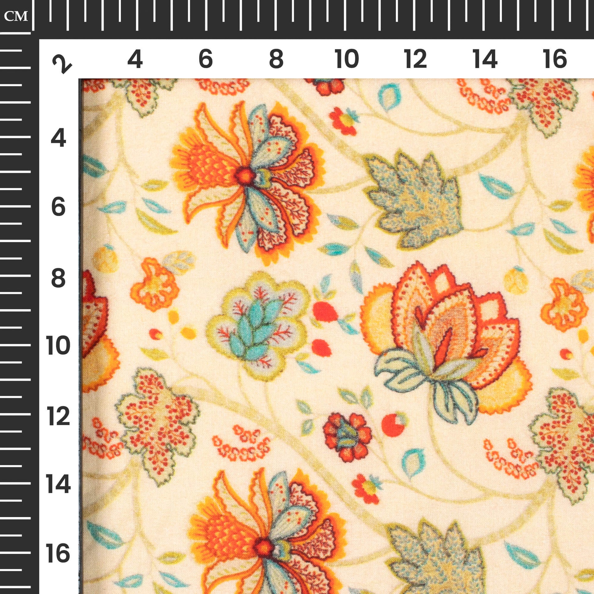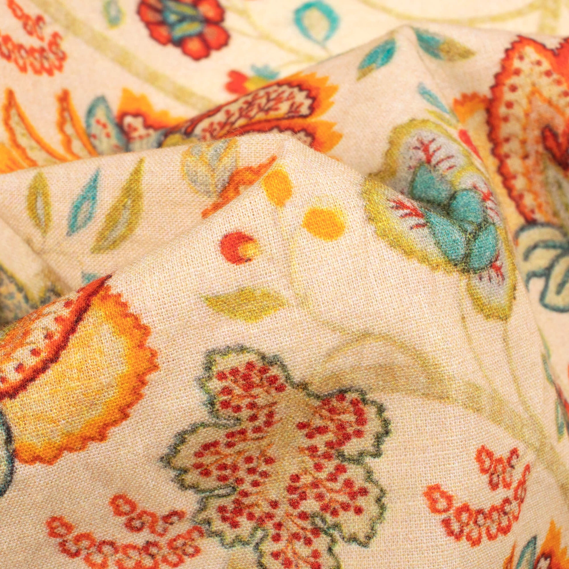 Peach Yellow And Orange Floral Digital Print Cotton Cambric Fabric