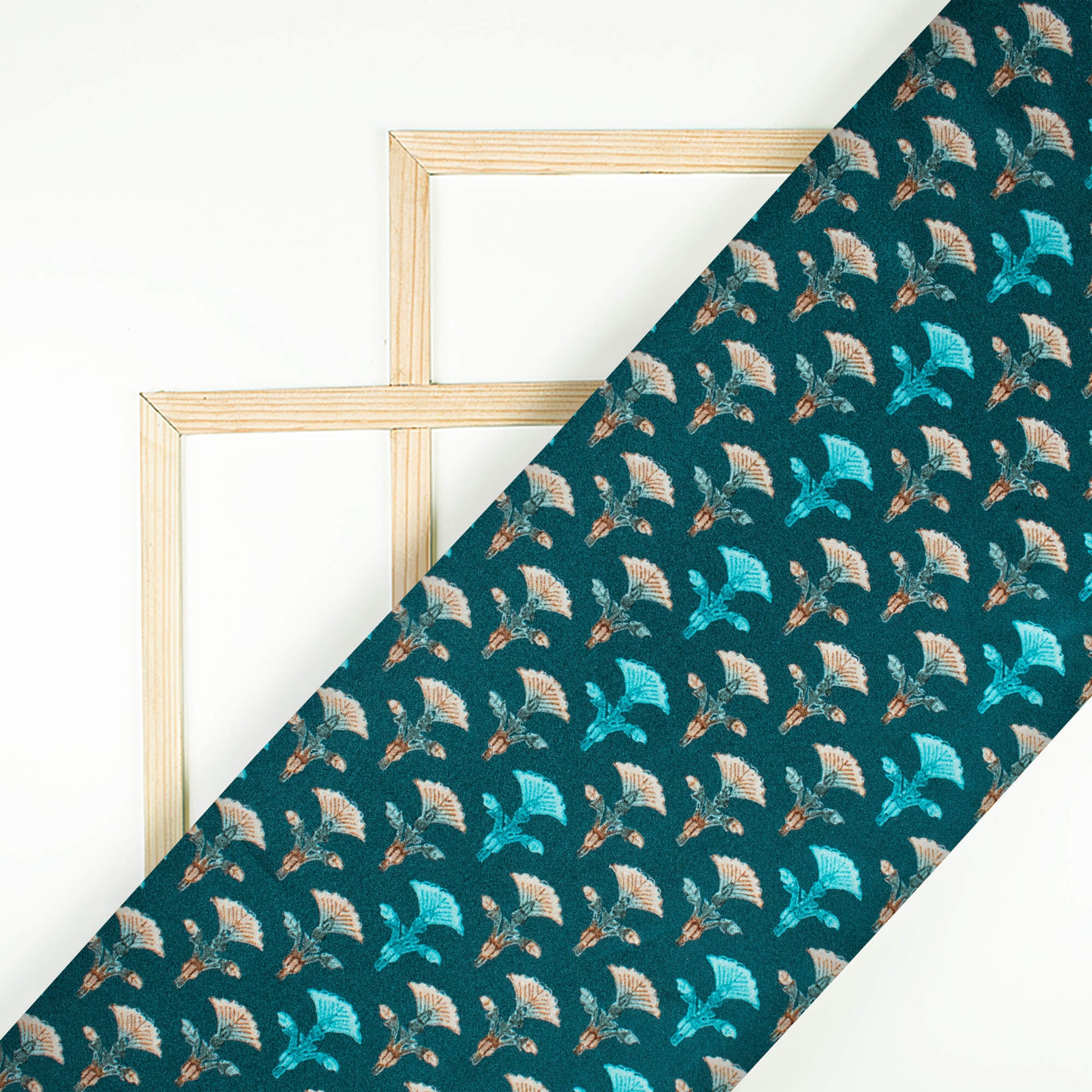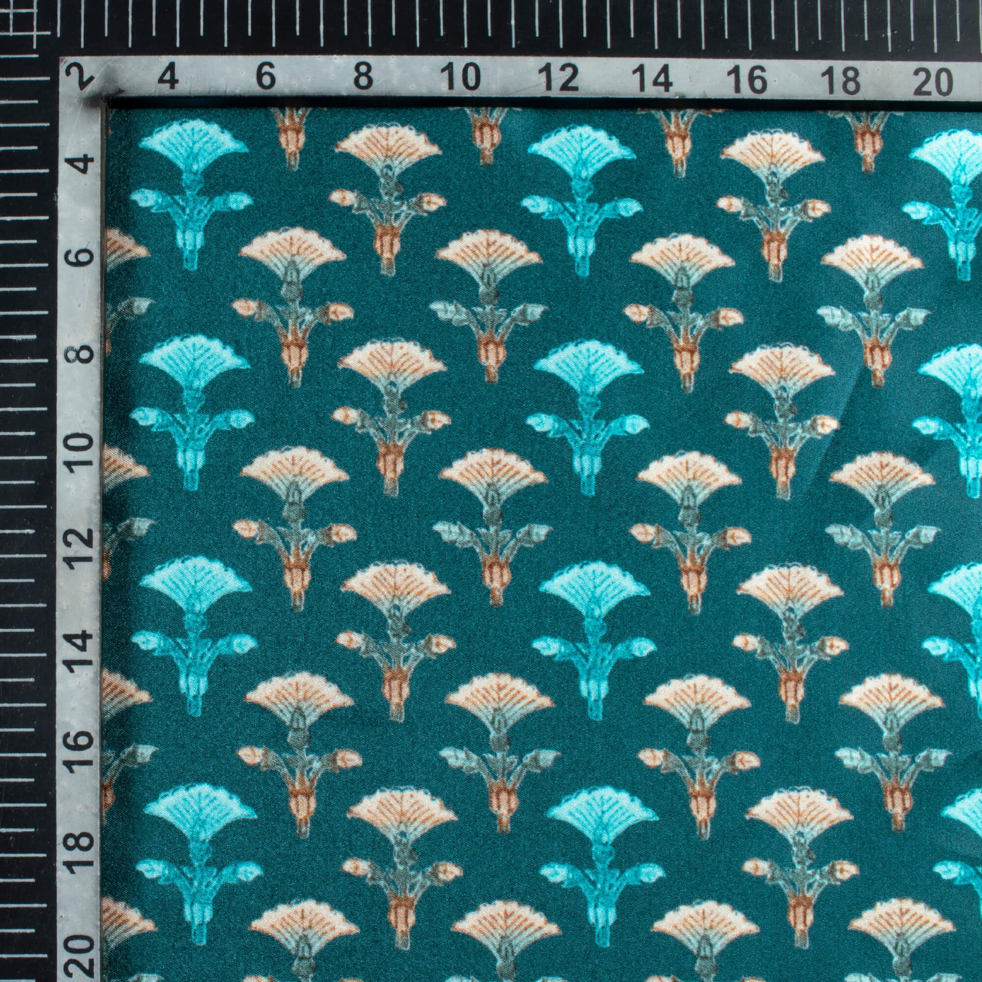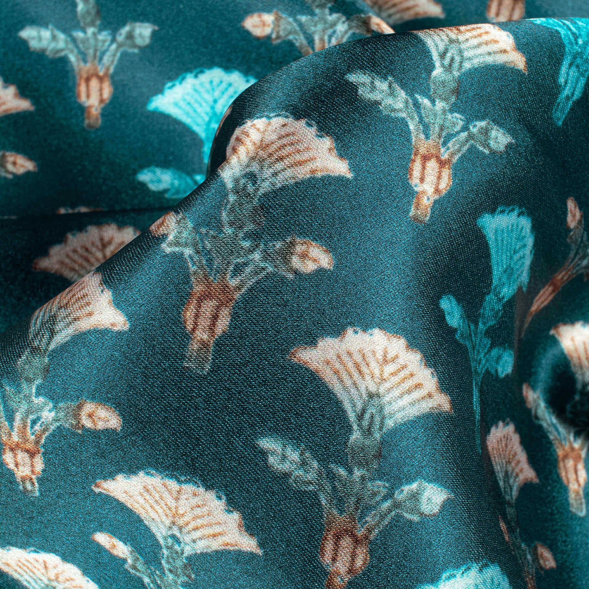 Peacock Blue And Red Floral Pattern Digital Print Japan Satin Fabric